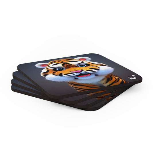 Endearing Tiger BeSculpt Corkwood Coaster Set of 4