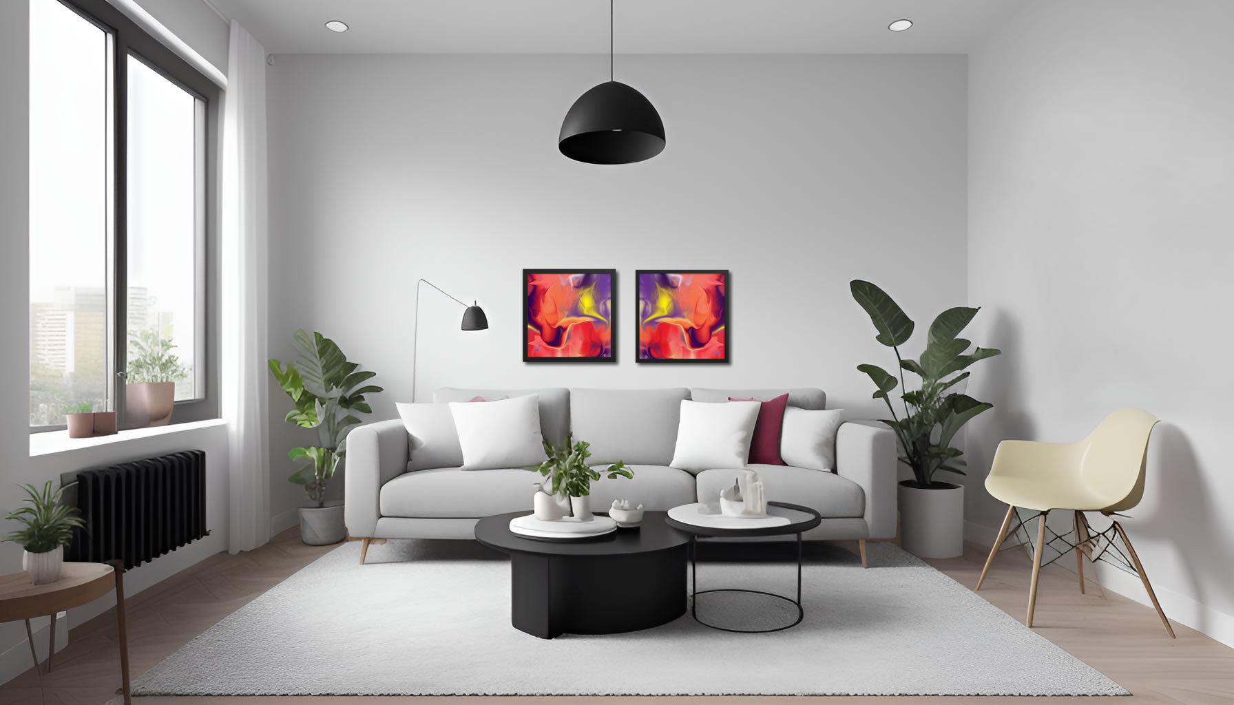 Transform your space with our abstract wall art collection, offering a variety of designs in various colors and sizes. Craft visually stunning wall arrangements by pairing our original art piece "O" with its reversed counterpart "R" to create captivating diptychs and polyptychs.