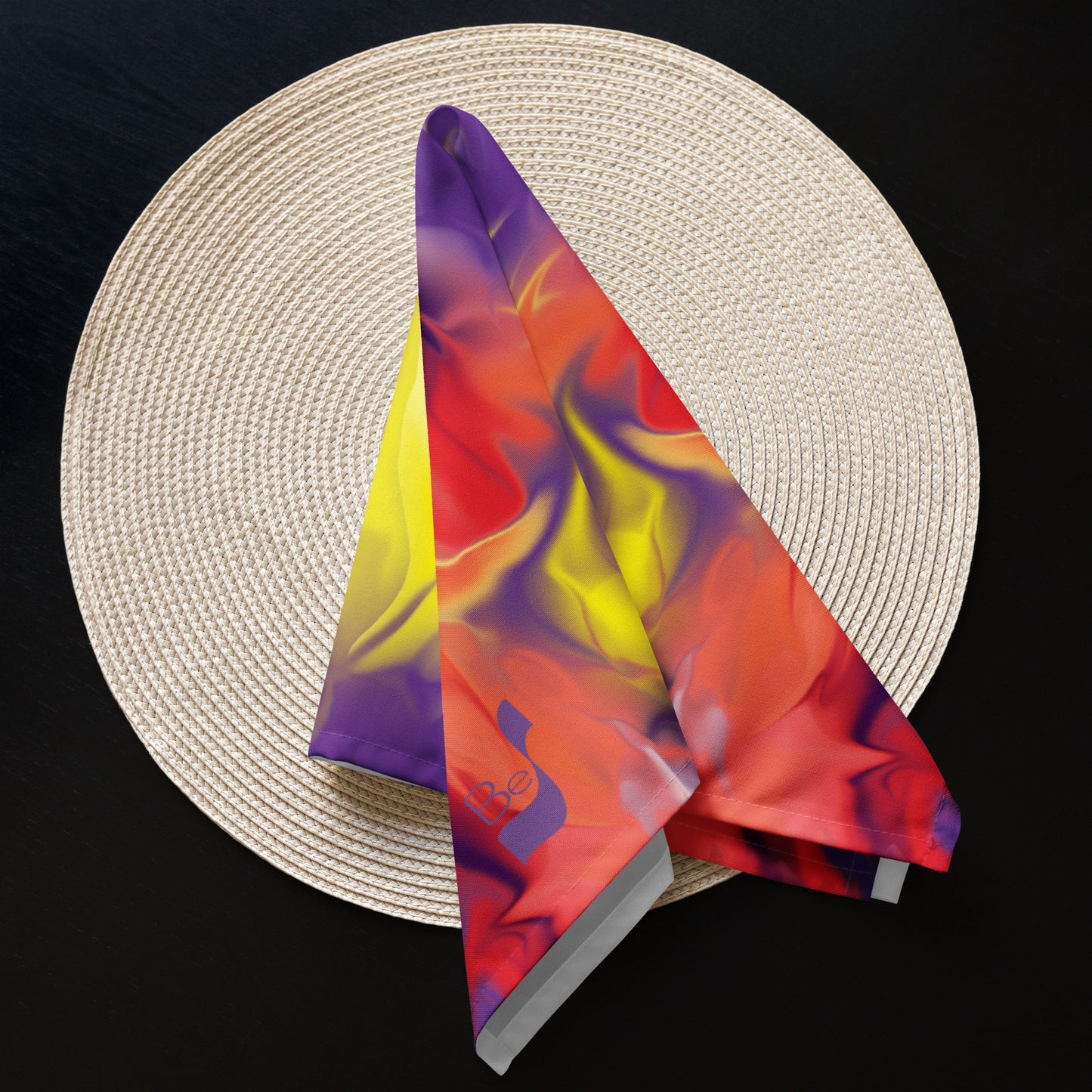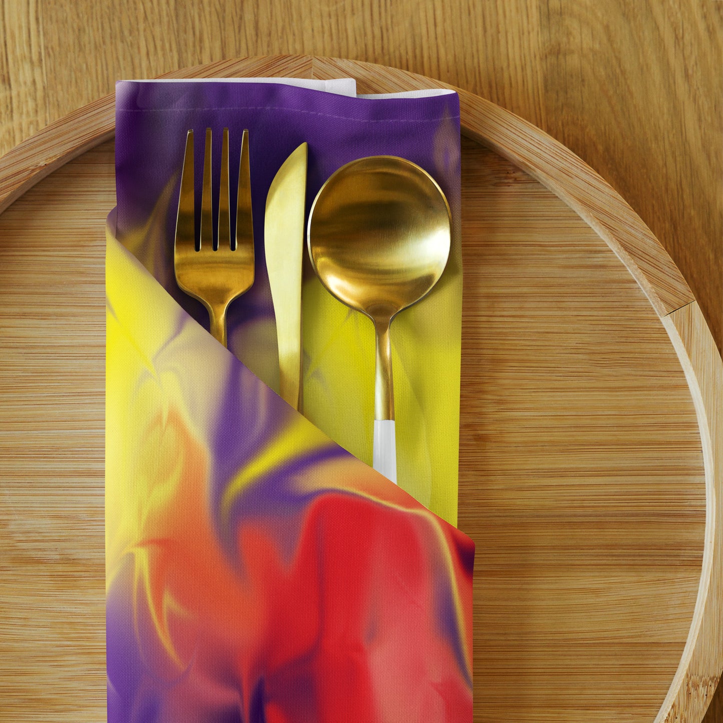 Crafted from 100% polyester, these napkins offer a luxurious feel with their soft-to-the-touch broadcloth fabric. Measuring 20″ x 20″ (50.8 cm x 50.8 cm), each napkin serves as a canvas for Bereniche Aguiar's captivating artwork. The kaleidoscopic design showcases a symphony of colors – red, orange, yellow, lavender, purple, dark purple, and white – creating a captivating visual experience.