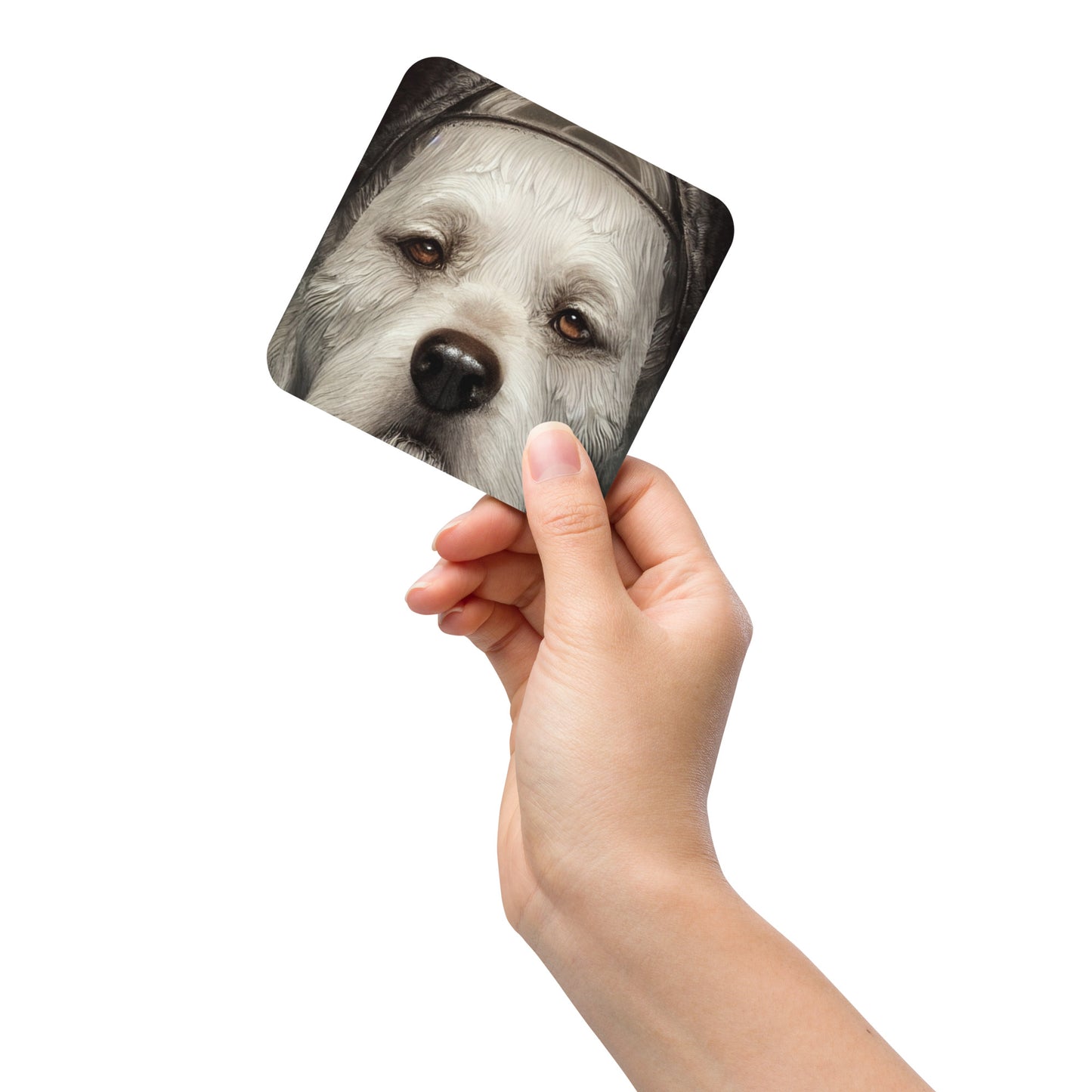 Crafted with unparalleled artistry, this coaster goes beyond mere functionality; it's a testament to the power of art. The stunning white dog portrait seamlessly melds ancient and futuristic elements, celebrating the essence of both worlds. It's more than a coaster; it's a piece of living art that invites you to contemplate the intersection of time, history, and imagination.