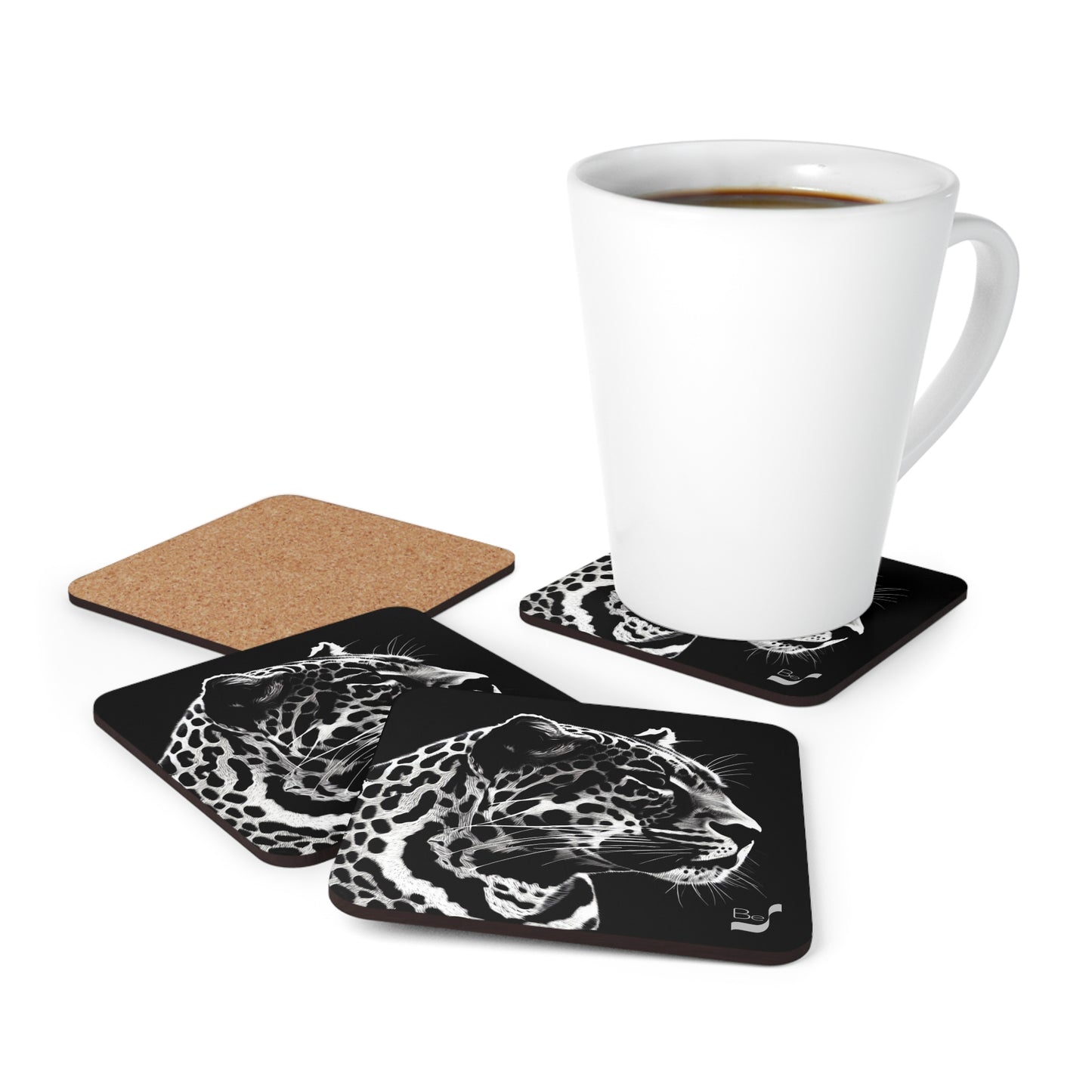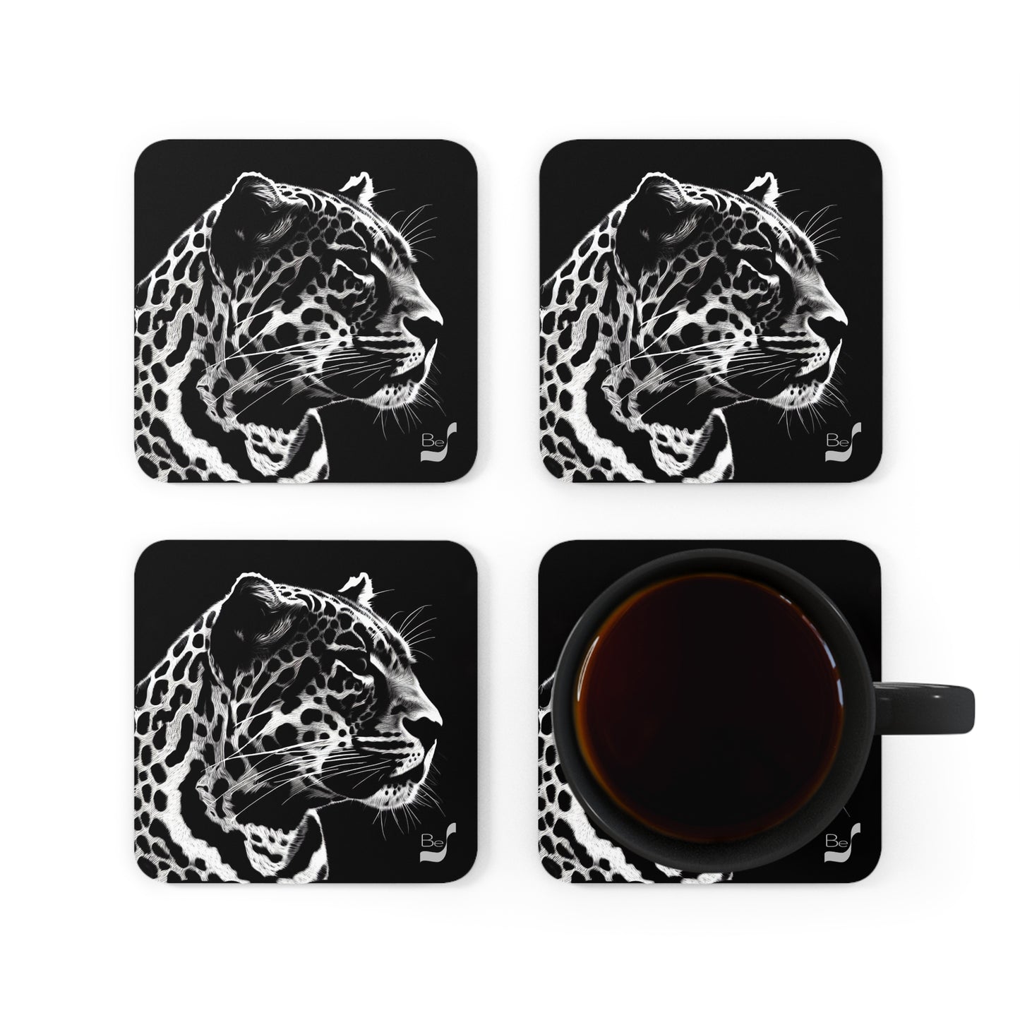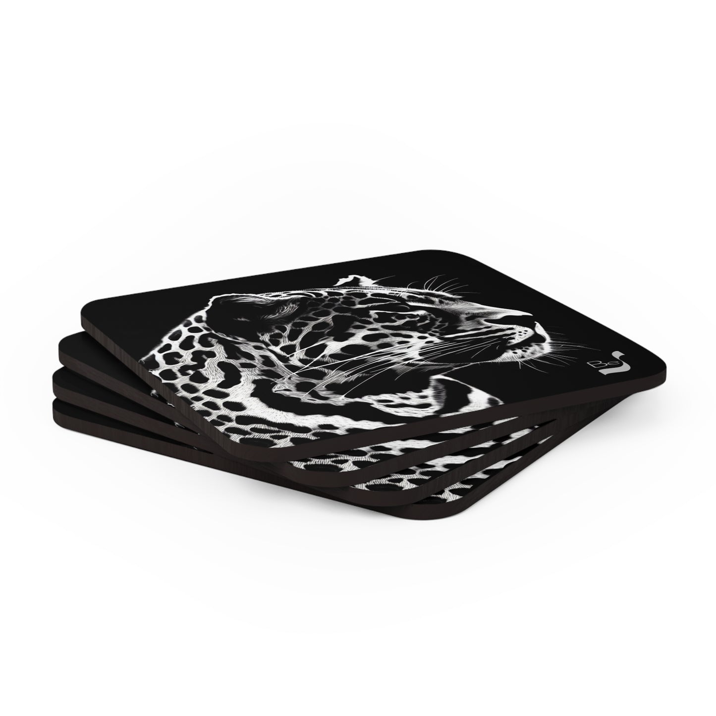Black Leopard BeSculpt Corkwood Coaster Set of 4