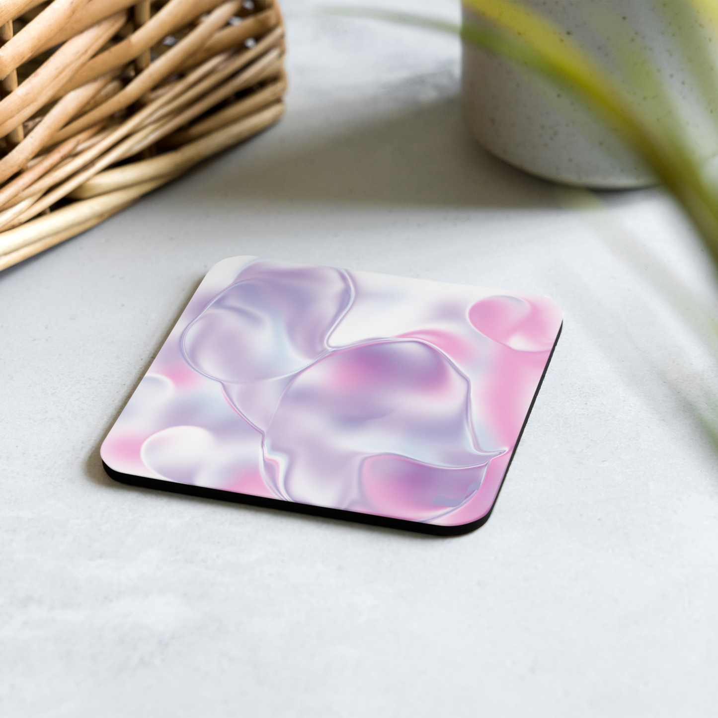 Elevate your dining experience with the Grouchy Nature BeSculpt Cork-back Coaster. This exquisite piece of artwork, detailed with deep purple, lavender, pink, and white hues, will bring an added level of sophistication to your table. Immerse yourself in the luxurious beauty of this coaster, and enjoy a truly elegant dining experience.