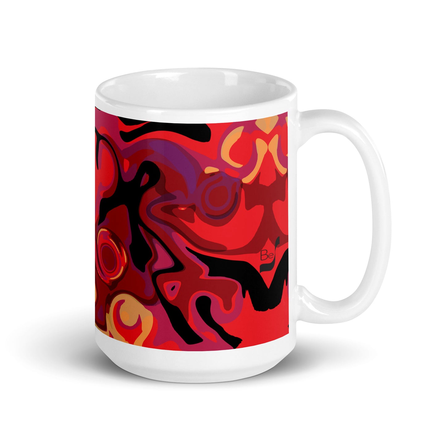 Immerse yourself in the enchanting world of the "Reaching BeSculpt Abstract Art Kaleidoscope Mug - Image No. 1." This extraordinary creation transforms the Reaching art piece into a kaleidoscope of Red, Mustard, Brown, and Purple hues, forming mesmerizing shapes and forms. Each sip from this mug becomes a journey through a visual wonderland, where fluidity and nostalgia intertwine to create a timeless aesthetic. Let this mug transport you to an artistic narrative that transcends time, making your daily coffee or tea break an enchanting and nostalgic experience.