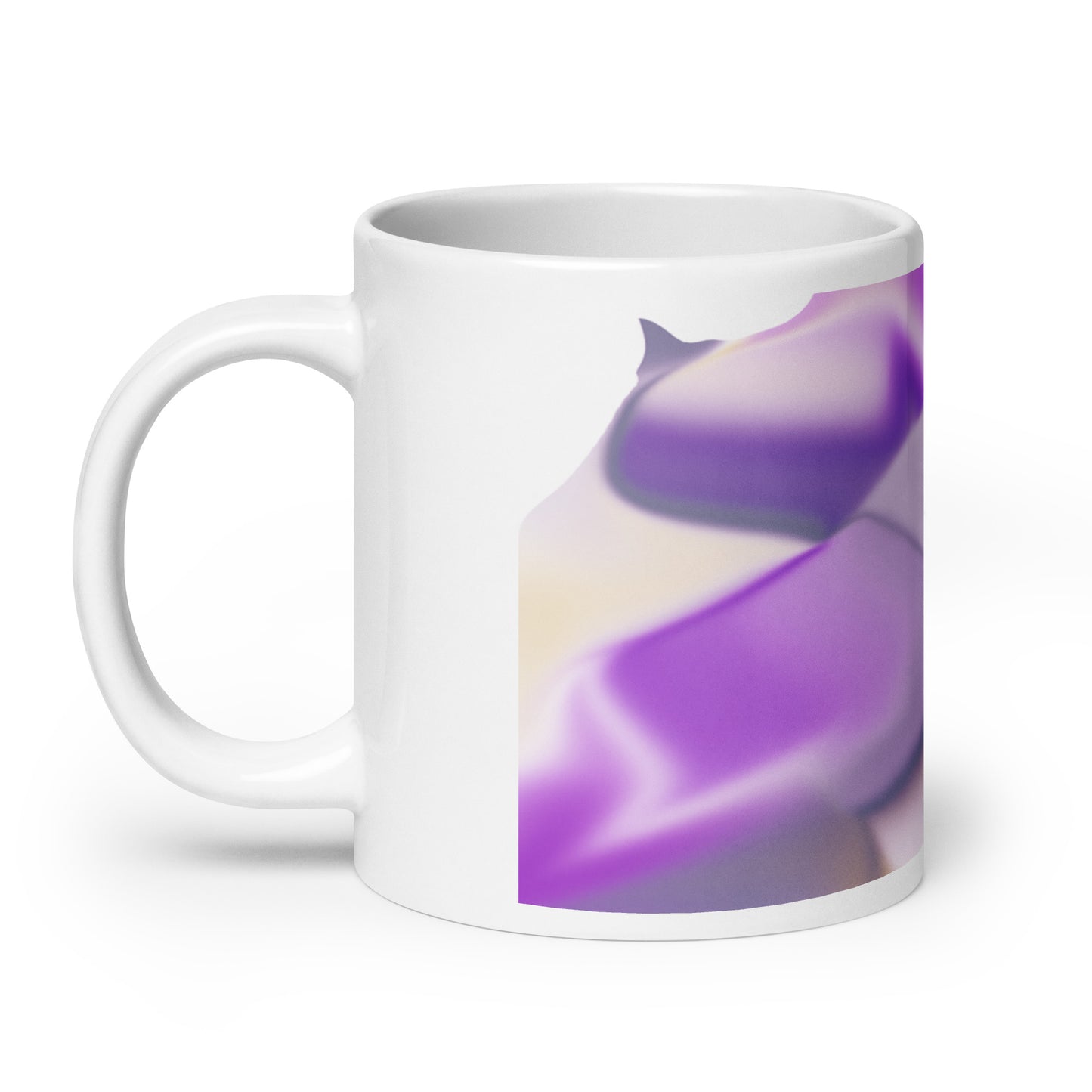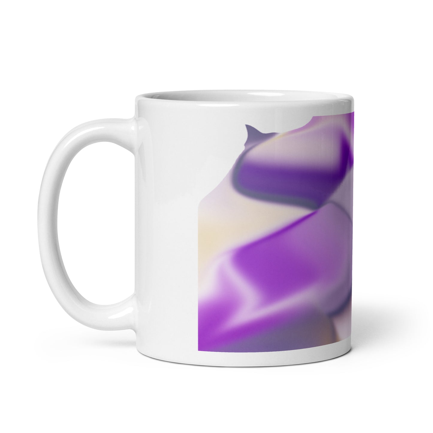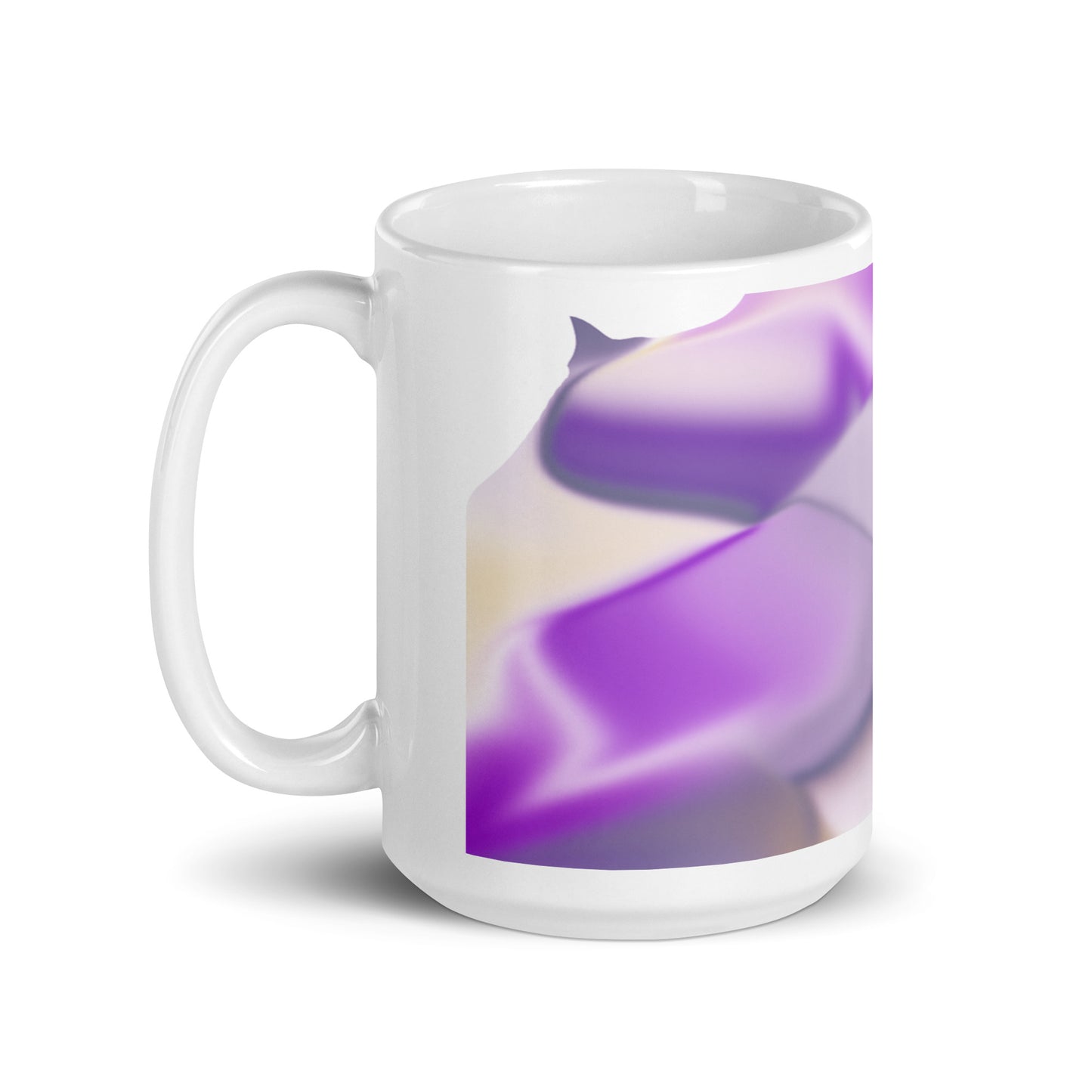 Crafted with meticulous attention to detail, the Ribbons Purple art pieces featured on this mug capture the enchanting dance of ribbons, evoking a profound sense of tranquil beauty. Bereniche Aguiar's artistic touch brings a unique and sophisticated perspective to the graceful flow of ribbons, turning this mug into a canvas for inspiration.