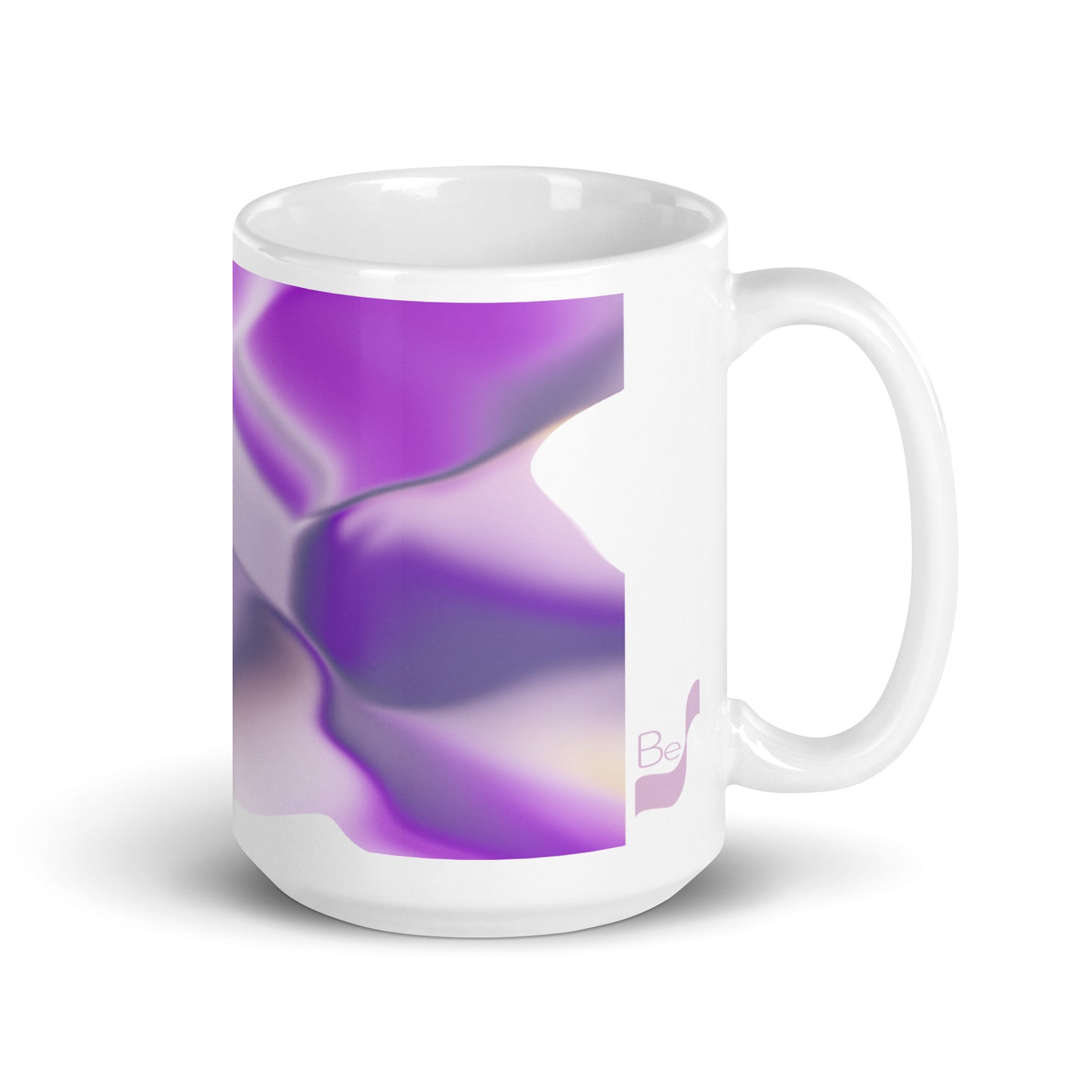Introducing the Ribbons Purple BeSculpt Abstract Artwork Mug, a captivating masterpiece from the creative mind of artist Bereniche Aguiar. This special edition mug weaves together hues of Purple, Fuchsia, Lavender, Beige, Soft Gray, and White, creating an exquisite and elegant ambiance that transforms every sip into a moment of artistic delight.