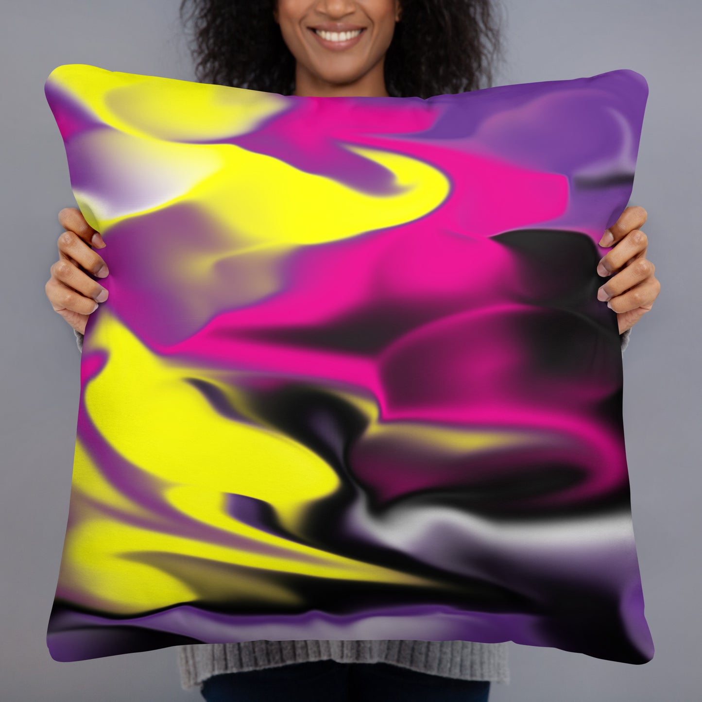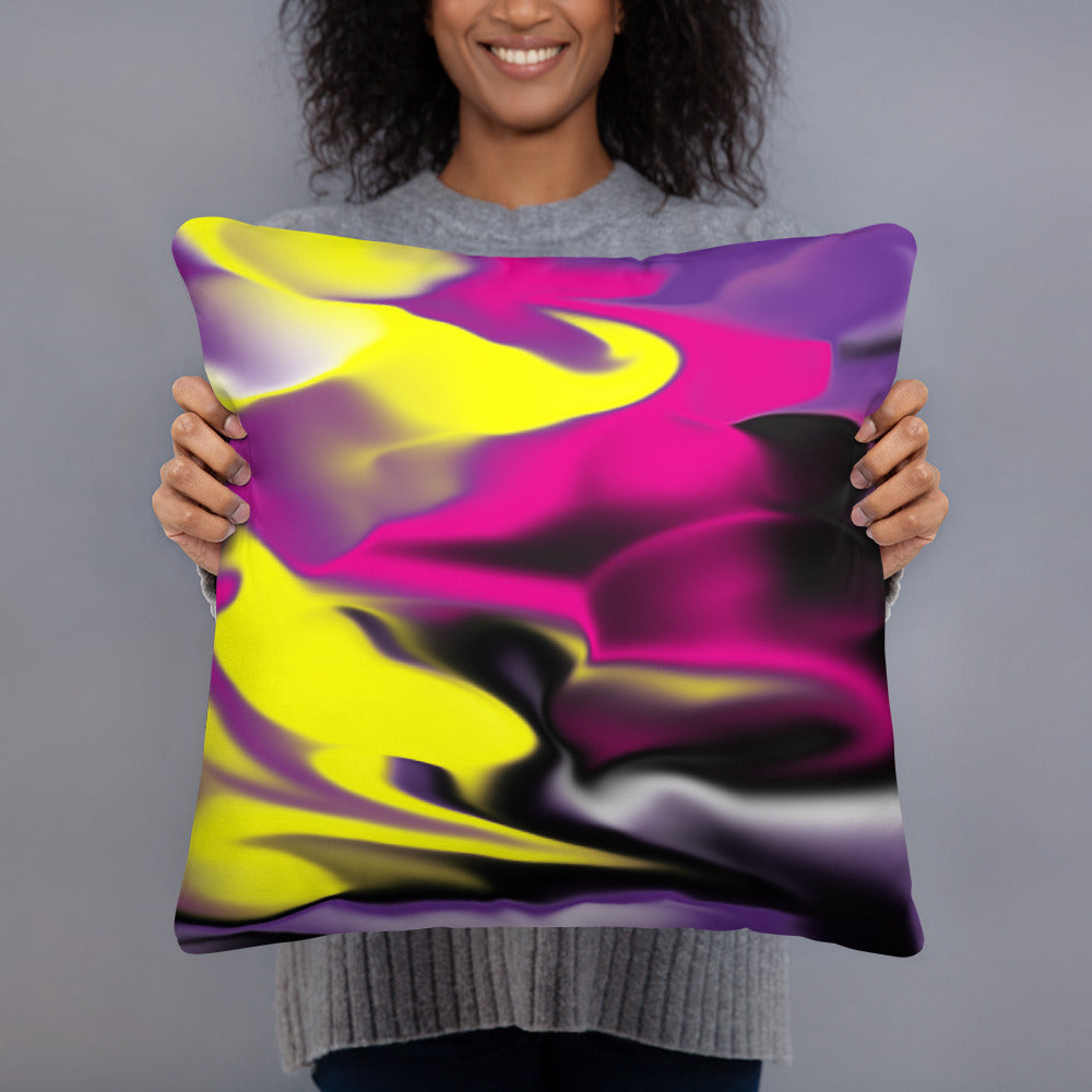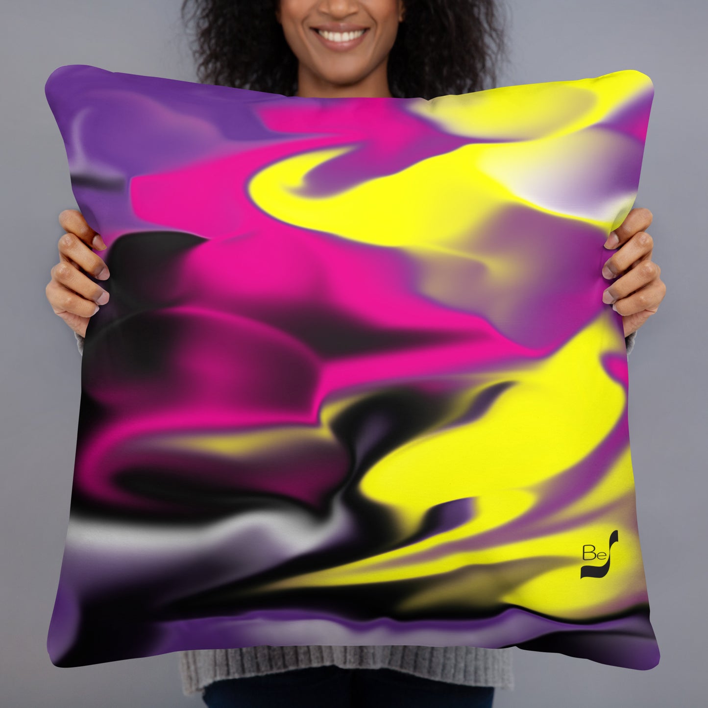 Introducing the "Rising Bud" BeSculpt Abstract Art Throw Pillow – a living masterpiece that brings the evolution of a bud to life through fluid abstract artistry. Immerse yourself in the narrative of transformation skillfully depicted by the interplay of fuchsia, purple, black, yellow, and white shades.