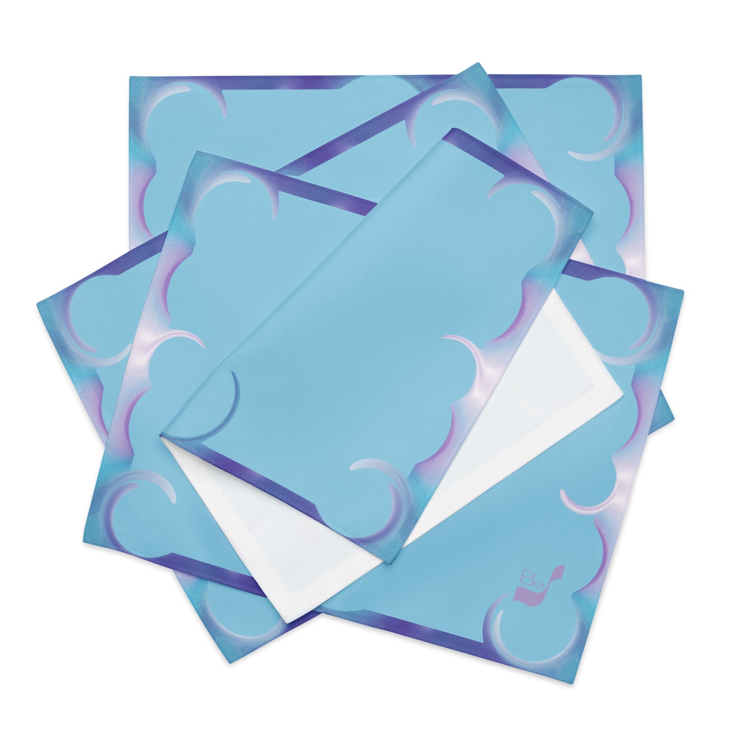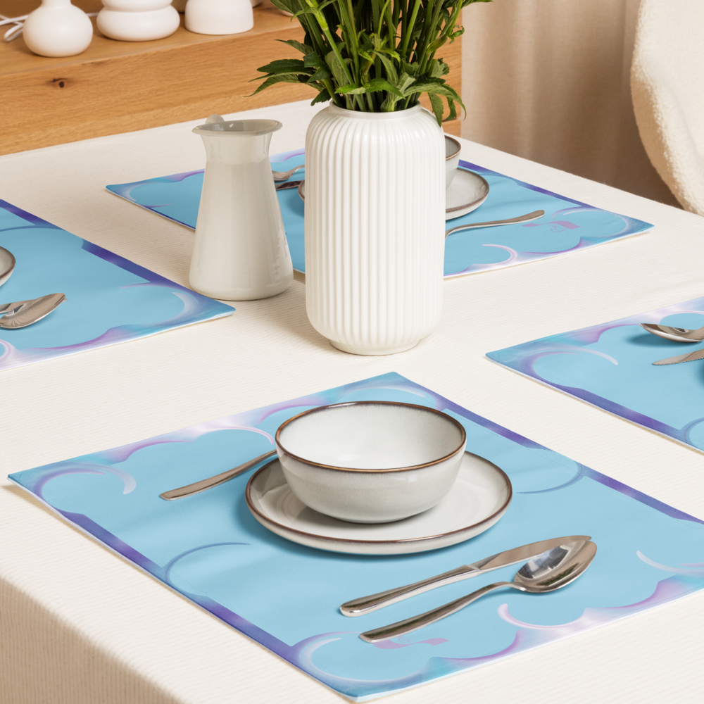 Transform your dining experience with the Swirling BeSculpt Abstract Art Kaleidoscope Turquoise Solid Placemat Set of 4, a mesmerizing creation by the artistic brilliance of Bereniche Aguiar. Immerse your table in the fluid and captivating artistry of Swirling, where soft pastel colors like Indigo, Lavender, Purple, Turquoise, and White intertwine seamlessly.