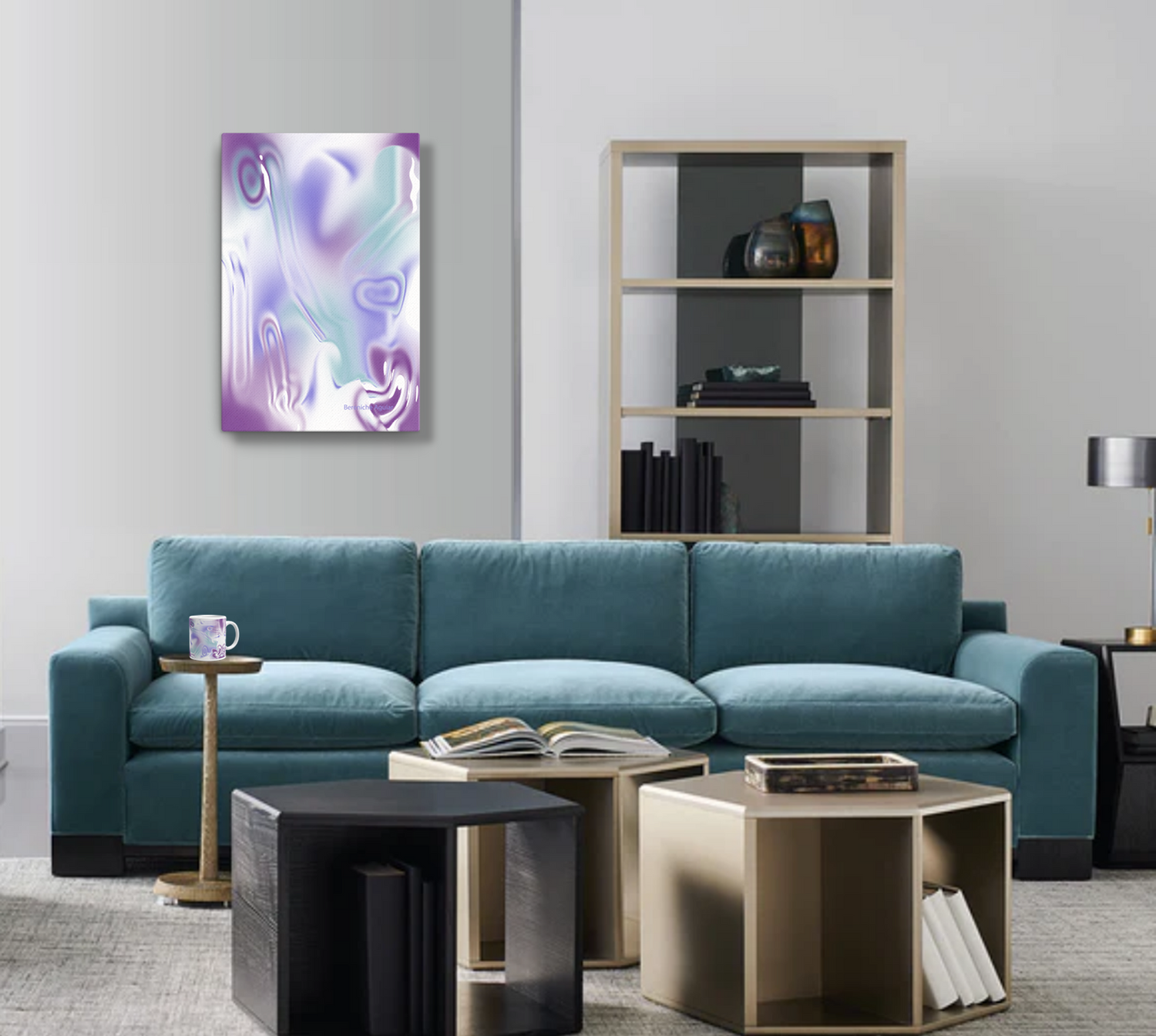 This abstract style pattern art captivates with its soft pastel colors, creating a calming atmosphere that soothes the soul. The delicate blend of blue, light blue, light teal, purple, and white hues dance together harmoniously, evoking a sense of tranquility and peace.