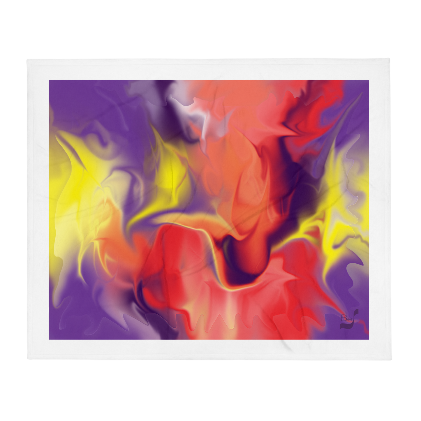 Airless BeSculpt Abstract Art Throw Blanket White Trimmed Details