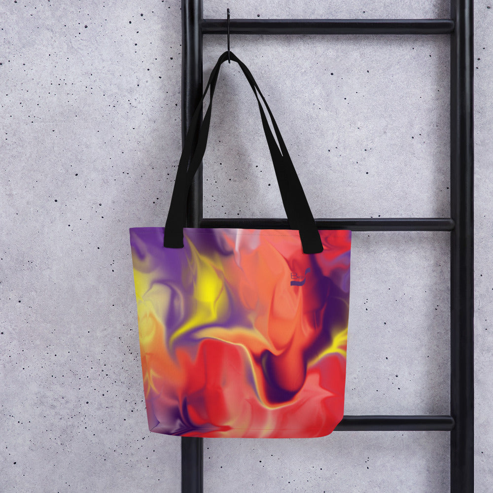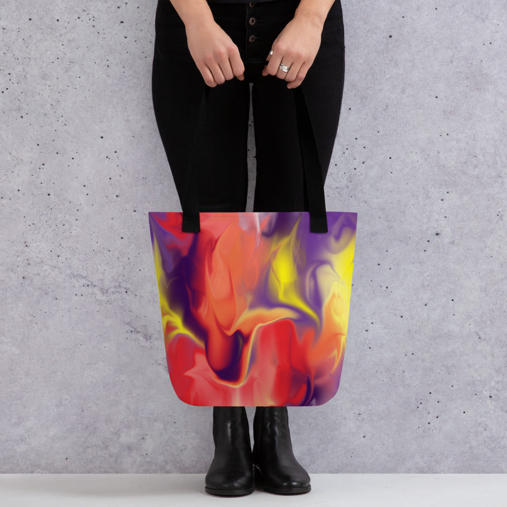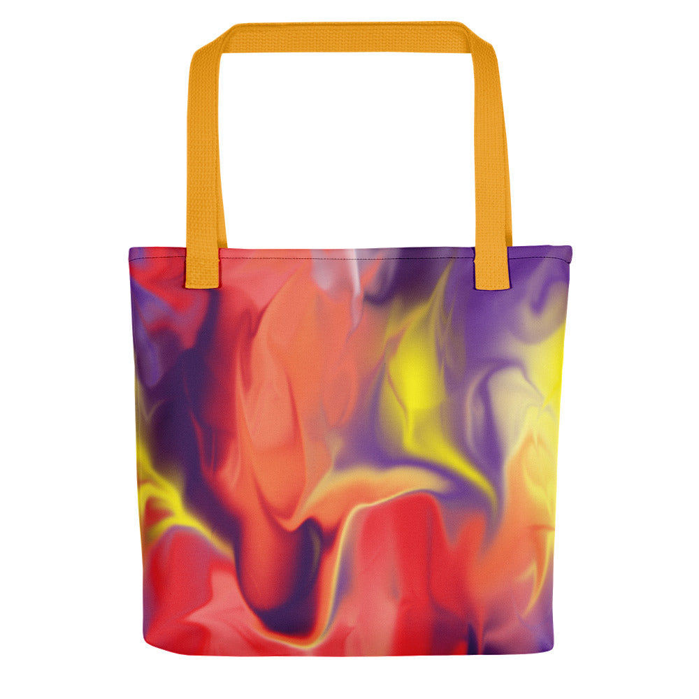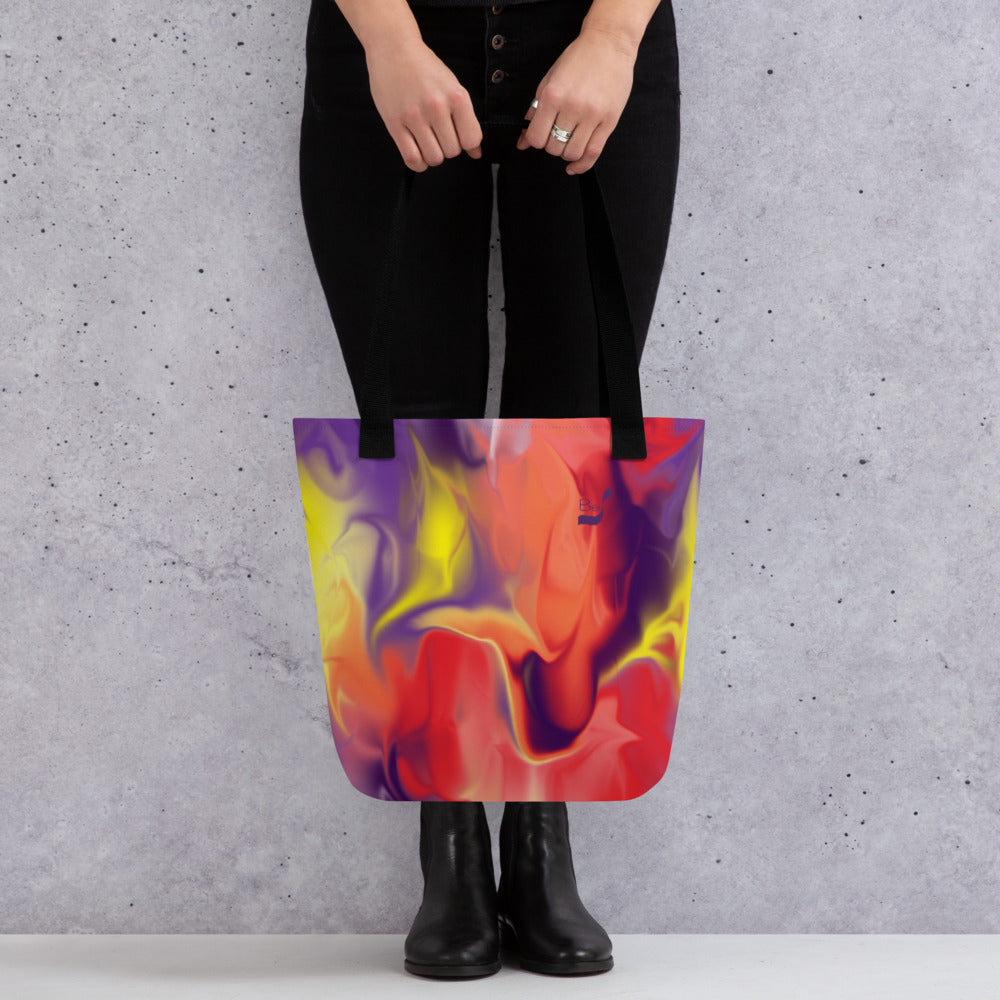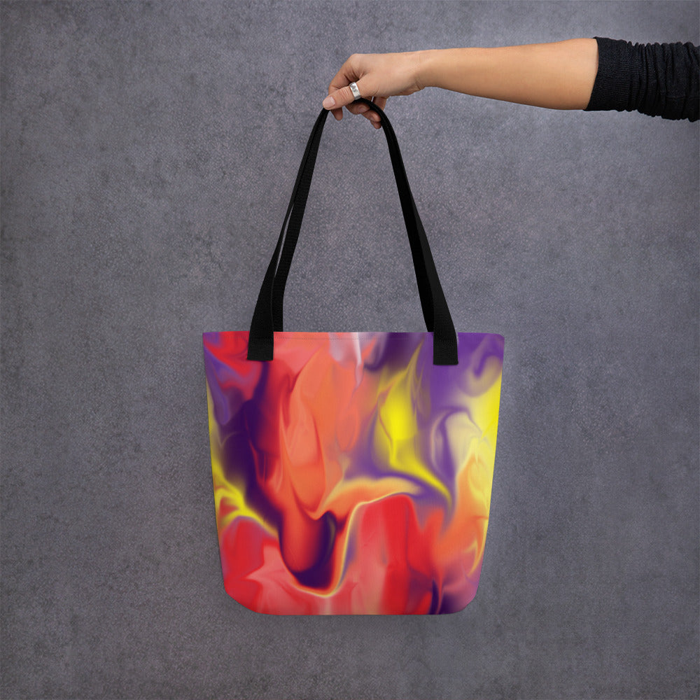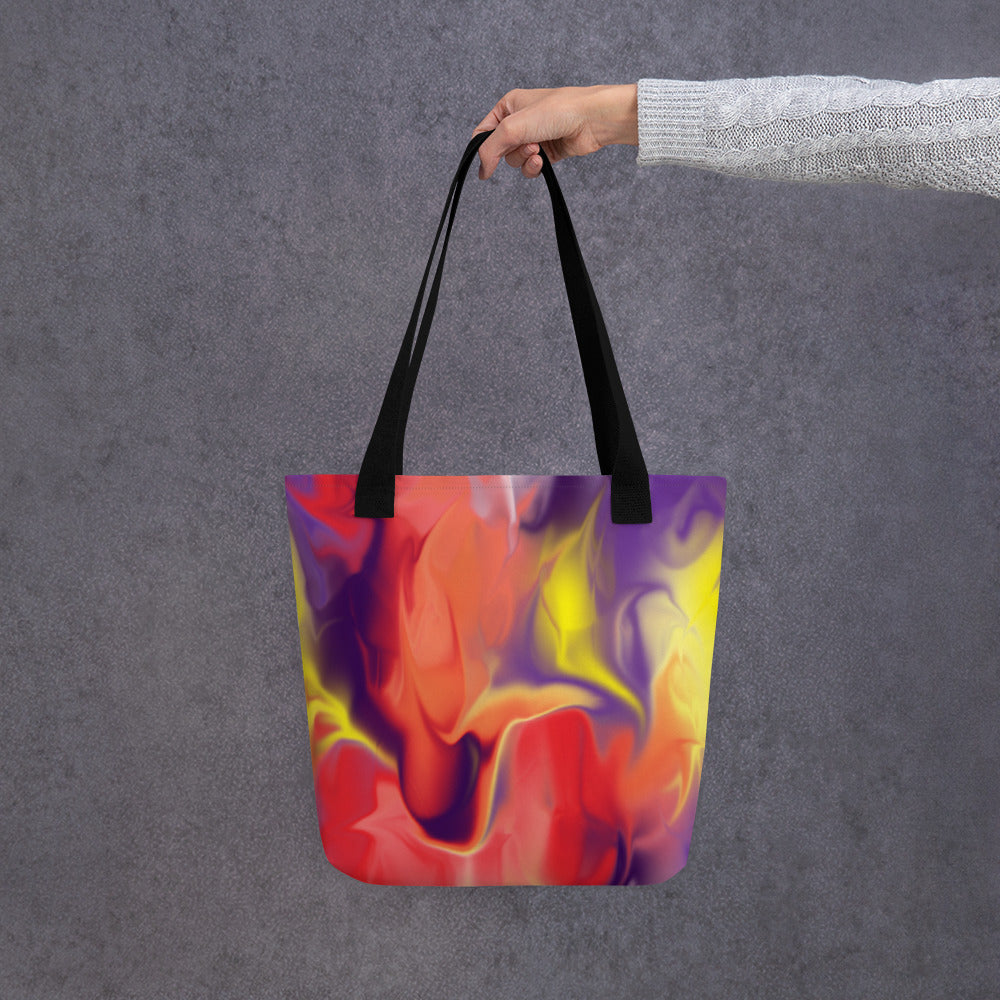 Introducing our Airless BeSculpt Abstract Fluid Art Bright Colors Tote Bag, a stunning accessory that beautifully combines art and functionality. This tote bag is not just an ordinary bag; it is a statement piece that allows you to express your individuality and artistic flair. With its vibrant and captivating abstract patterns, this tote bag is a true work of art that will turn heads wherever you go.