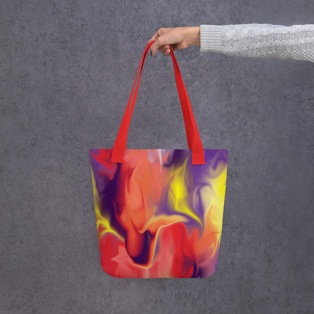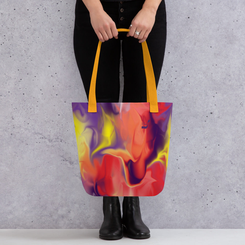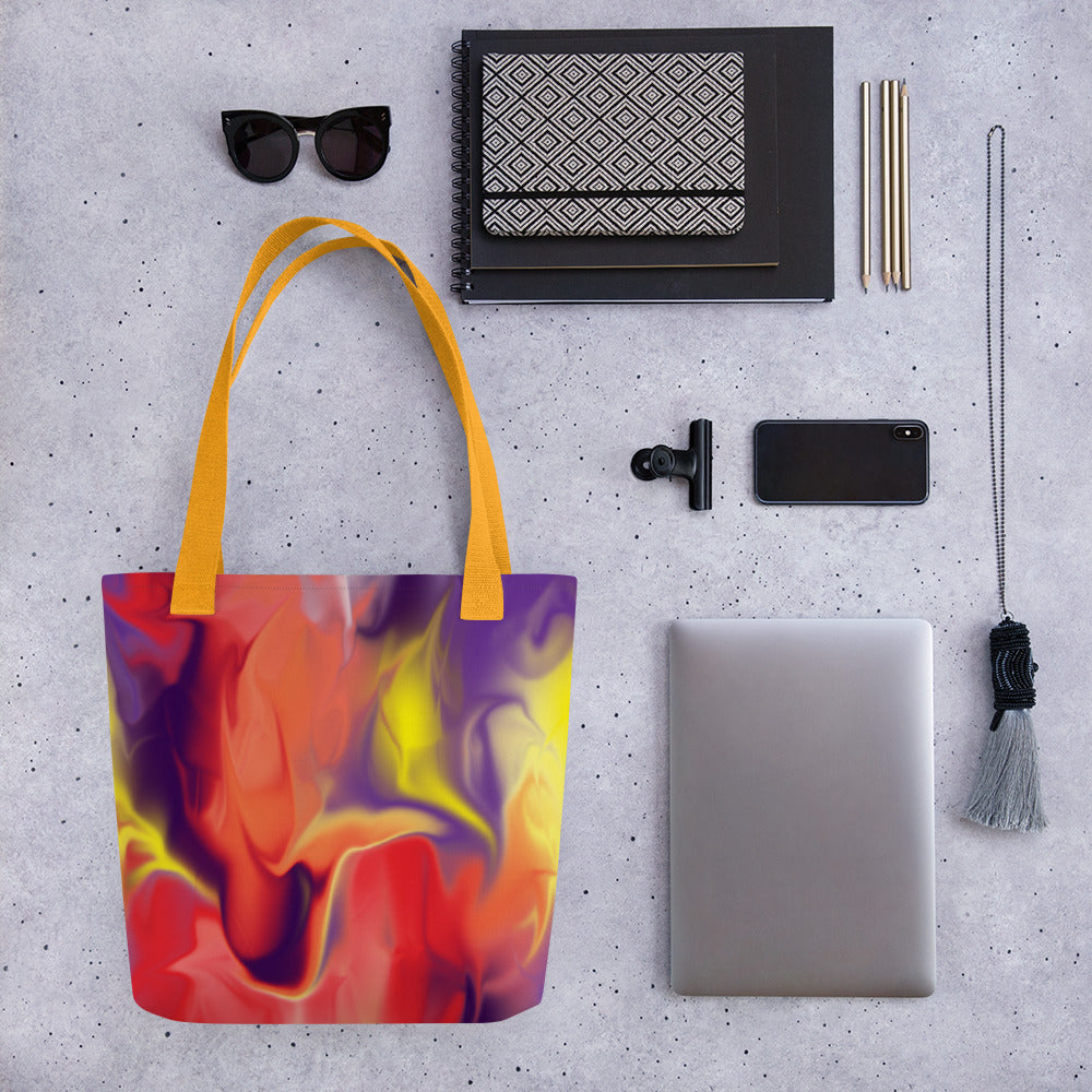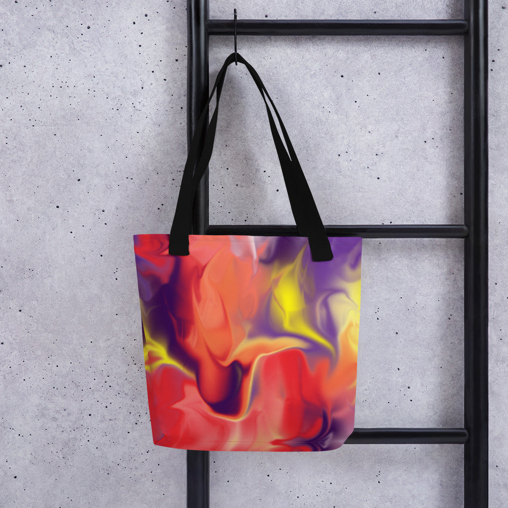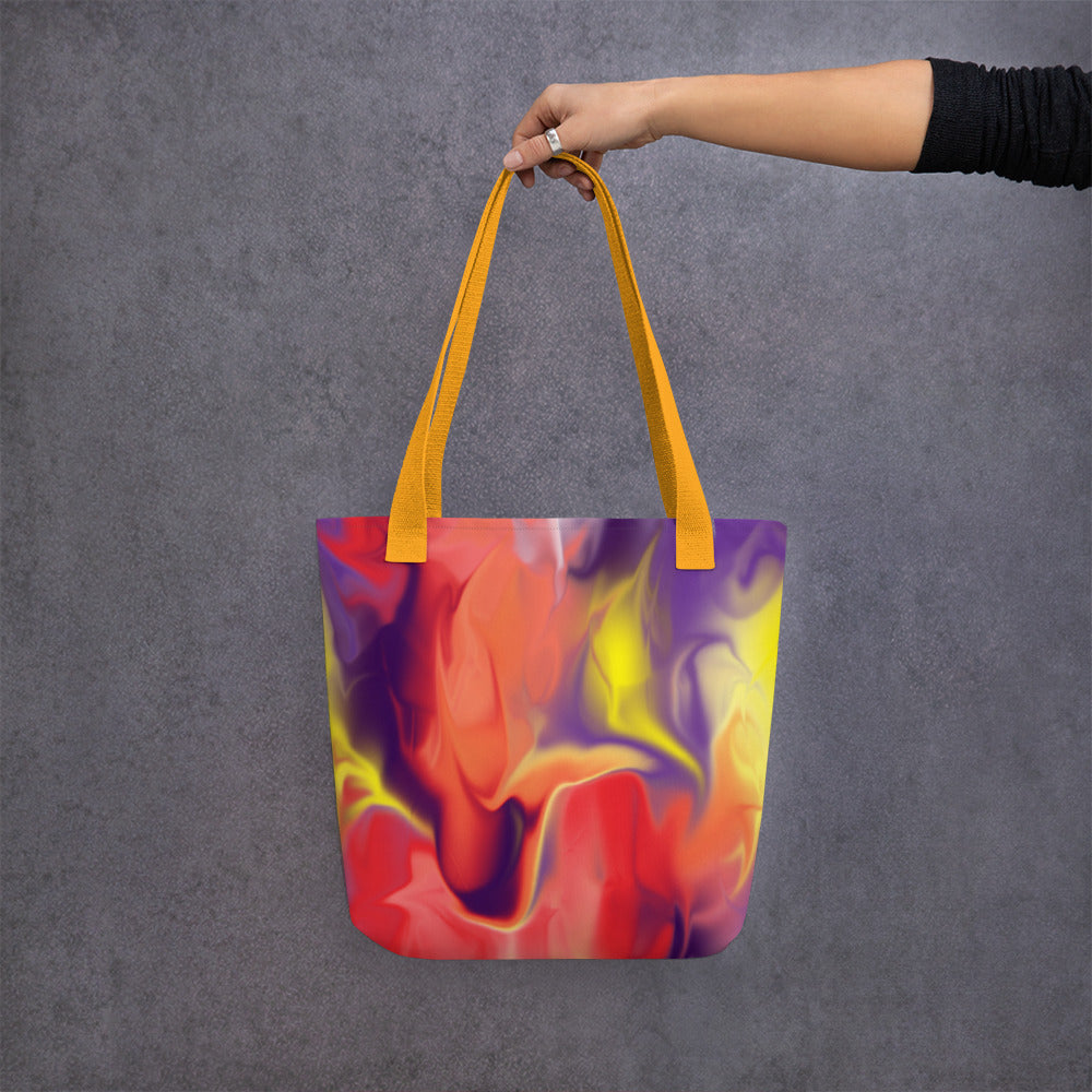 Introducing our Airless BeSculpt Abstract Fluid Art Bright Colors Tote Bag, a stunning accessory that beautifully combines art and functionality. This tote bag is not just an ordinary bag; it is a statement piece that allows you to express your individuality and artistic flair. With its vibrant and captivating abstract patterns, this tote bag is a true work of art that will turn heads wherever you go.