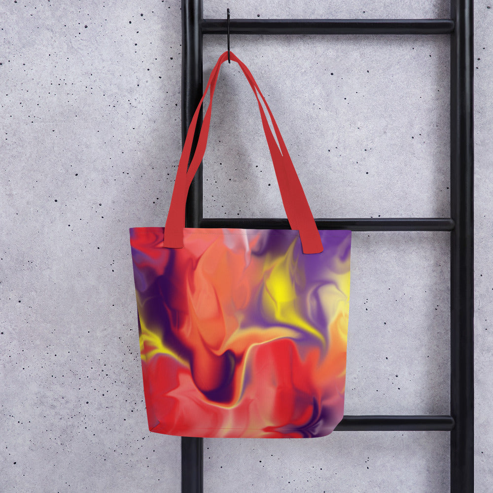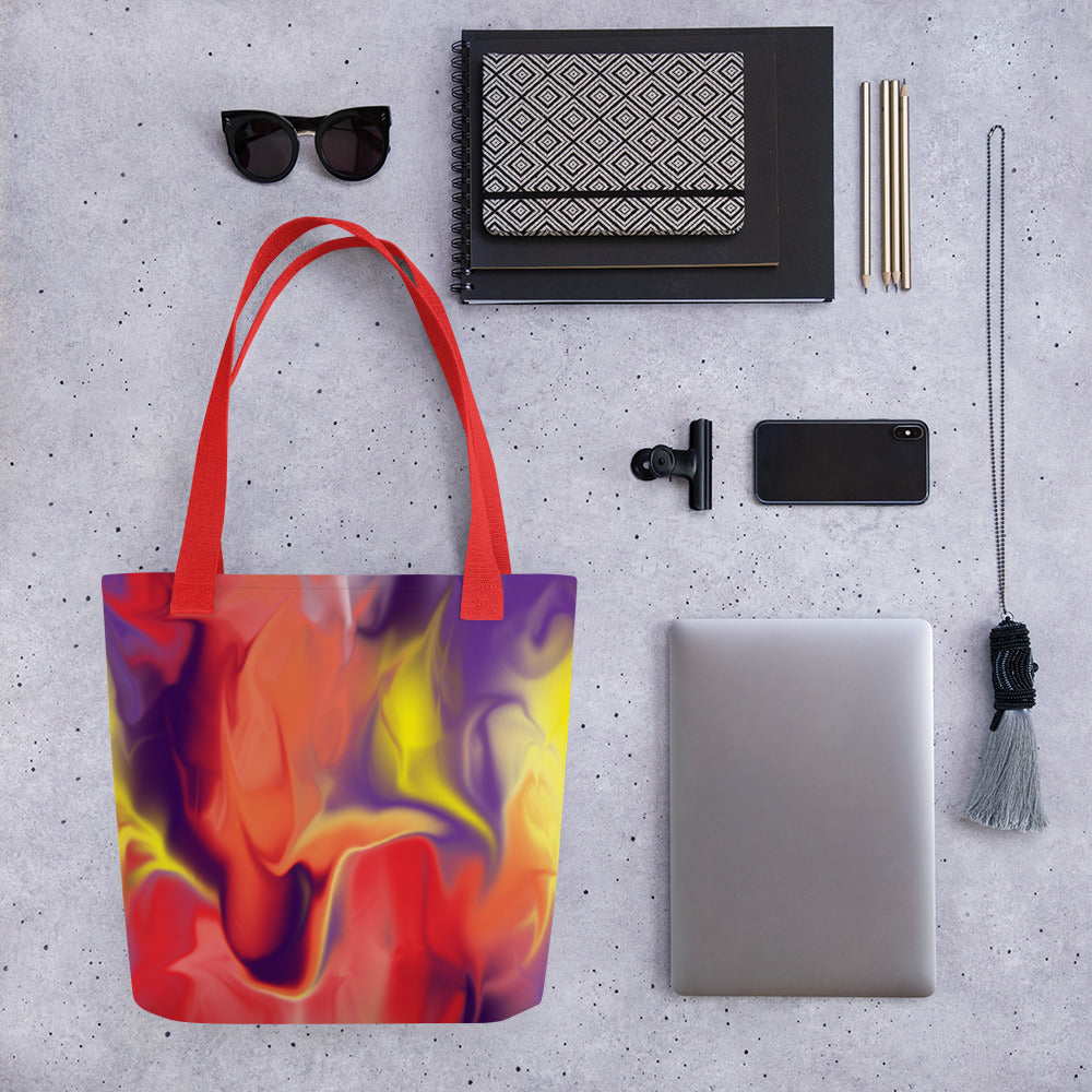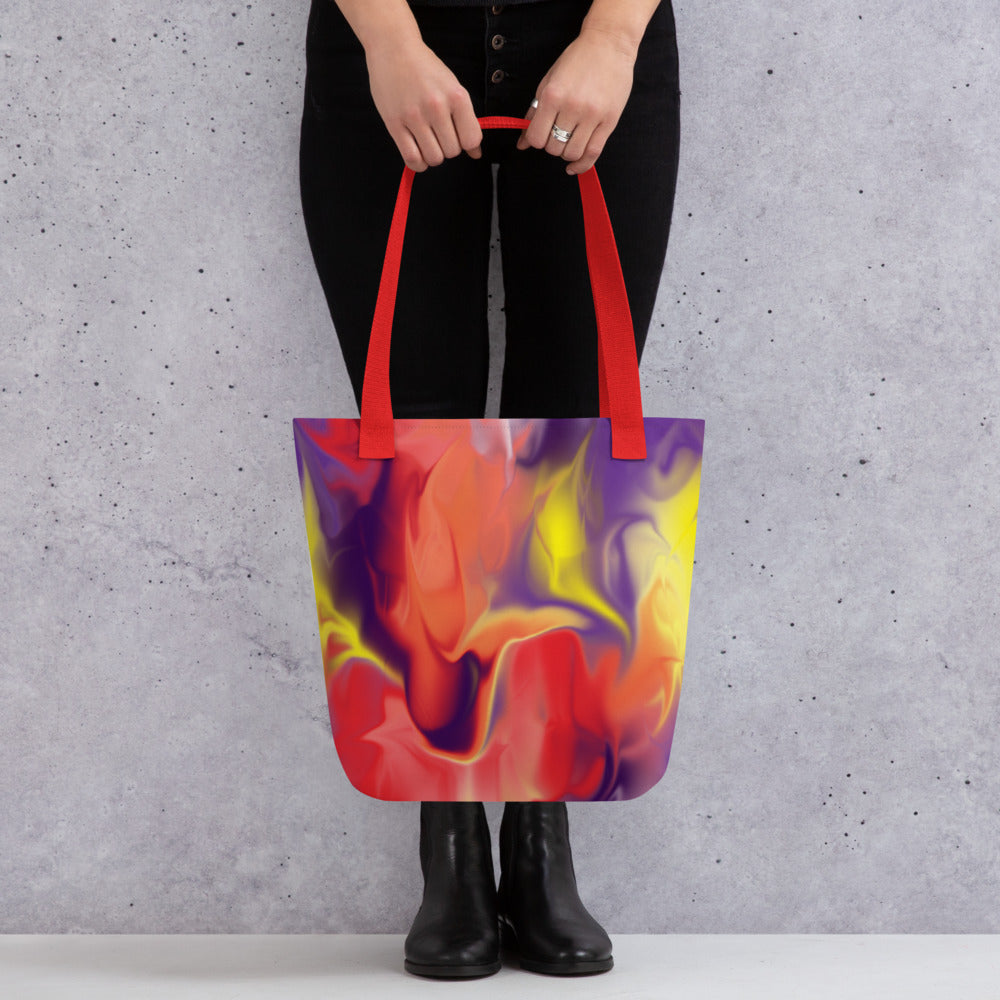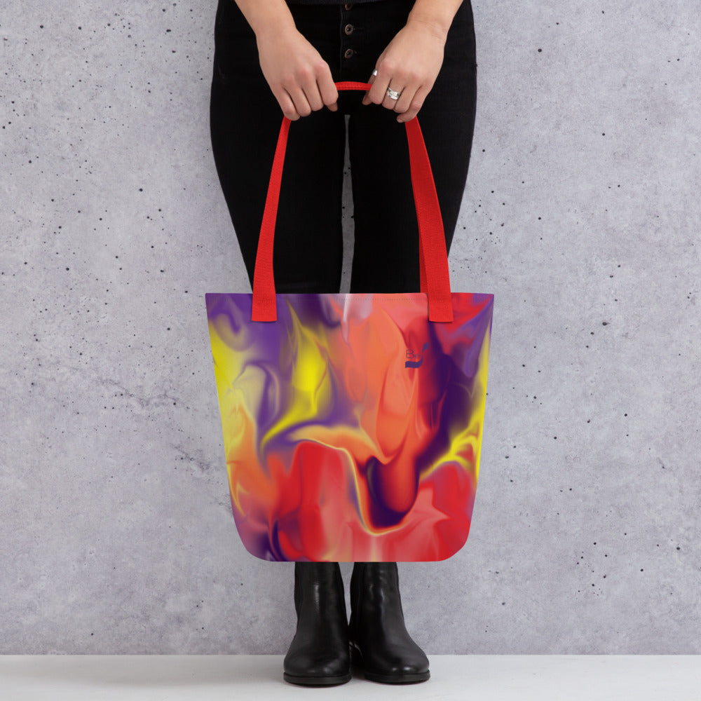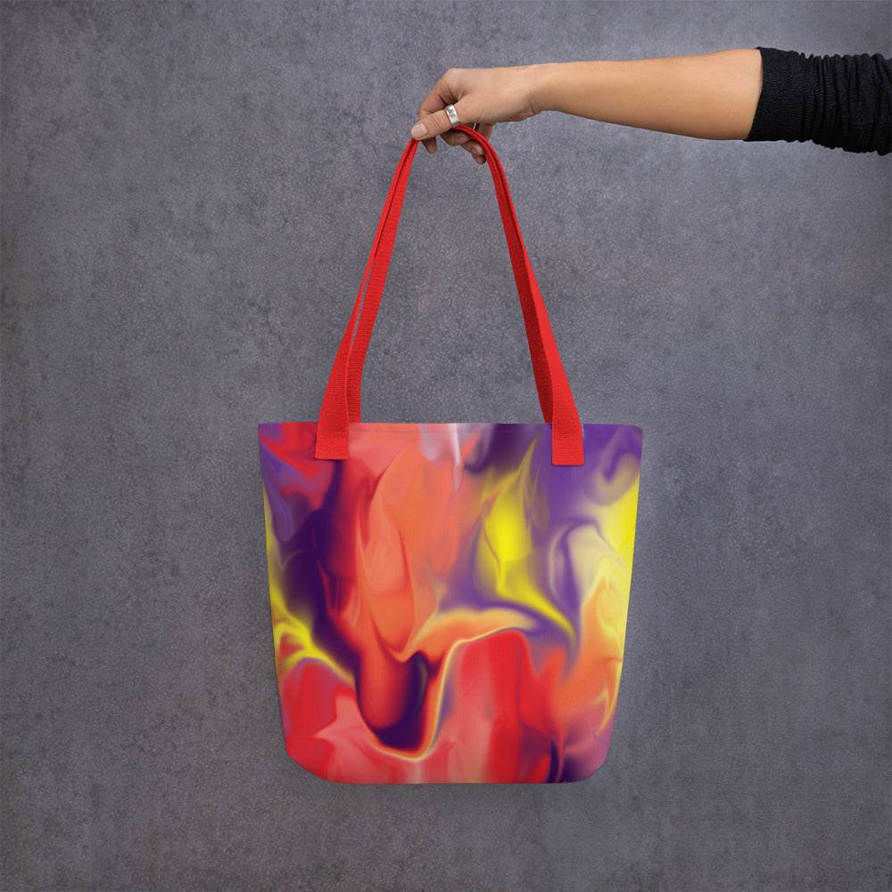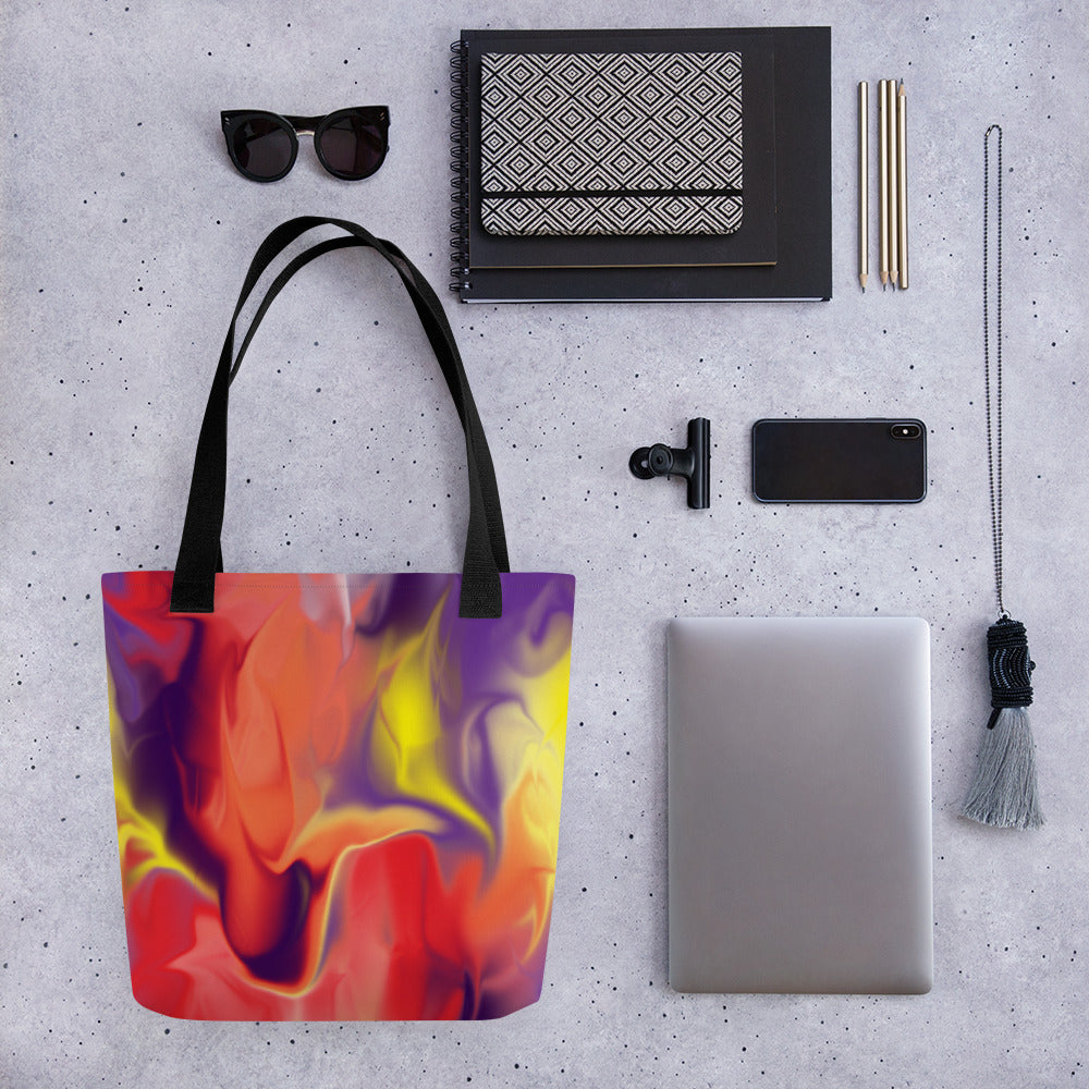 Introducing our Airless BeSculpt Abstract Fluid Art Bright Colors Tote Bag, a stunning accessory that beautifully combines art and functionality. This tote bag is not just an ordinary bag; it is a statement piece that allows you to express your individuality and artistic flair. With its vibrant and captivating abstract patterns, this tote bag is a true work of art that will turn heads wherever you go.