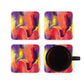 Introducing the Airless BeSculpt Corkwood Coaster Set of 4 Set of 4, a remarkable and distinctive fluid abstract art piece that will elevate your home décor to a whole new level. Immerse yourself in the captivating colors of this art, featuring a stunning blend of Deep Purple, Lavender, Lemon Glacier, Orange, Purple, Red, Soft Yellow, and White.
