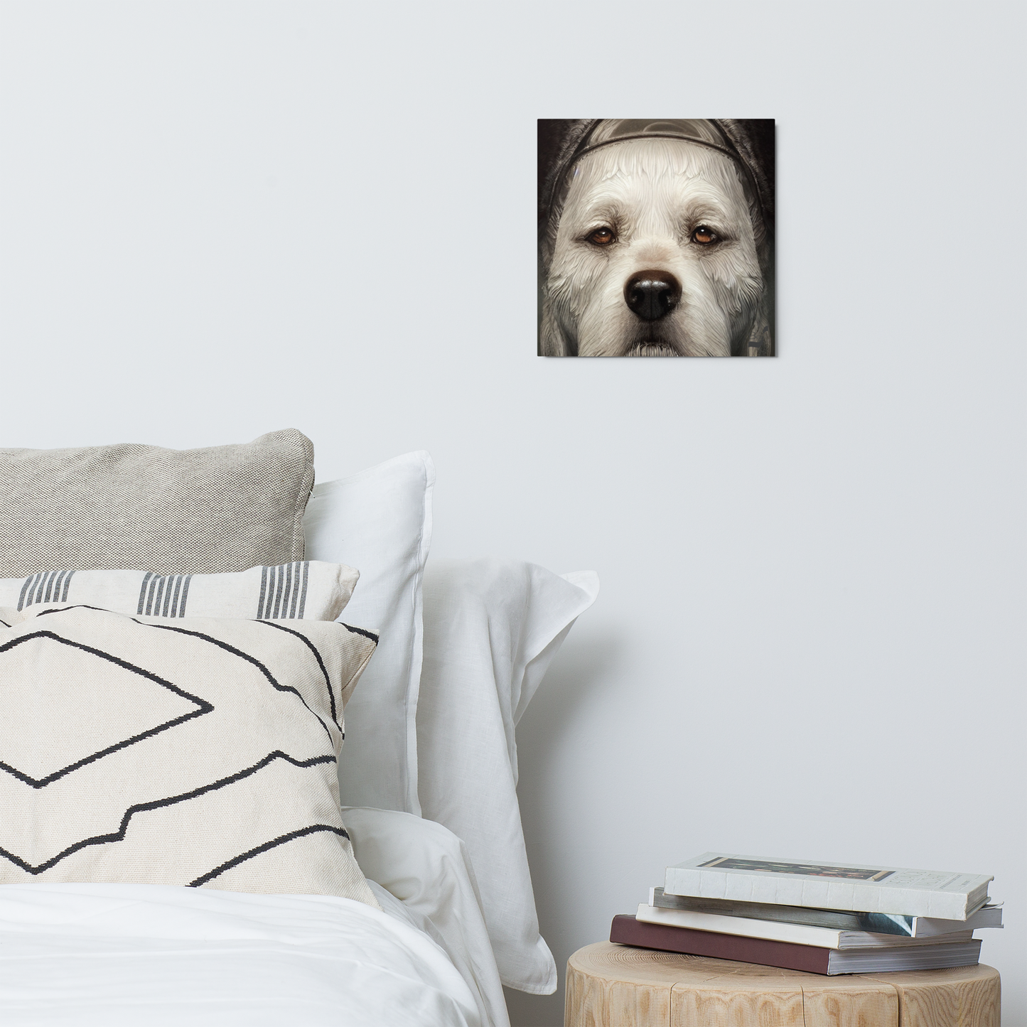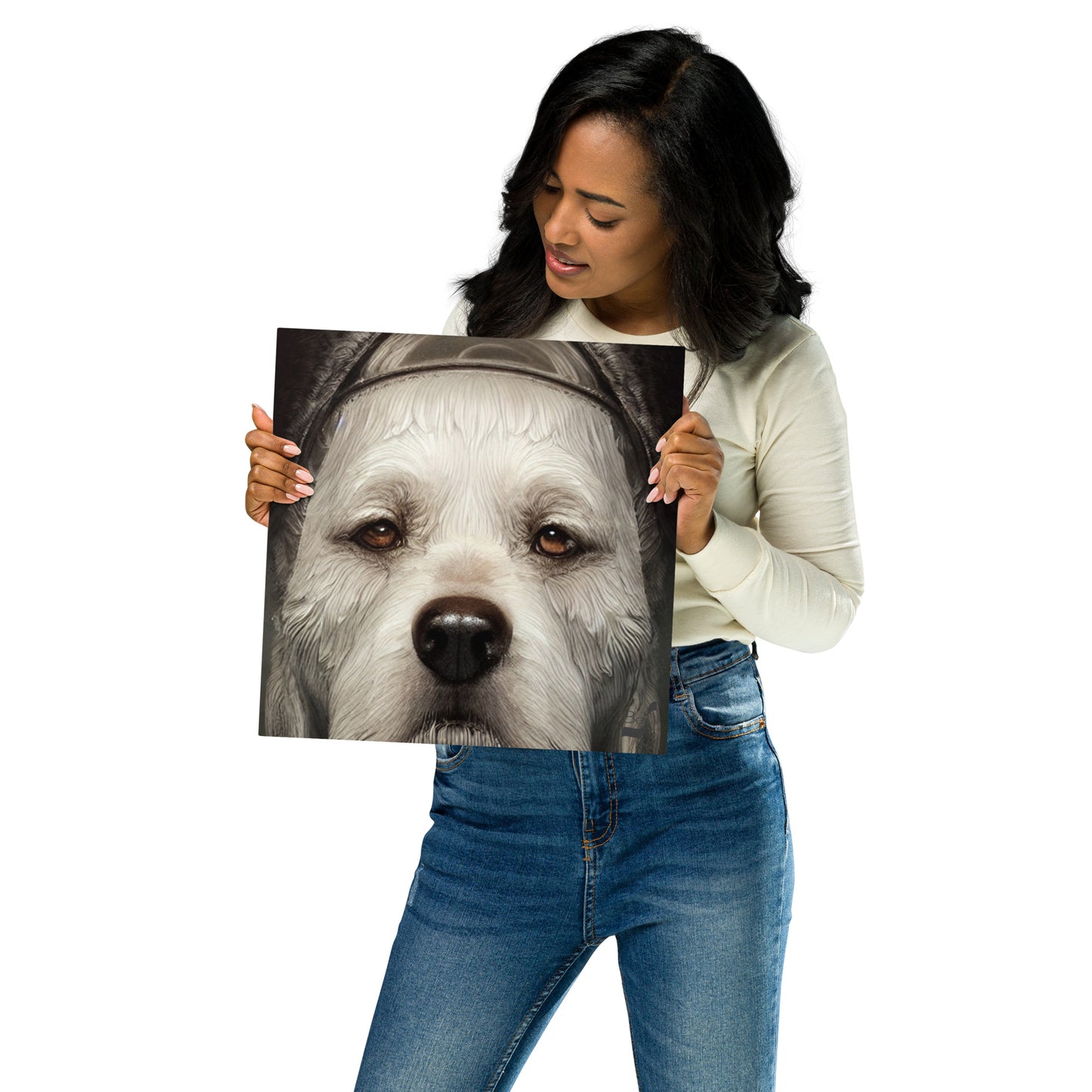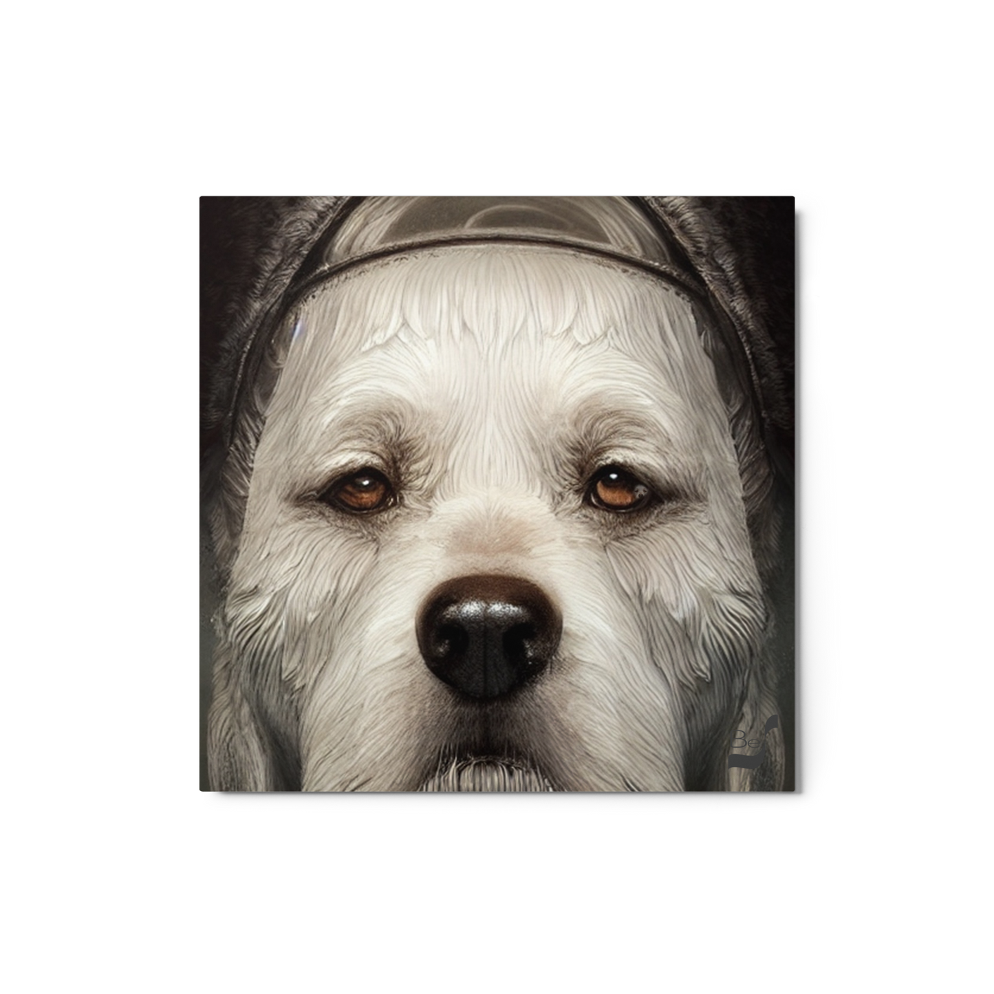 An Ancient Futuristic White Dog Portrait Printed on Metal