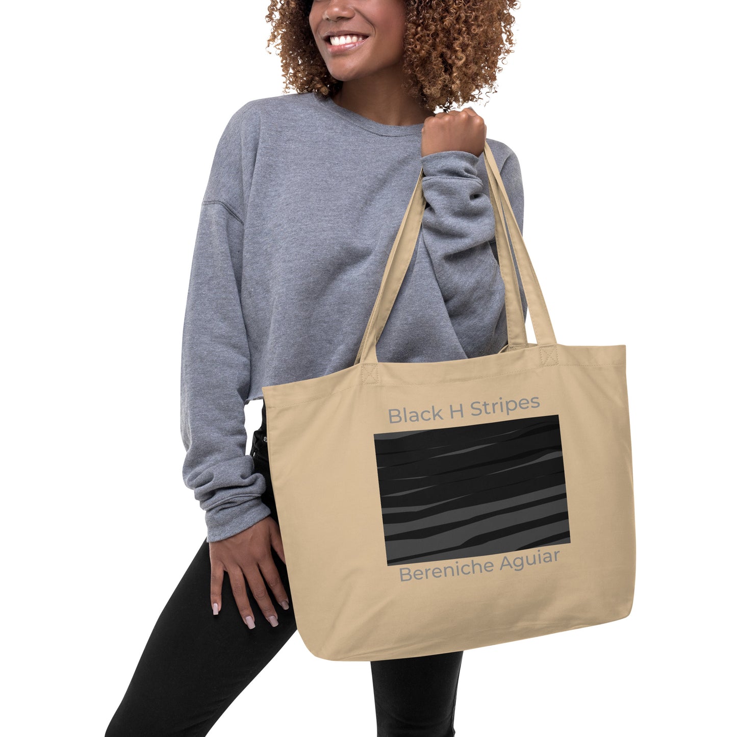 Black H Stripes BeSculpt Large Organic Tote Bag
