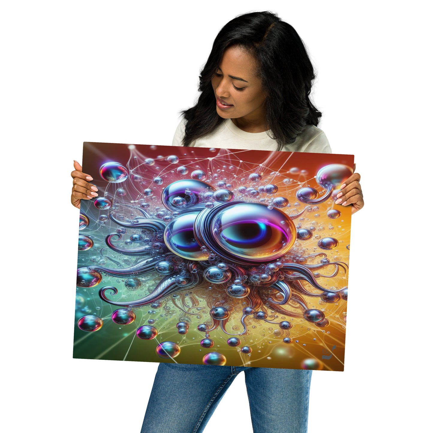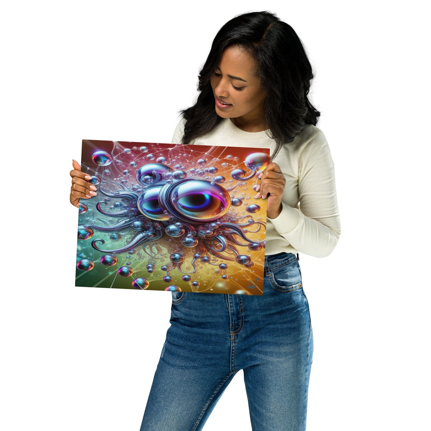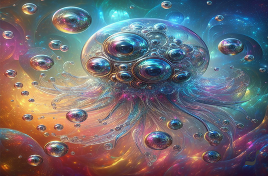 Embark on an extraordinary journey through the vast cosmic landscapes of Bereniche Aguiar's mind with our exclusive 'Bubbles of Fantasy' collection. The first masterpiece, 'Bubbles of Enchanting Nebula,' transcends conventional art, immersing you in a cosmic ballet of transparent metallic bubbles adorned with mystical eyes, graceful tentacles, and a kaleidoscope of colors.