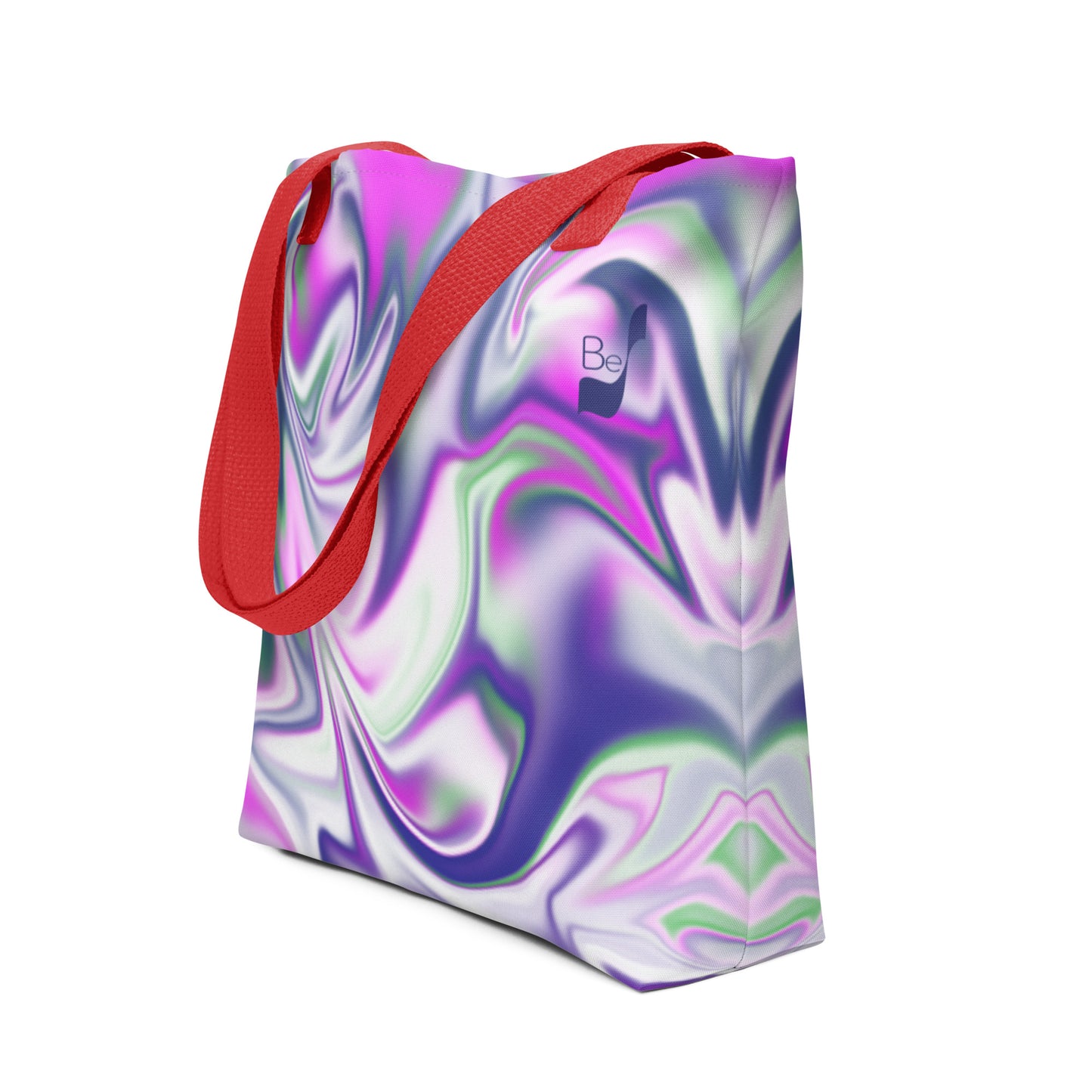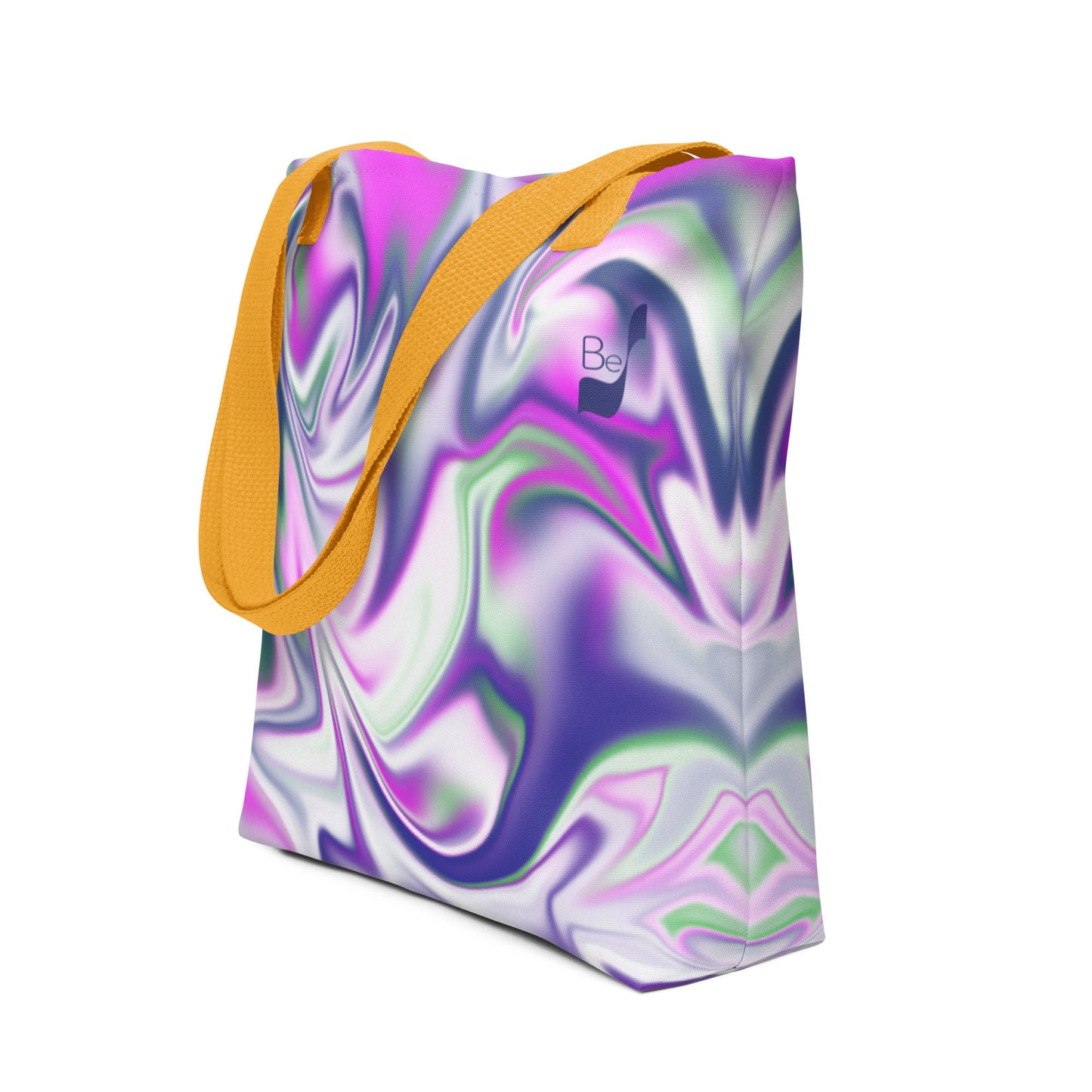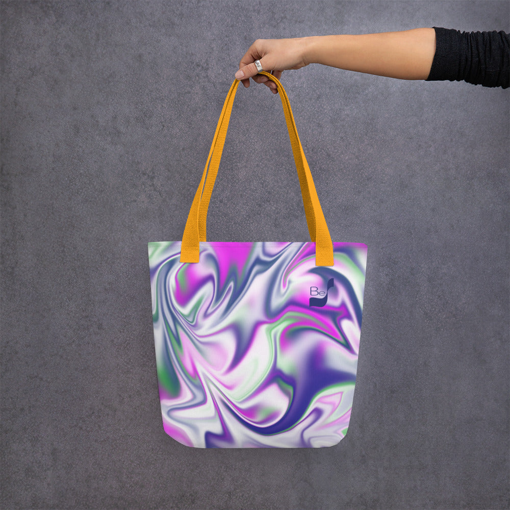 Celebrate Your Bold Personality Through Artful Expression! Our Burst BeSculpt Tote Bag is a bold statement piece that flatters your unique style. Featuring mesmerizing, vibrant abstract designs in colors like African Violet, Emerald, Purple, Indigo, Sapphire, Soft Pink, and White, it's a true work of art with function. Showcase your creative flair and make heads turn everywhere you go!