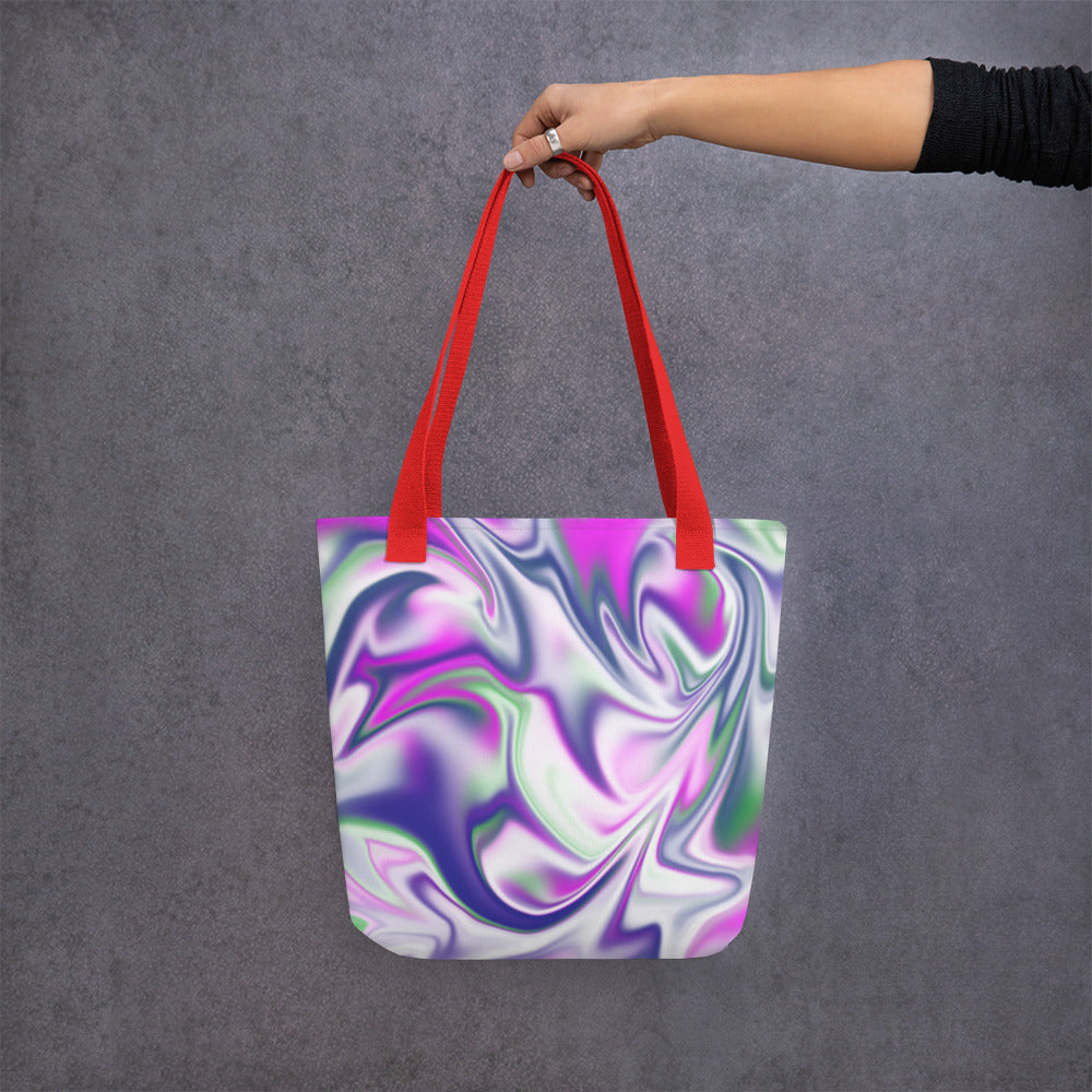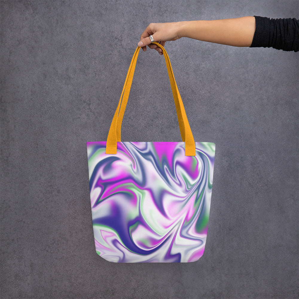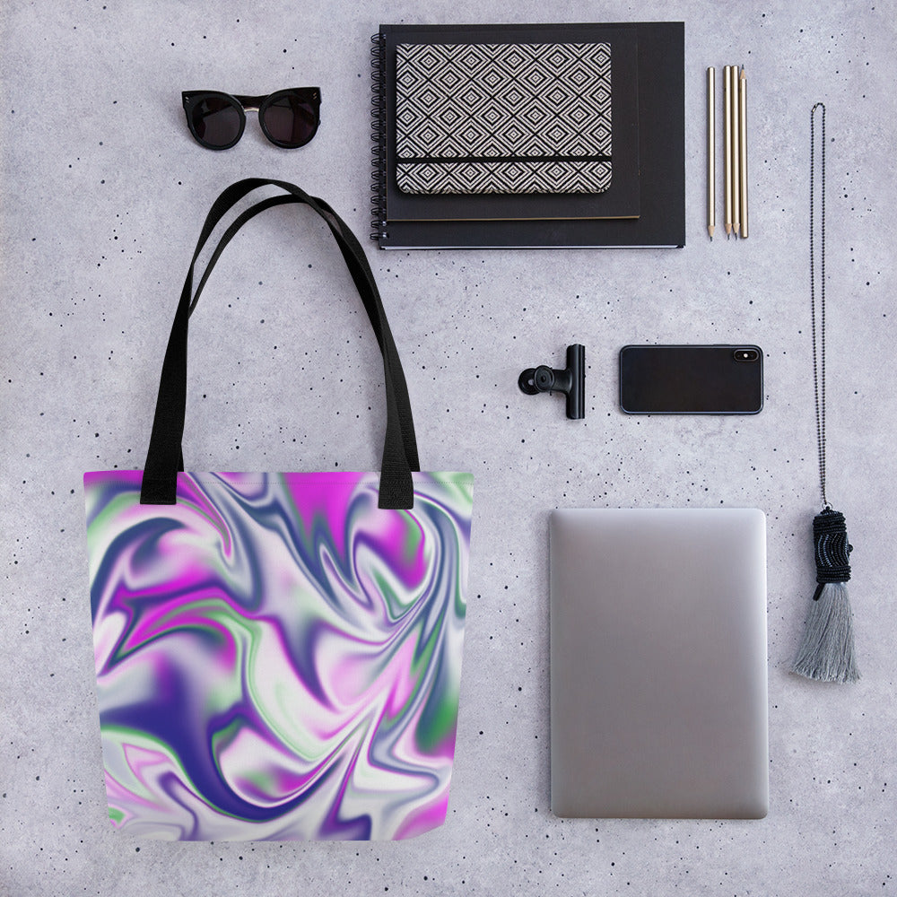 Celebrate Your Bold Personality Through Artful Expression! Our Burst BeSculpt Tote Bag is a bold statement piece that flatters your unique style. Featuring mesmerizing, vibrant abstract designs in colors like African Violet, Emerald, Purple, Indigo, Sapphire, Soft Pink, and White, it's a true work of art with function. Showcase your creative flair and make heads turn everywhere you go!