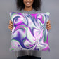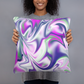 Transform your space with the Burst BeSculpt Throw Pillow Reversed Image, an exquisite piece of art crafted with a dynamic fluid abstract pattern. Its captivating colors of African Violet, Emerald, Purple, Indigo, Sapphire, Soft Pink, and White will give any room a luxurious and sophisticated air. Enjoy the allure of an exclusive art gallery in the comfort of your home.