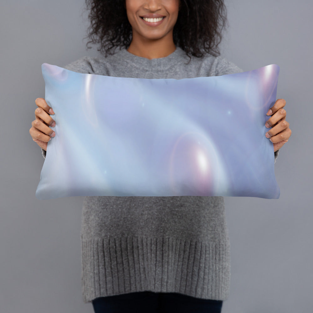 Escape into a world of serene beauty with the Diving Abstract Art Throw Pillow. Immerse yourself in the captivating hues of midnight blue, cerulean, lavender, light blue, and white that gracefully converge to create a tranquil masterpiece.