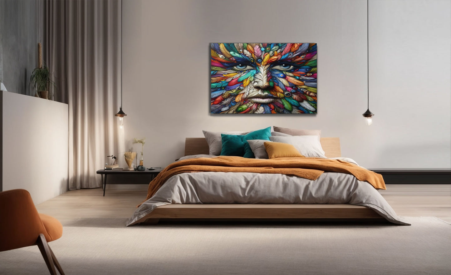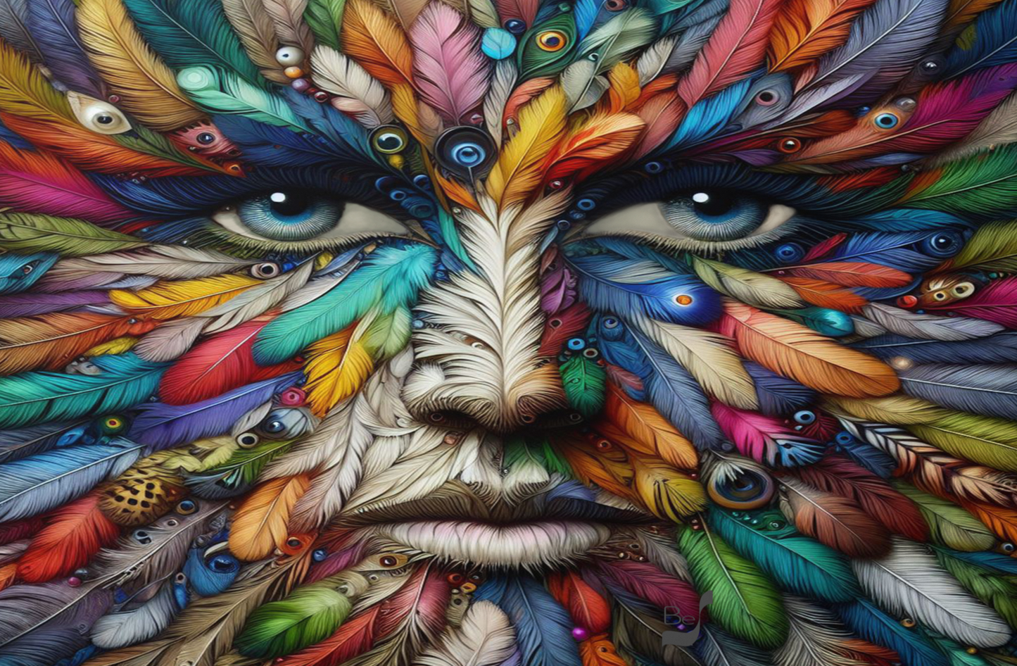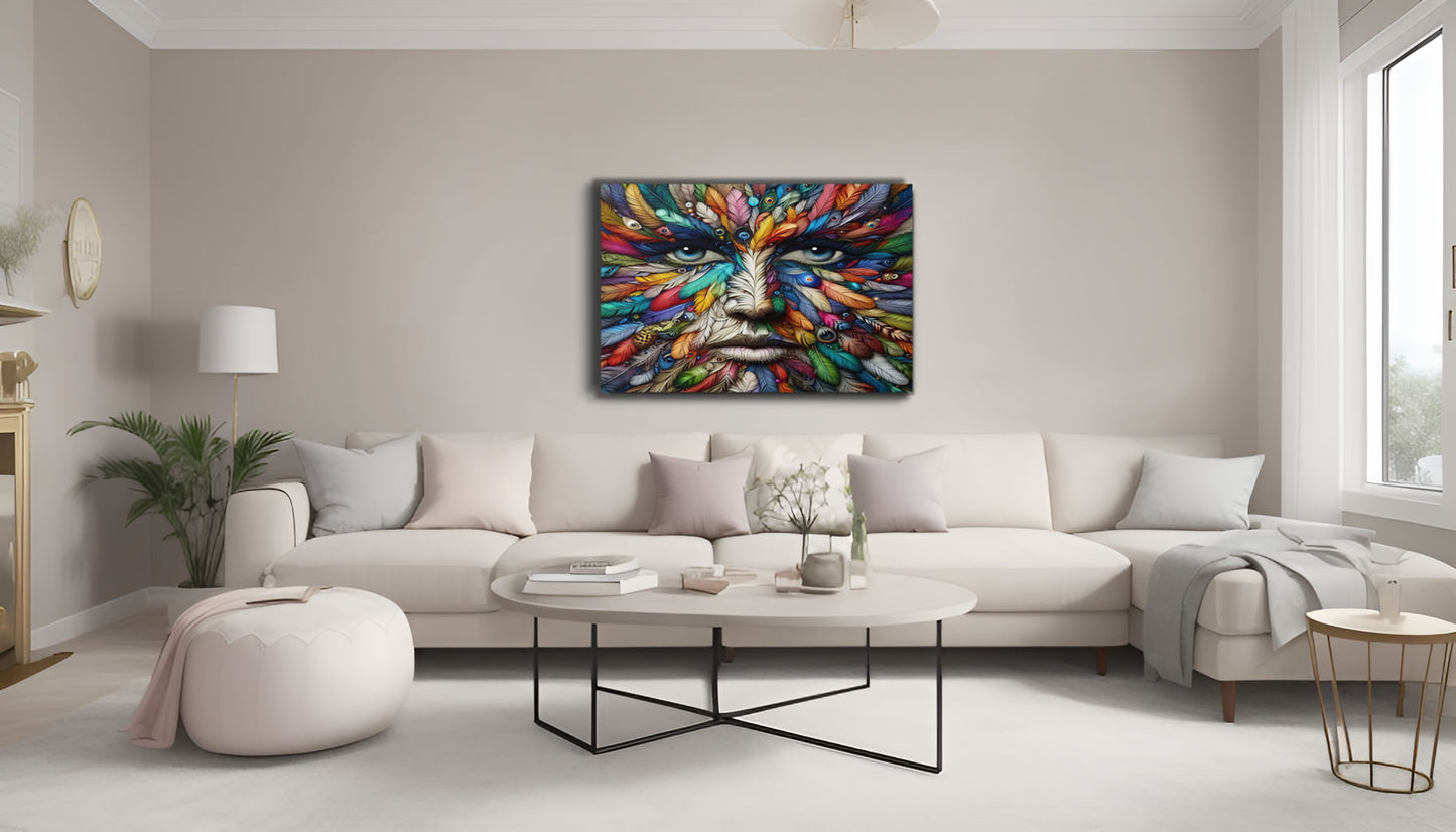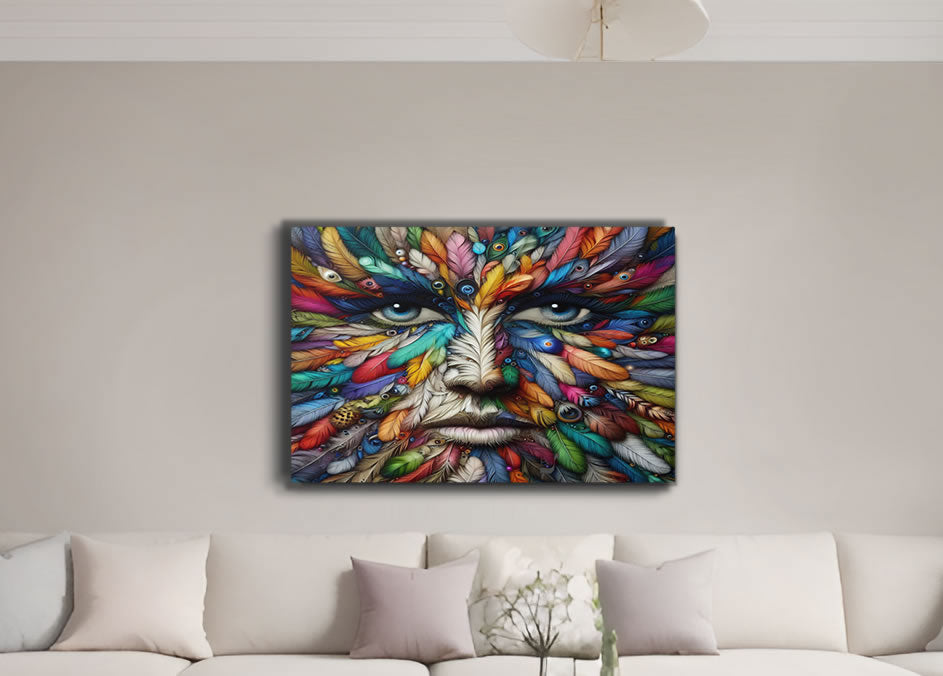 This artwork possesses a subliminal quality that goes beyond its initial appearance. At first glance, it may seem like a mere depiction of a face, but upon closer inspection, viewers discover a deeper narrative woven into its intricate details. The face, composed entirely of feathers, symbolizes a fusion of human and avian elements, inviting viewers to unravel its hidden meanings over time.