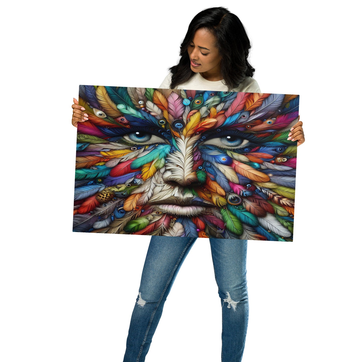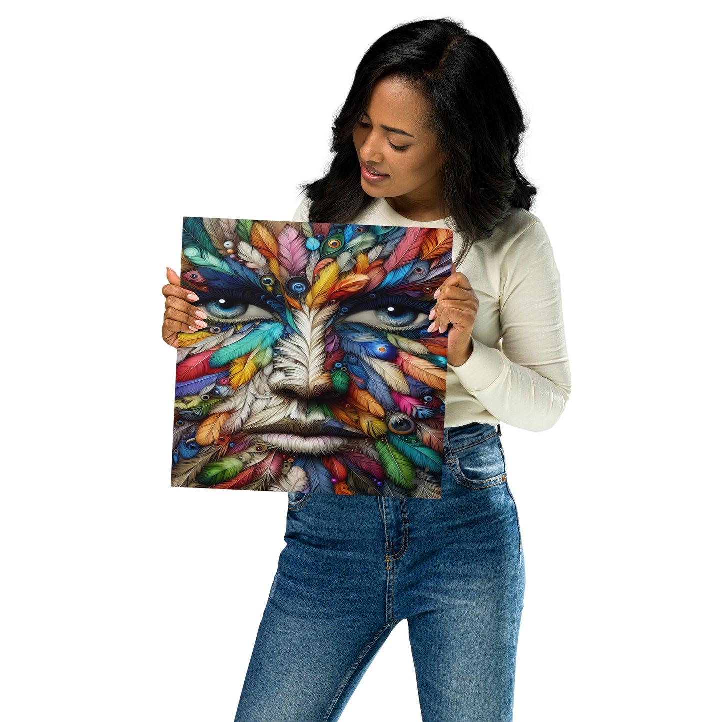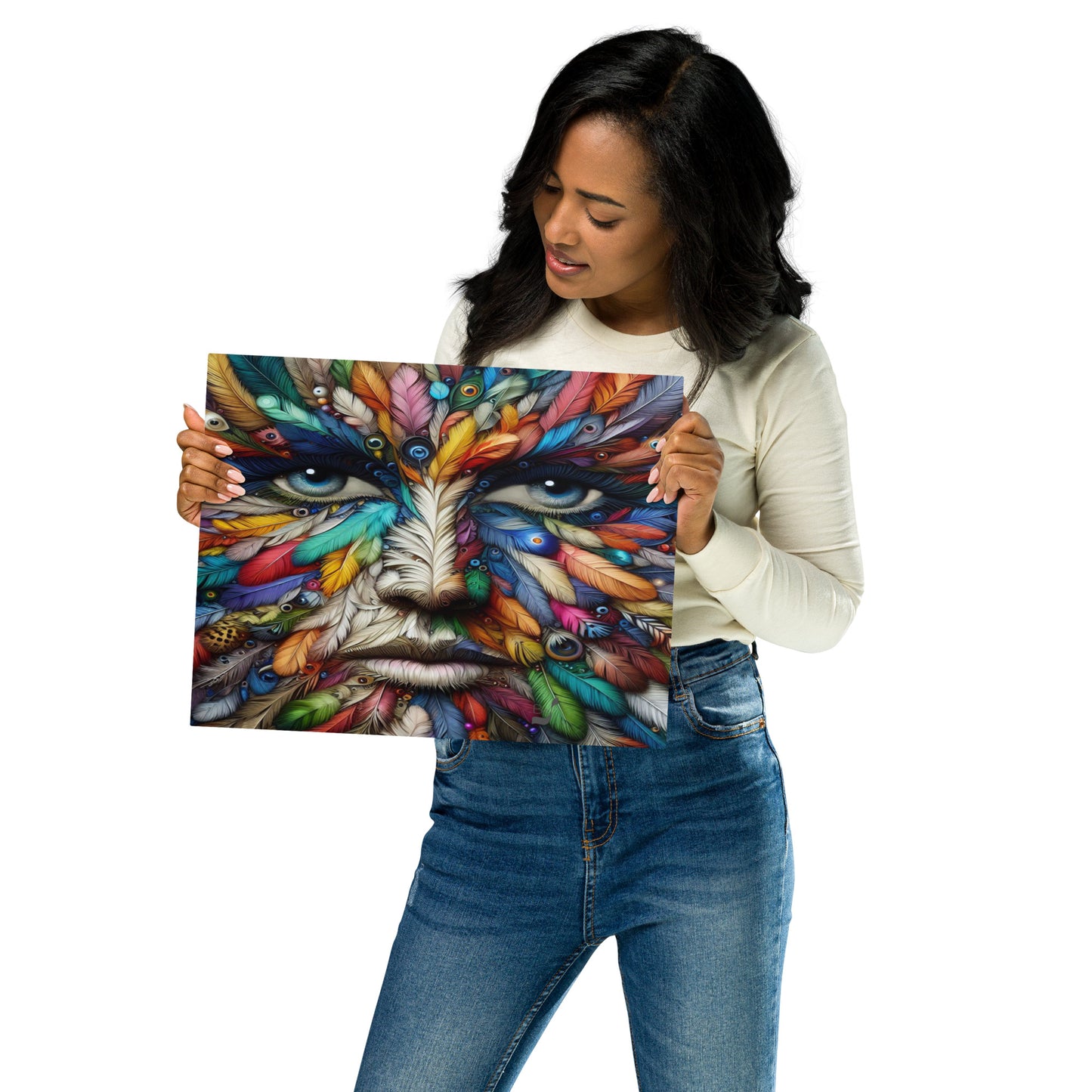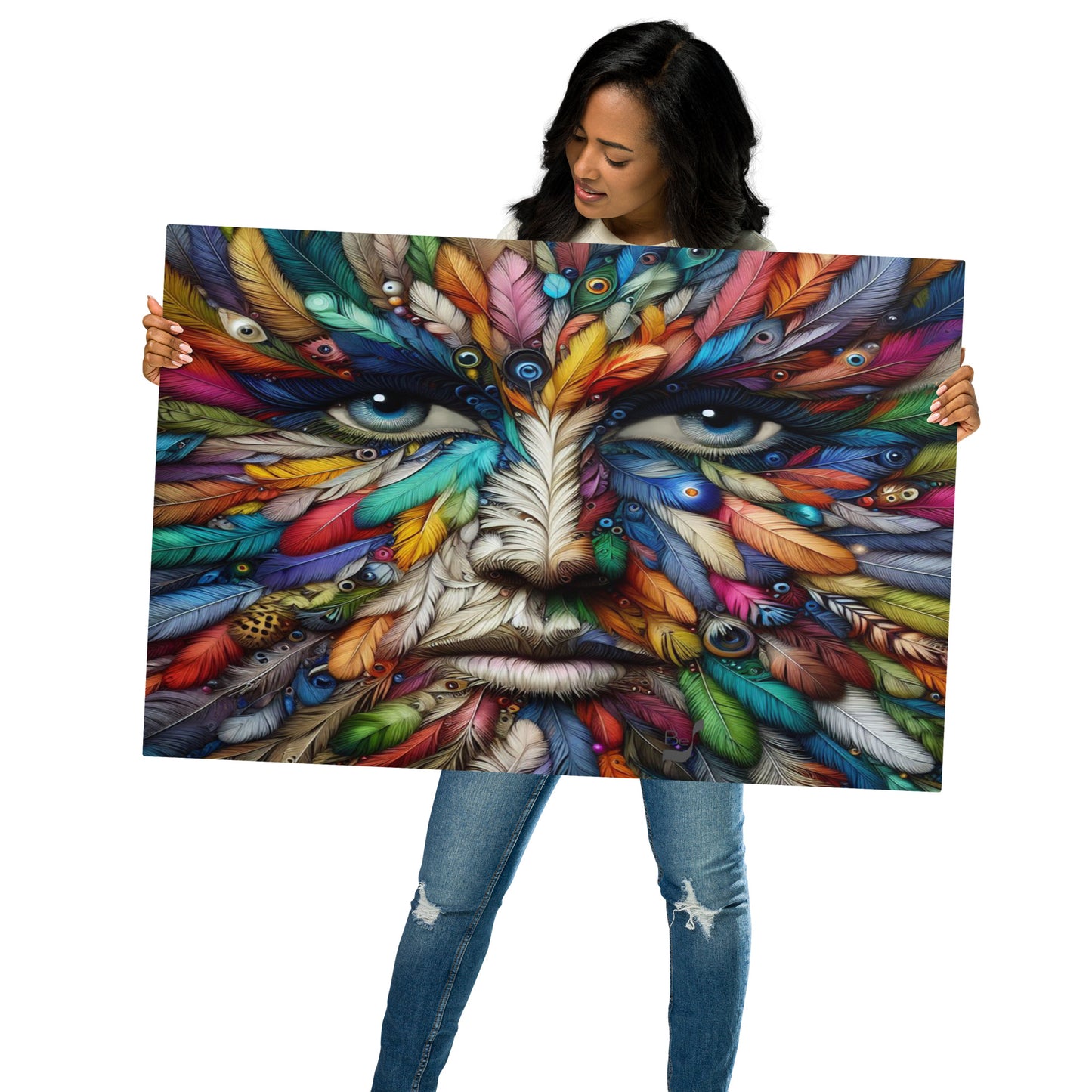 Introducing the Feather Eyes BeSculpt Metal Photo-Art by Bereniche Aguiar—an extraordinary limited edition masterpiece that embodies the essence of contemporary art. Crafted with meticulous precision, Bereniche Aguiar's brush strokes intertwine seamlessly with cutting-edge AI techniques, resulting in a stunning artwork that transcends conventional boundaries to deliver a truly immersive experience.