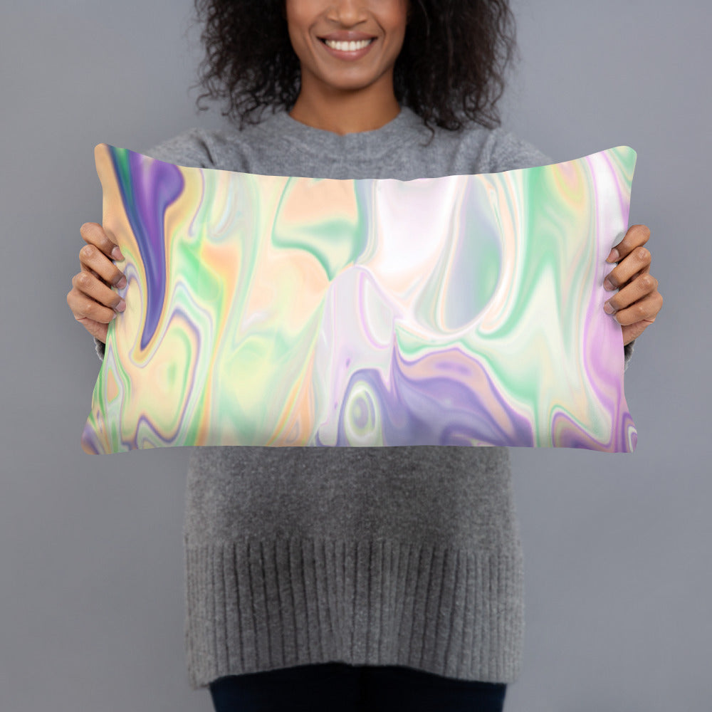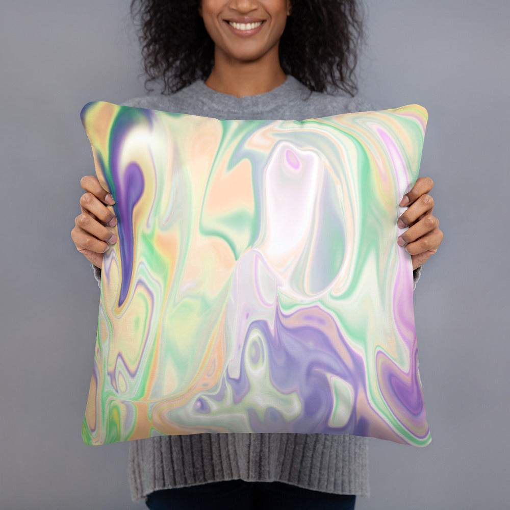 Crafted with attention to detail, the throw pillow's 100% polyester case and insert offer both comfort and durability. With a fabric weight of 6.49–8.85 oz/yd² (220–300 g/m²), it's a testament to quality and elegance. The hidden zipper seamlessly integrates with the design, maintaining the artwork's fluidity.