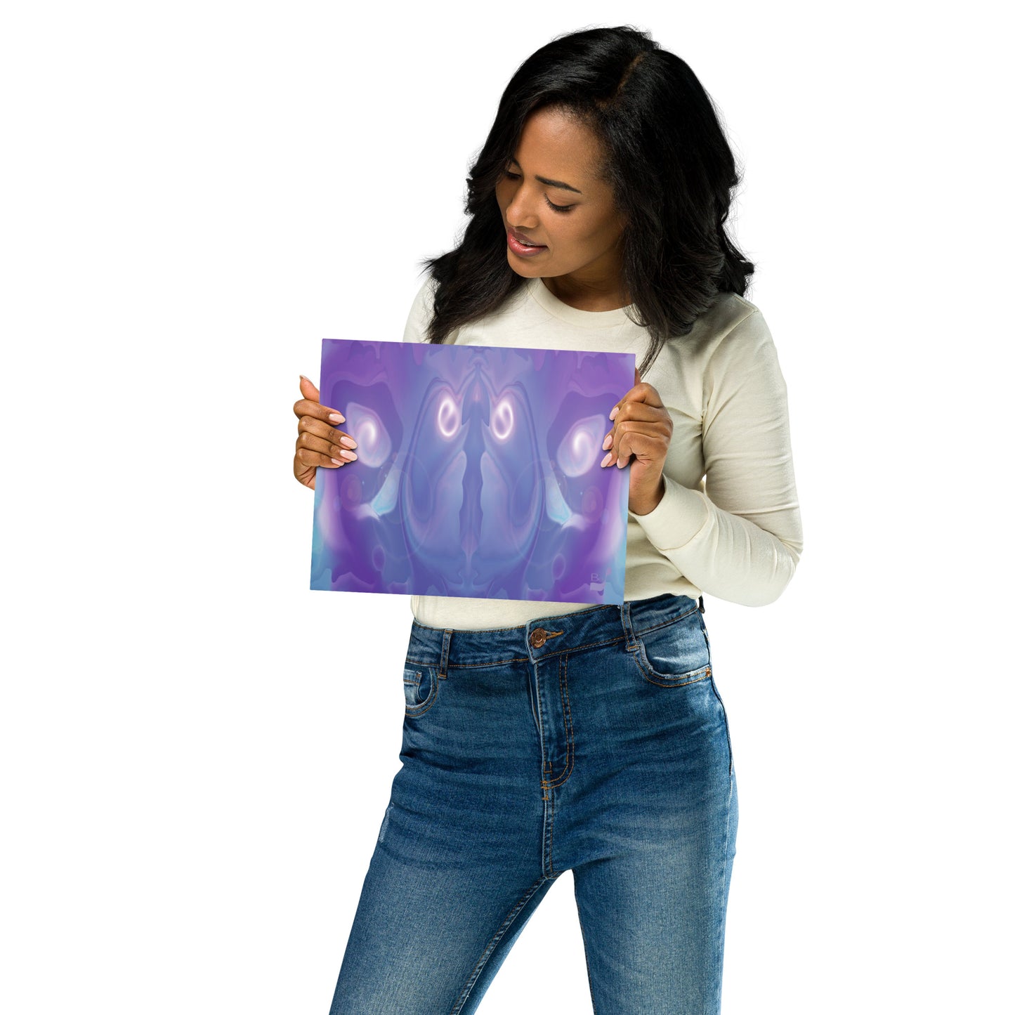 "Fegee" becomes the heart of this piece, adding an element of charm and intrigue to the captivating blend of rich and pastel colors, including Aqua, Cerulean, Deep Purple, Indigo, Lavender, Purple, and White. The imaginative merger of Hidden Reservoir and Reversed Image brings this enchanting creature to life in a way that sparks joy and captivates the viewer's imagination.