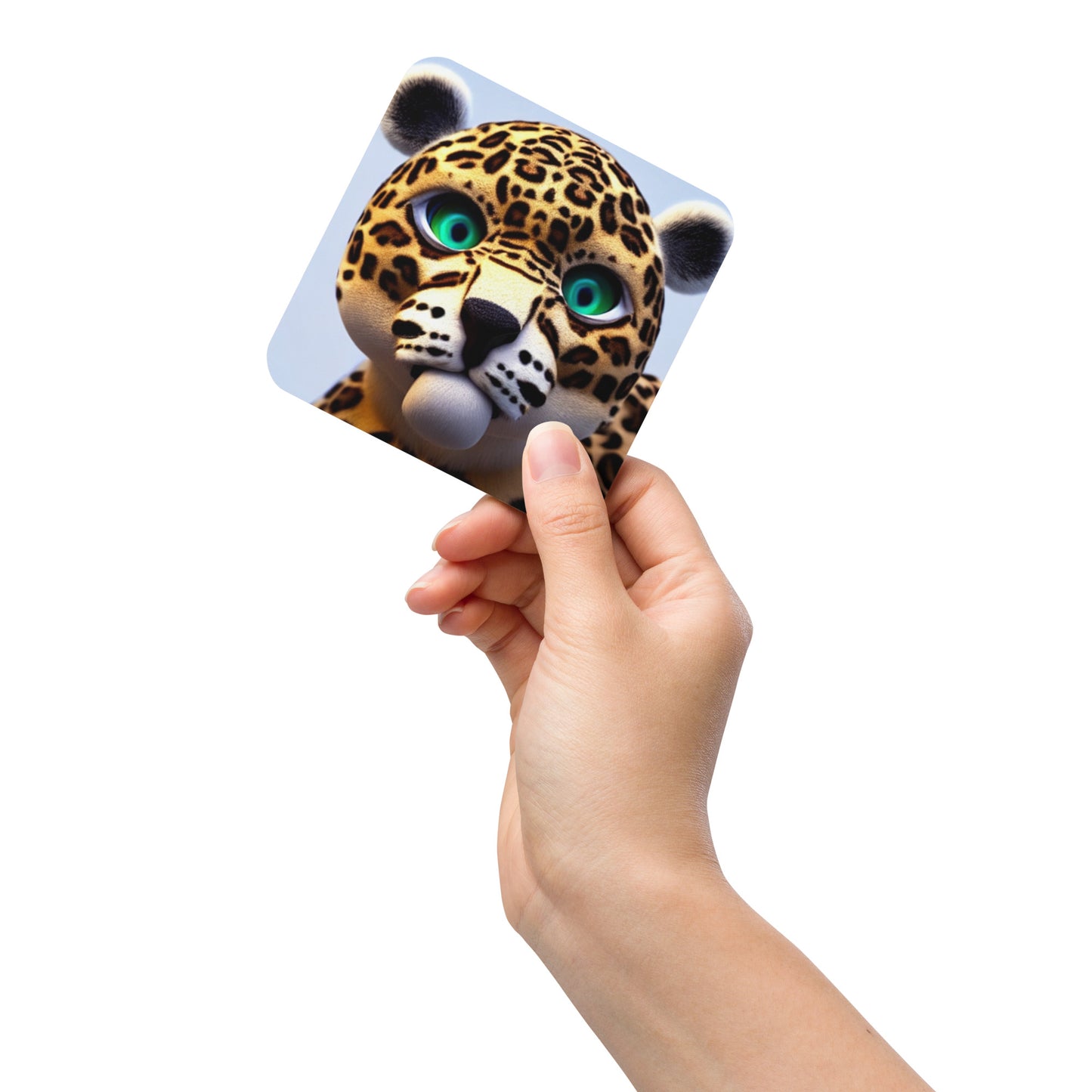 Every detail of the stuffed leopard is meticulously captured in this coaster set. The adorable face and those captivating green eyes are showcased beautifully.