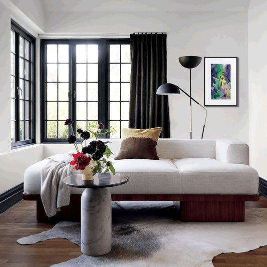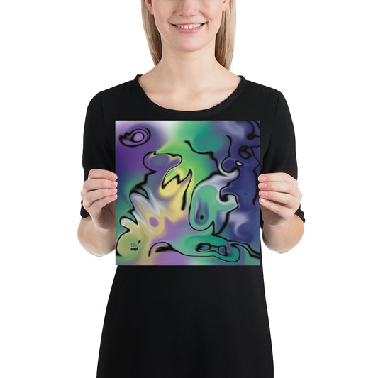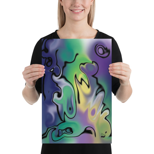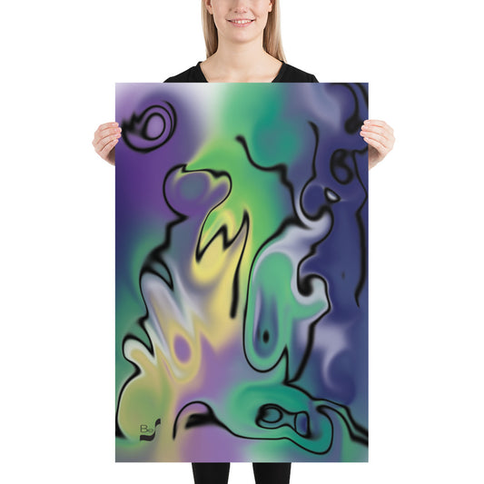 Mesmerizing Design: The Masquerade abstract art piece, with its fluidity, modernity, and sophistication, enchants the viewer's imagination. The harmonious blend of Emerald, Indigo, Light Yellow, Purple, and White creates a captivating dance of elegance, while the defining black lines suggest a hidden sense of majesty behind the beguiling masks.