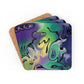 Introducing the Masquerade BeSculpt Corkwood Coaster Reversed Image Set - an enchanting and dynamic collection of fluid art coasters, now with a delightful twist of the image reversed. This set comprises four individual coasters, each showcasing a reversed version of the Masquerade BeSculpt Corkwood Coaster Set, doubling the fun and intrigue.