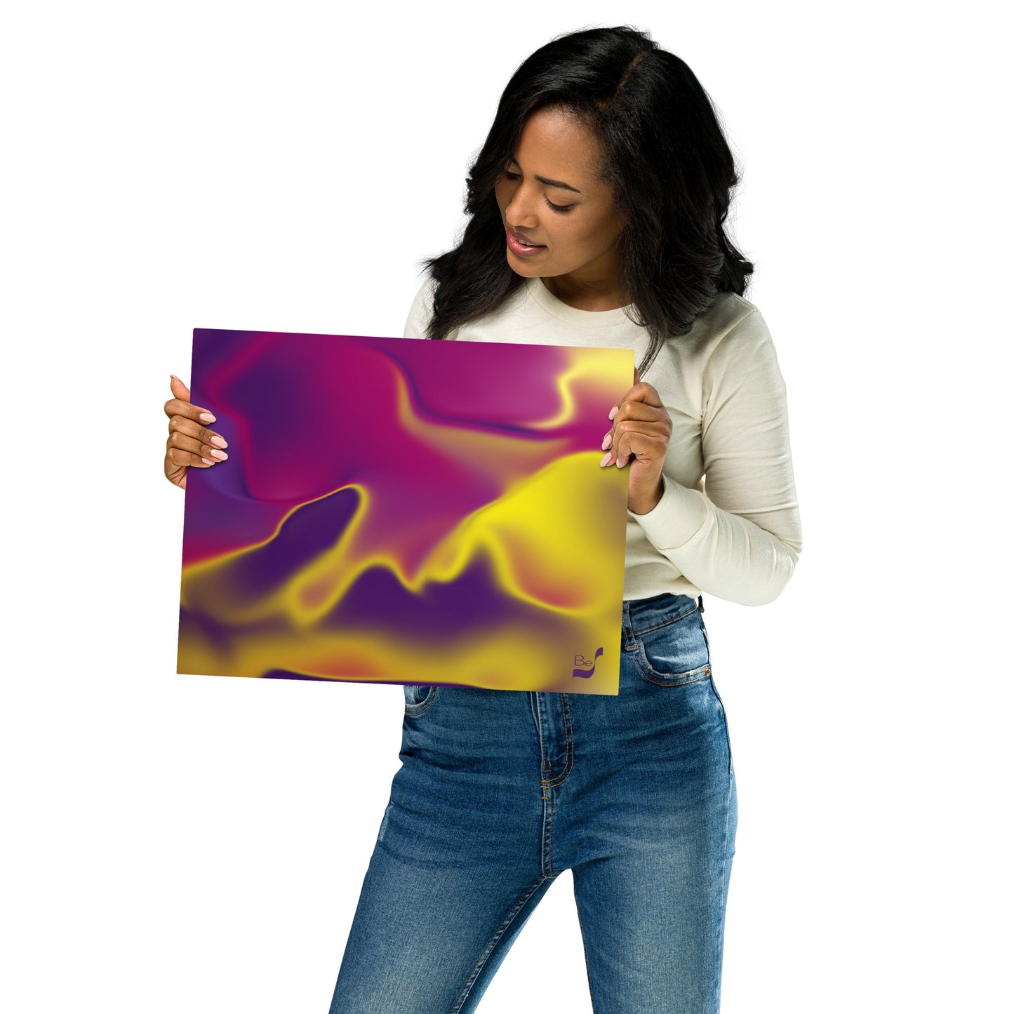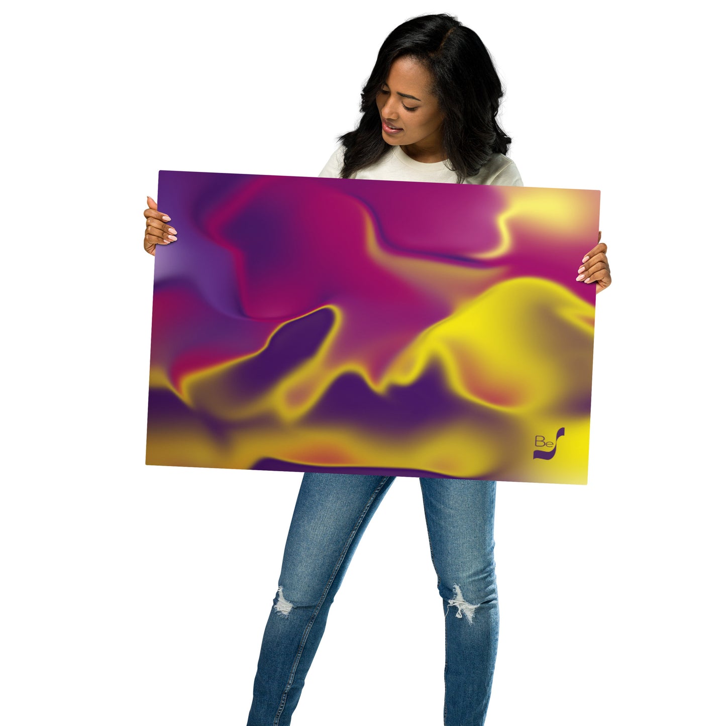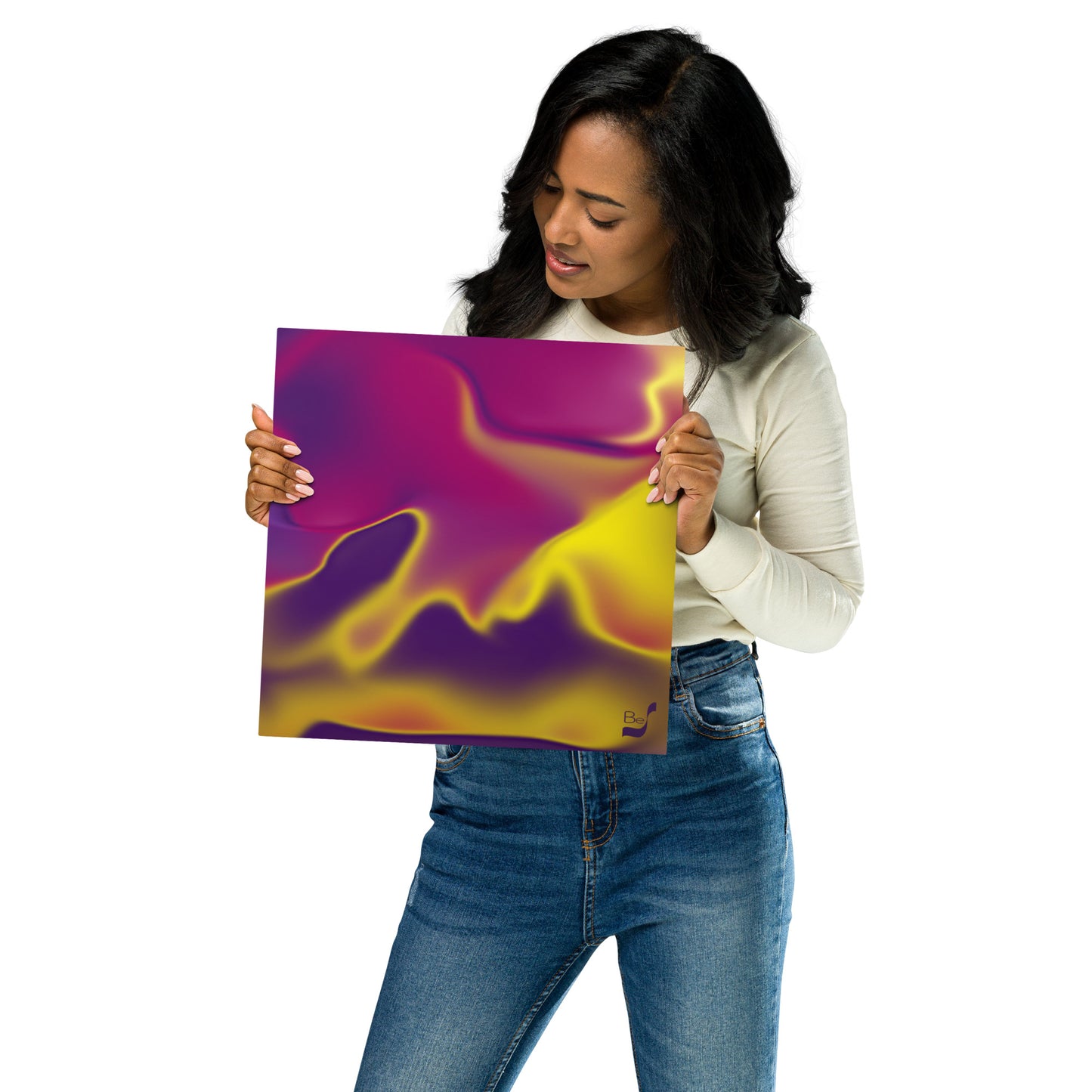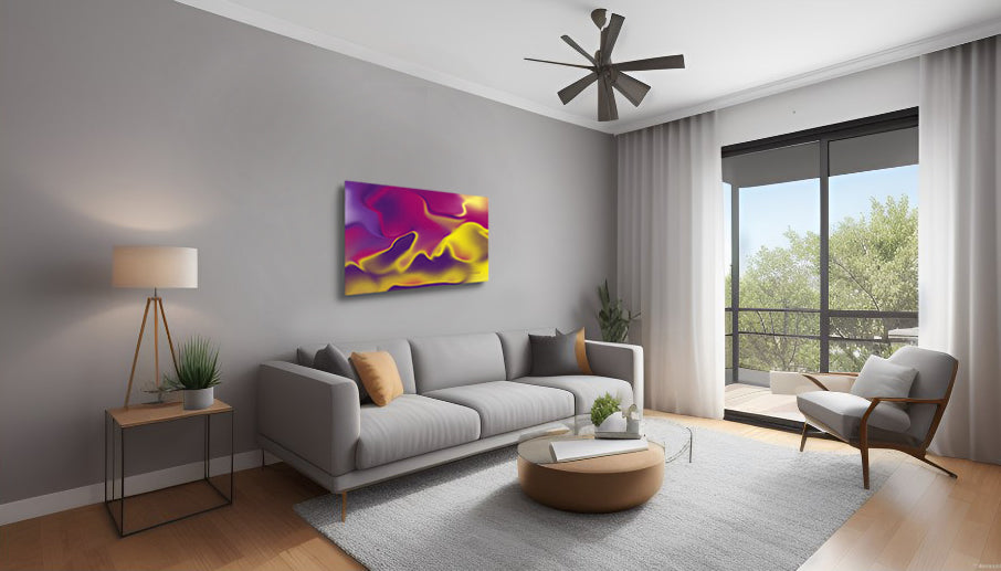 The captivating colors of Deep Purple, Fuchsia, Purple, and Yellow come to life with stunning clarity on the metal medium, adding depth and character to your walls. The metal presentation offers durability and a unique metallic sheen, infusing your decor with an industrial-chic elegance.