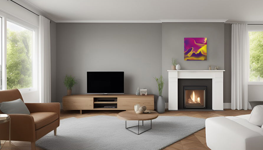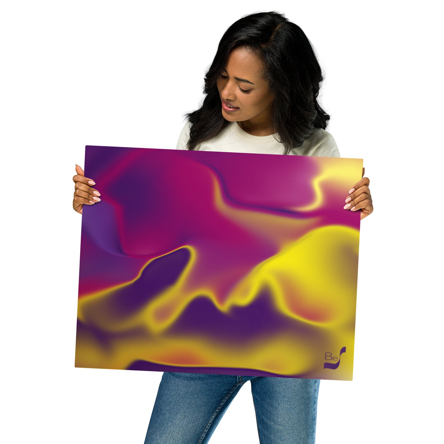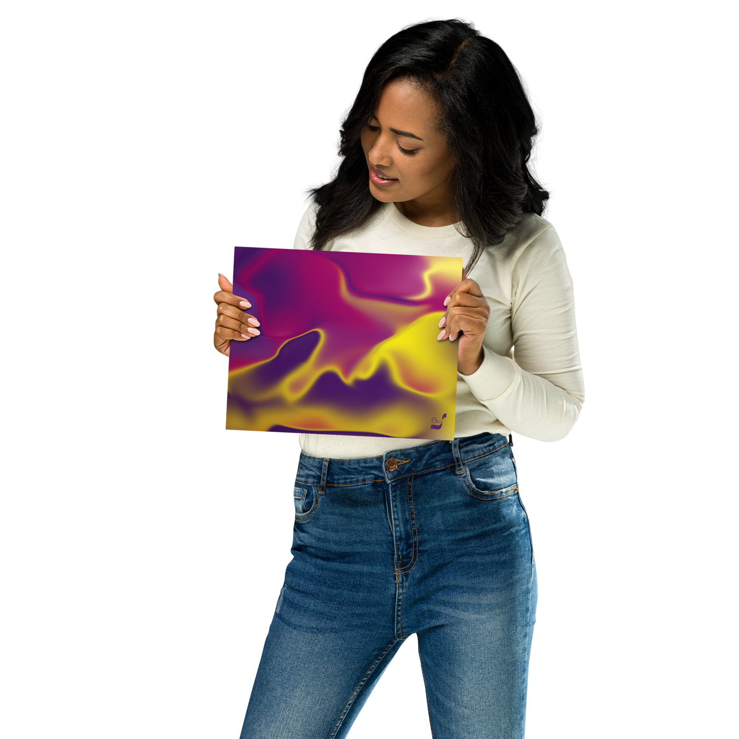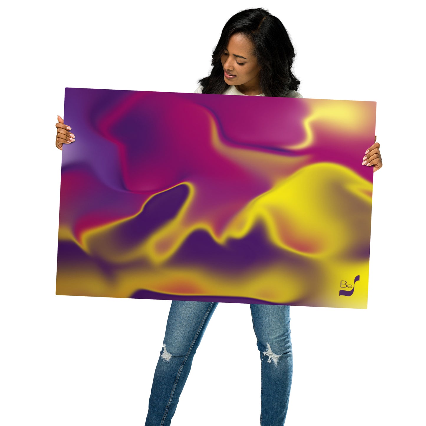 The captivating colors of Deep Purple, Fuchsia, Purple, and Yellow come to life with stunning clarity on the metal medium, adding depth and character to your walls. The metal presentation offers durability and a unique metallic sheen, infusing your decor with an industrial-chic elegance.