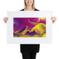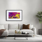 The exquisite presentation on premium print, accentuated by a white matboard and framed to perfection, adds a touch of refinement to your living space. The contrasting colors of Deep Purple, Fuchsia, Purple, and Yellow effortlessly harmonize to create a visual feast for the eyes.