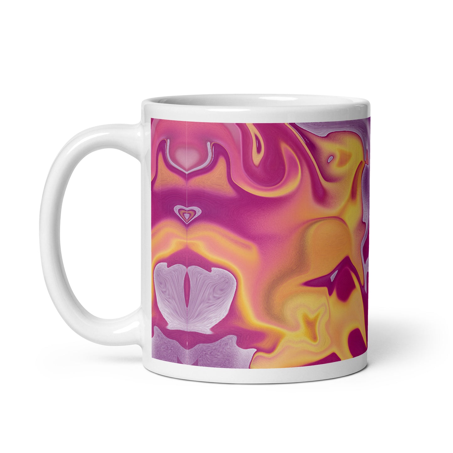 Discover the artistry of the "Purple Puddle BeSculpt Abstract Art Kaleidoscope Mug - Image No. 3." This masterpiece skillfully captures the essence of the Purple Puddle art piece in a kaleidoscope of Deep Purple, Lavender, Soft Yellow, Mustard, Deep Fuchsia, and White. With each glance into this mug, you'll find yourself transported into a world of ever-changing colors and forms, evoking the beauty of movement and grace. This mug transforms your daily coffee or tea ritual into a visual and sensory experience that's truly extraordinary.