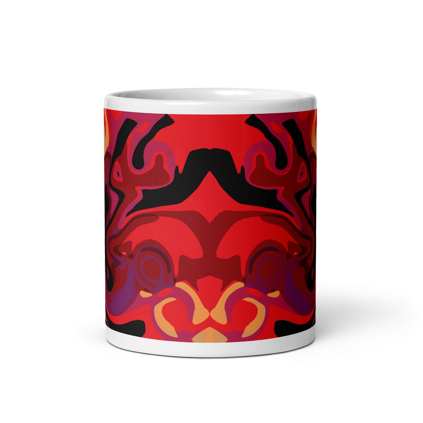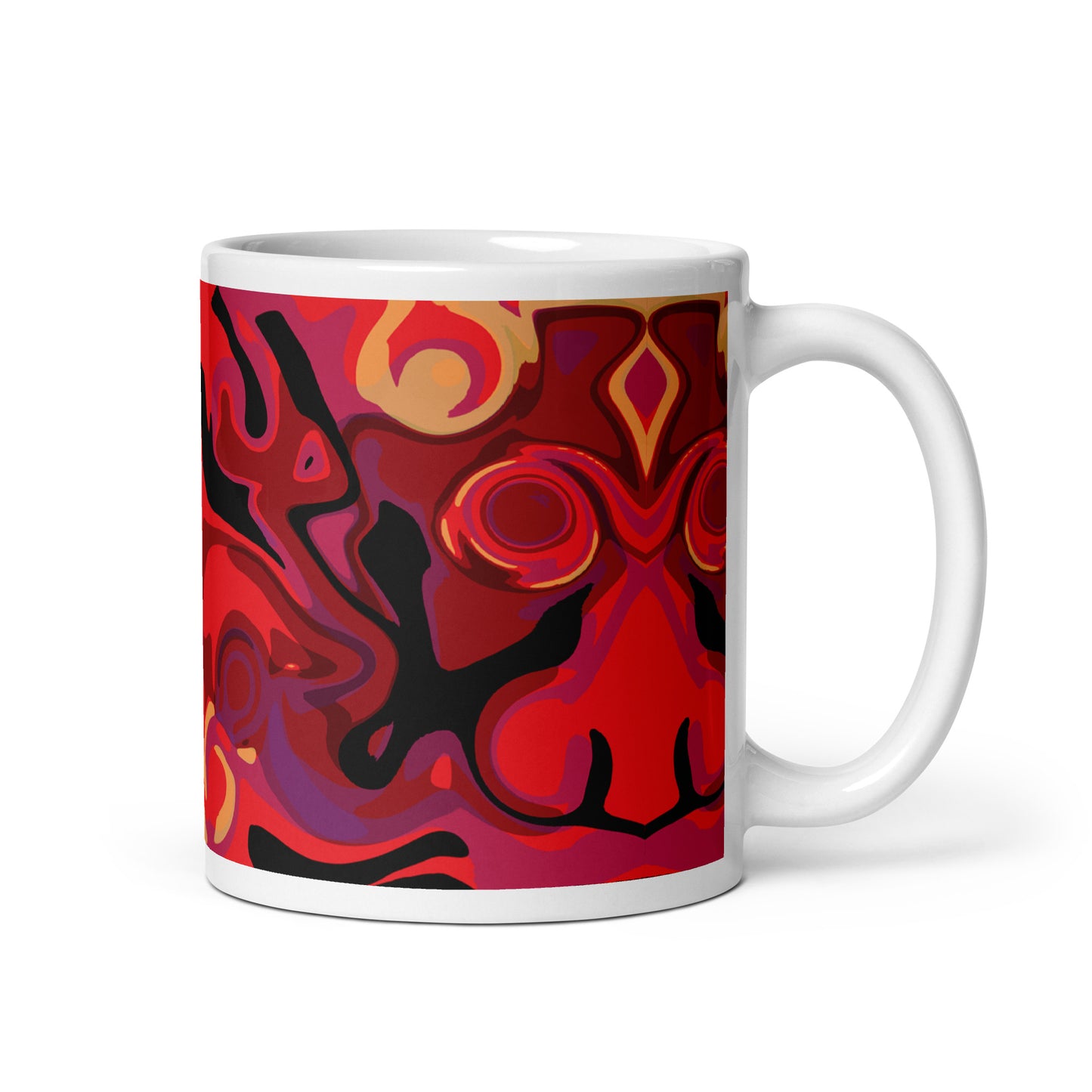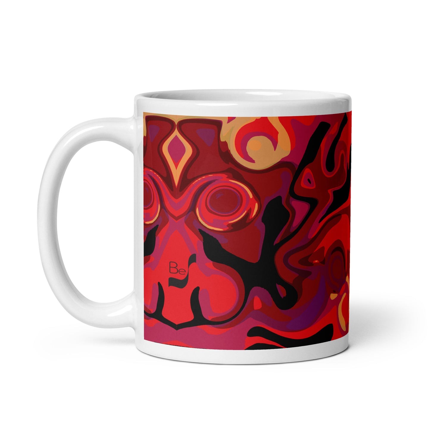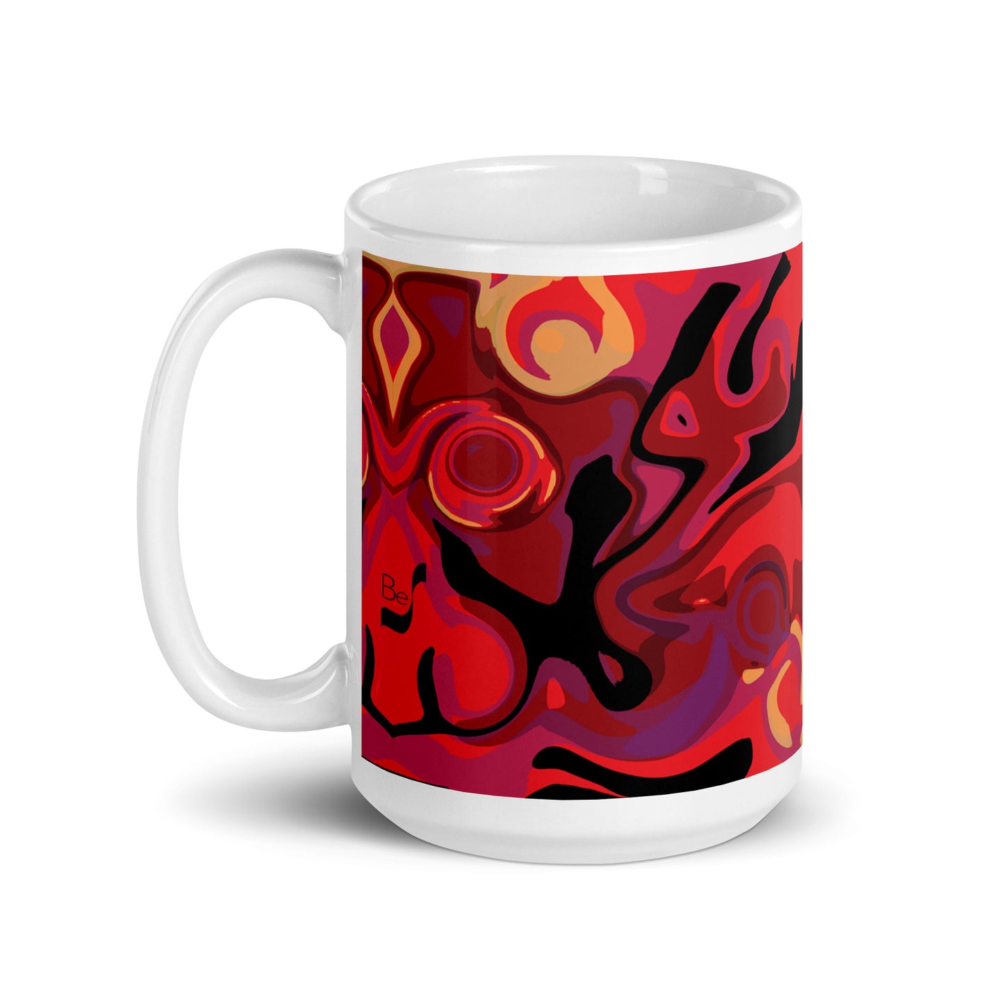 Experience the enchantment of the "Reaching BeSculpt Abstract Art Kaleidoscope Mug - Image No. 4." In this version, the Reaching art piece is elegantly depicted in a kaleidoscope of Red, Mustard, Brown, and Purple hues, with shapes and forms gracefully twirling and shifting with each glance. With every sip from this mug, you'll be transported into a world of ever-changing colors and patterns, making your daily coffee or tea ritual an enchanting and immersive adventure. This mug is a testament to the captivating allure of abstract artistry, inviting you to contemplate its depths with every sip.