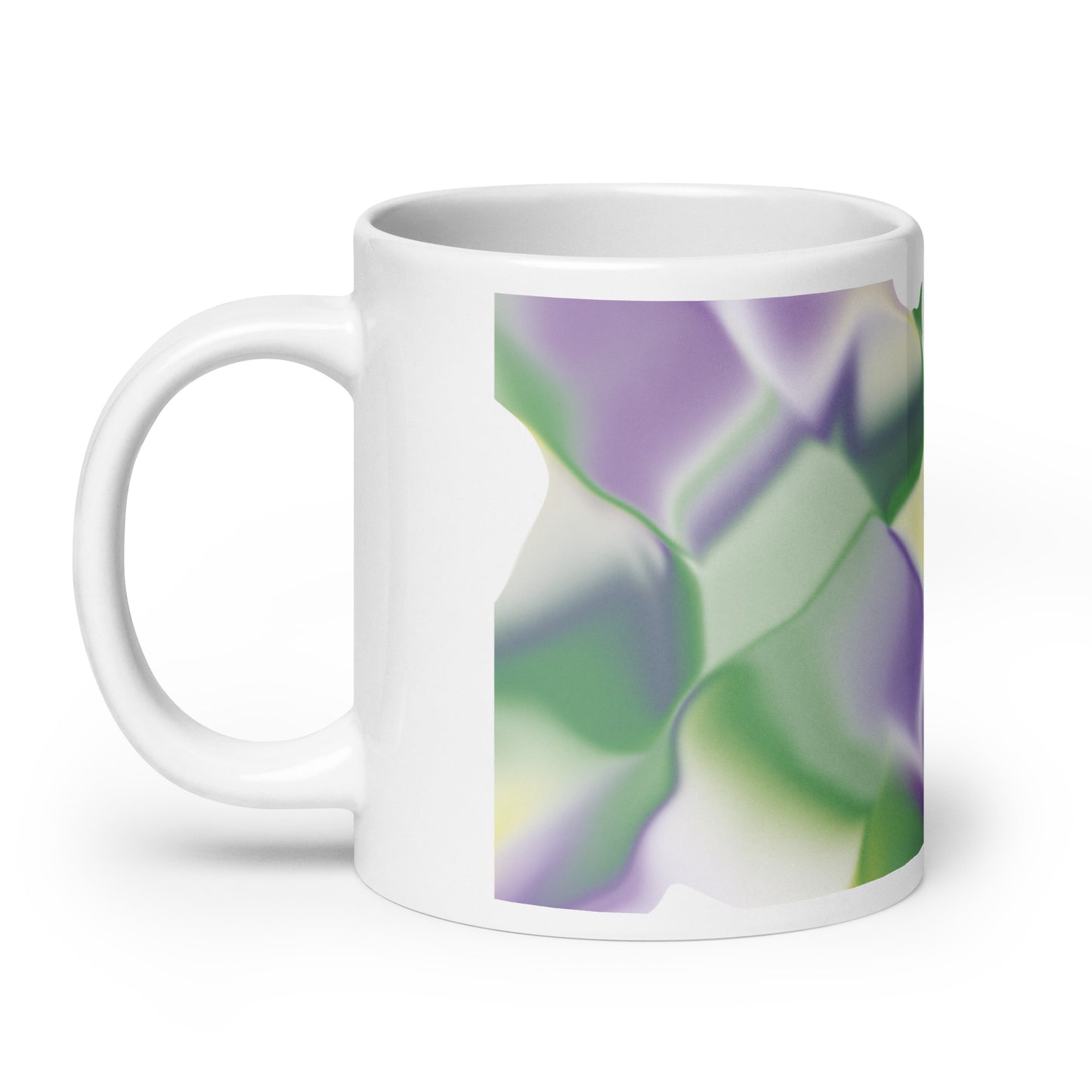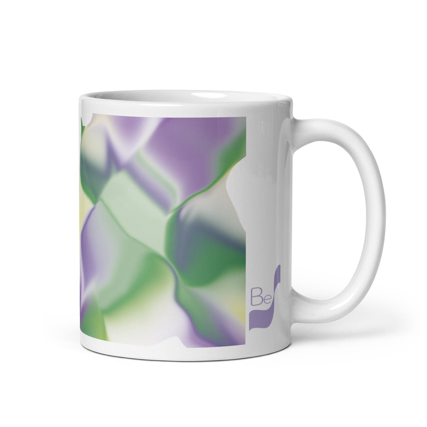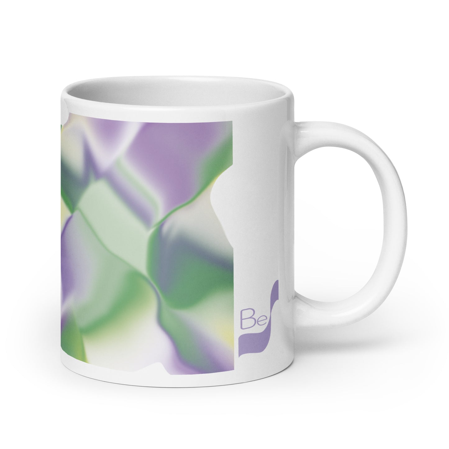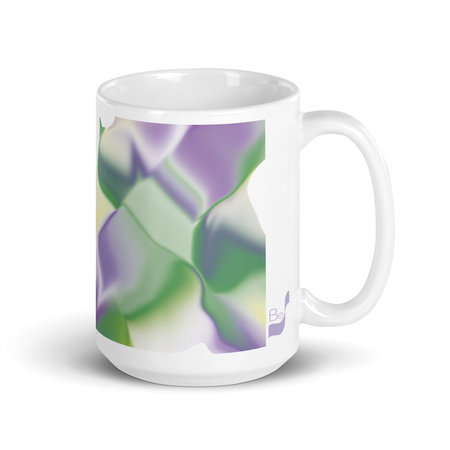 Immerse yourself in the tranquility and beauty of nature's dance, as the vivid glossy print withstands the microwave and dishwasher, ensuring both the durability and visual appeal of this functional piece. The Ribbons Green BeSculpt Kaleidoscope Mug 3 is available in three sizes – 11 oz, 15 oz, and 20 oz – each meticulously made to order to reduce overproduction and contribute to sustainable practices.