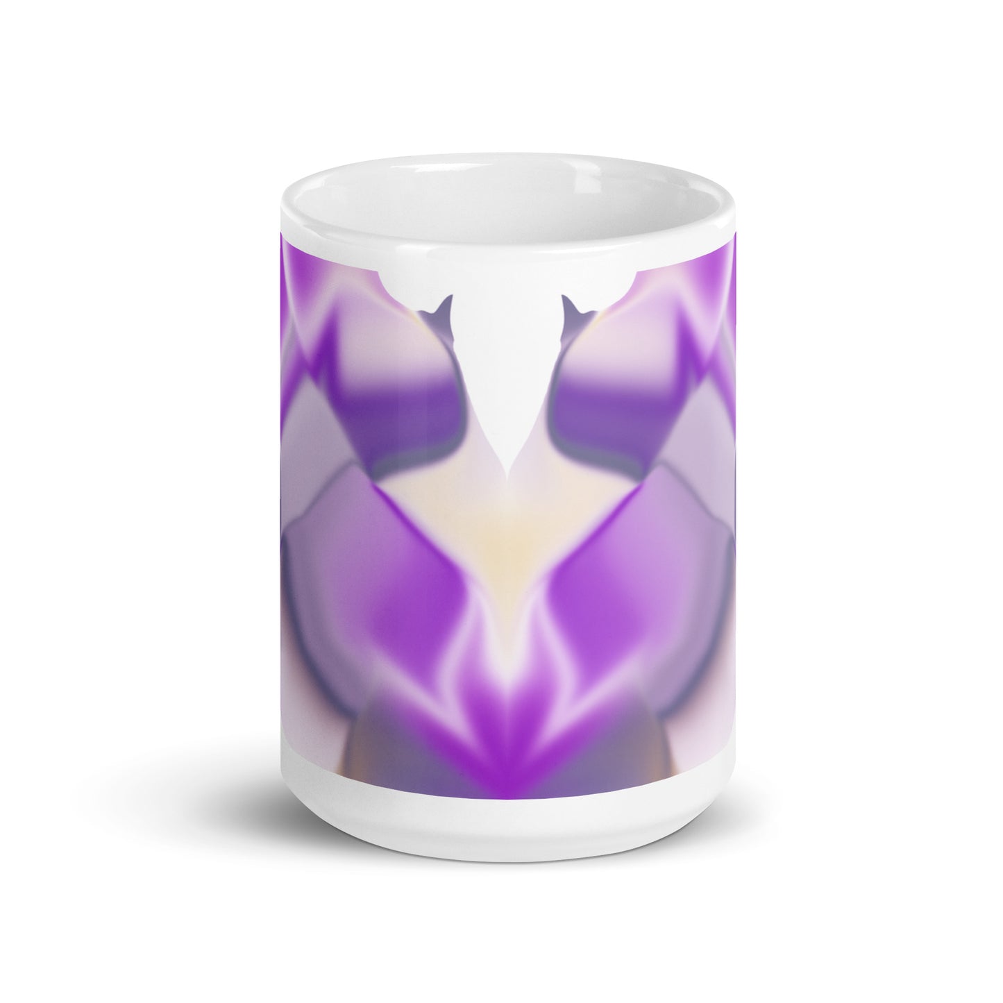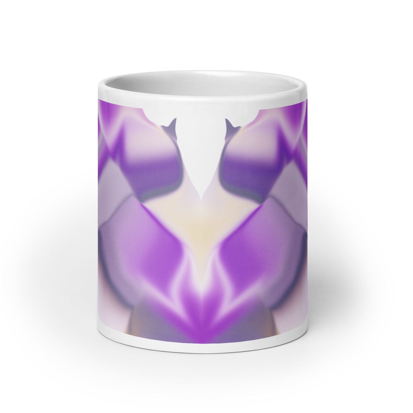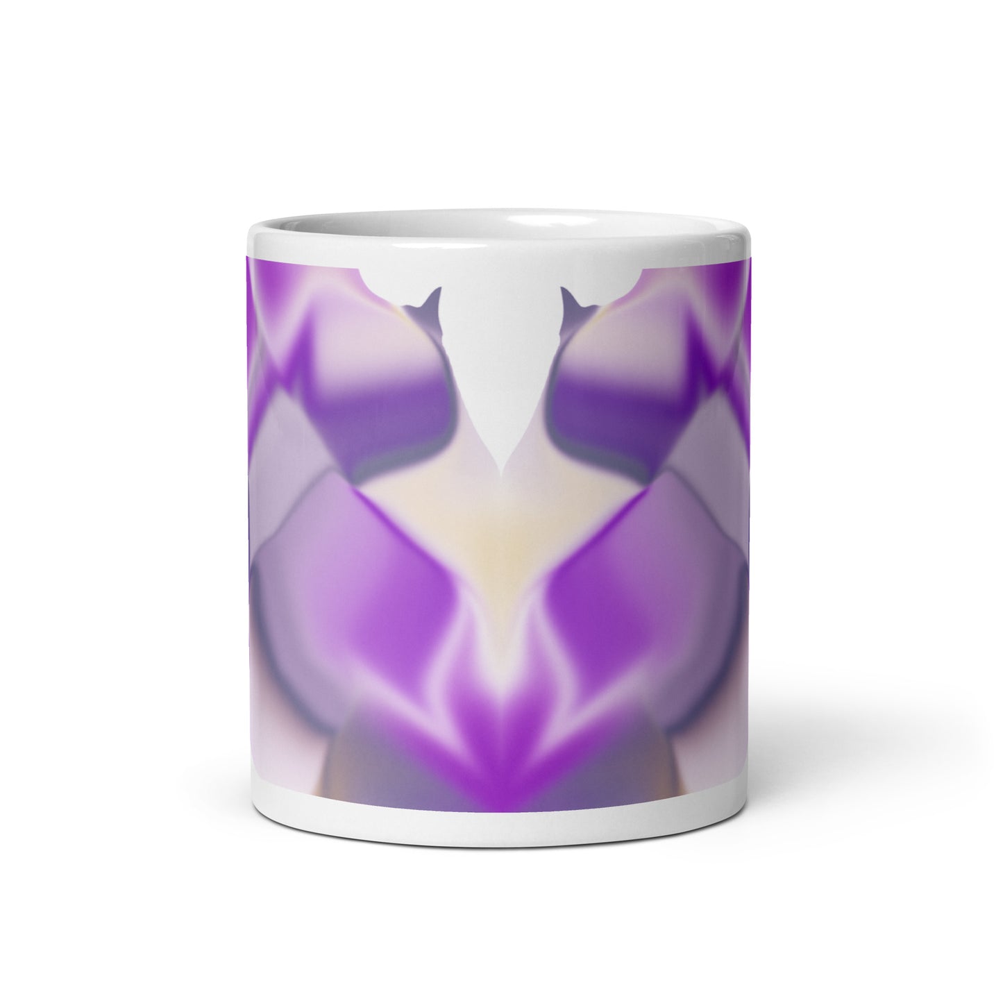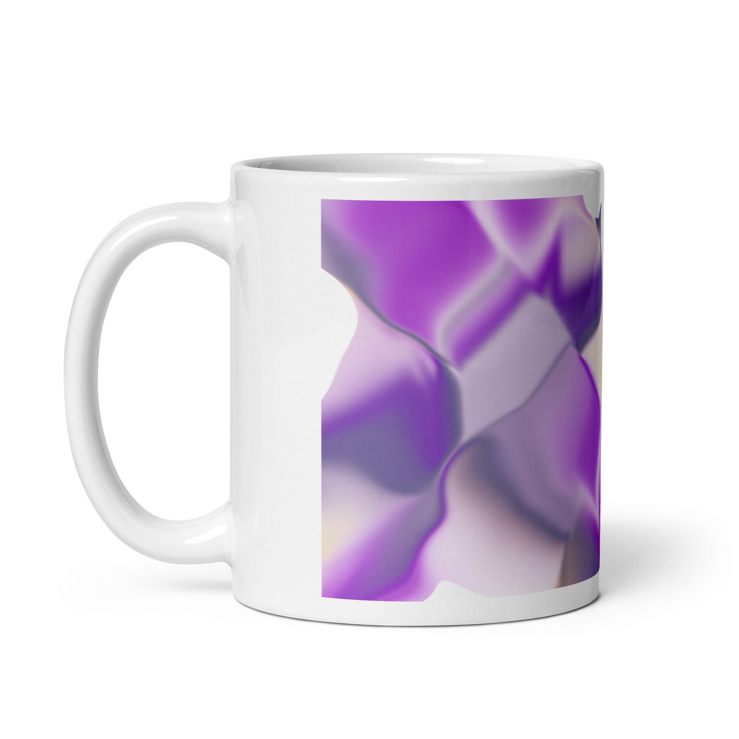 The Ribbons Purple BeSculpt Abstract Artwork Kaleidoscope Mug 3 is more than just a vessel; it is a canvas for inspiration. The vivid glossy print, seamlessly marrying the original and reversed images, ensures both visual allure and practicality, being microwave and dishwasher safe.