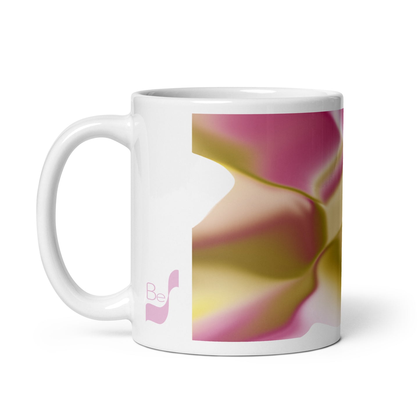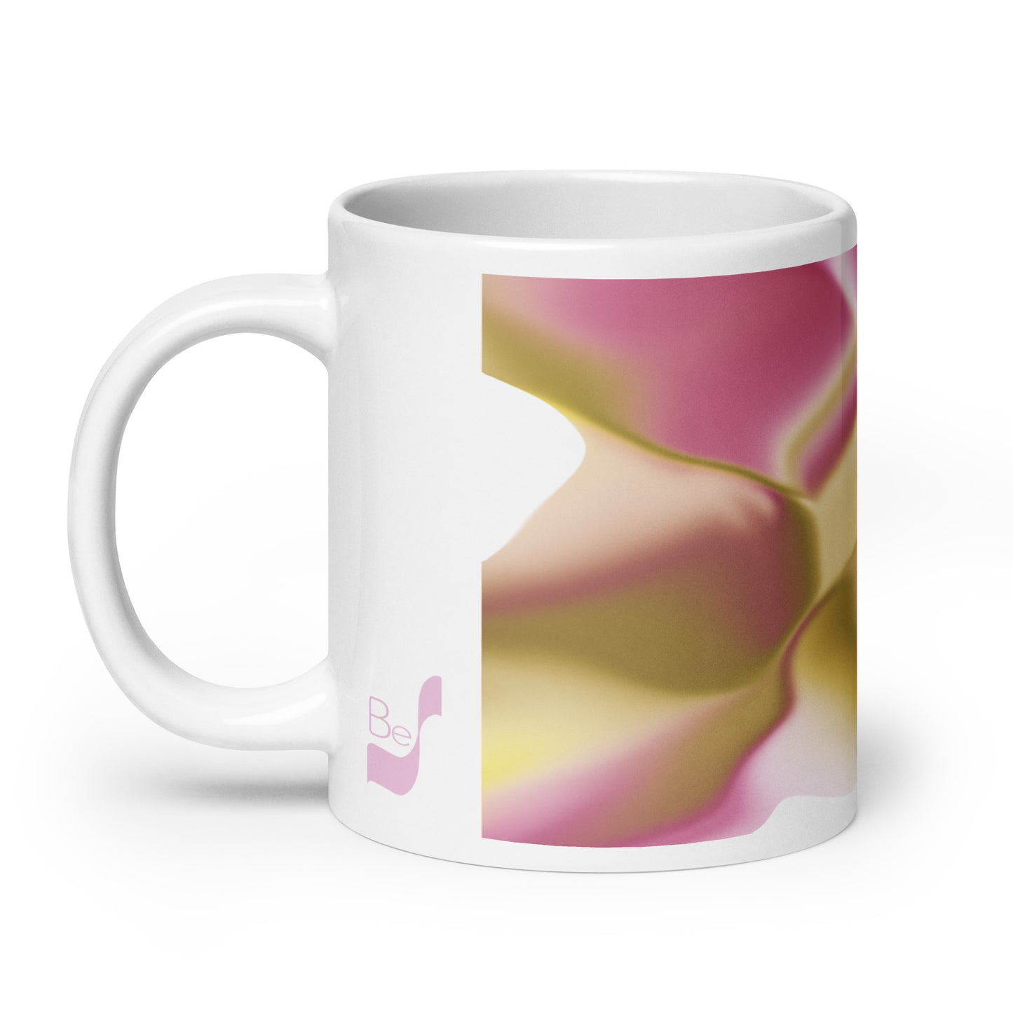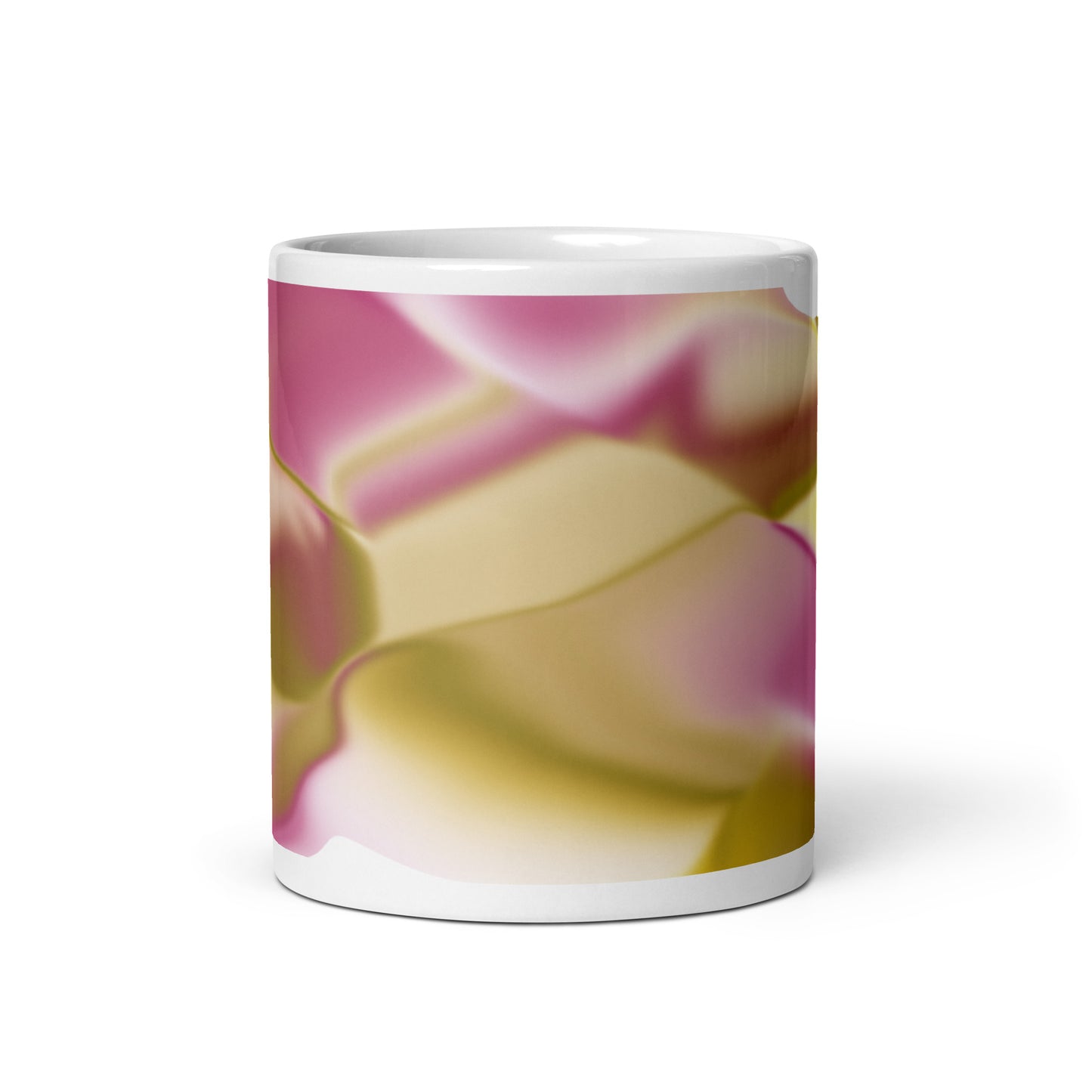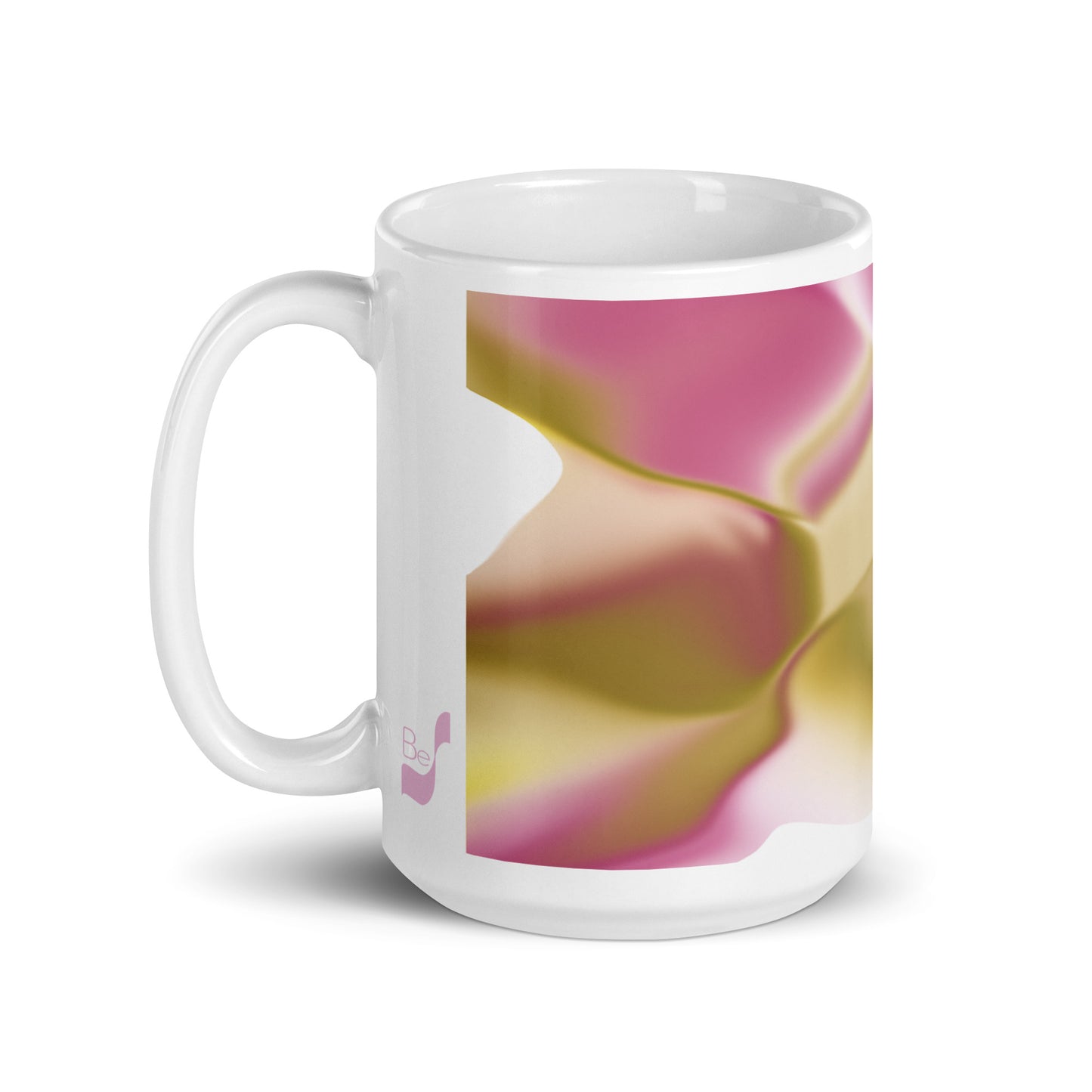 Introducing the Ribbons Rose BeSculpt Abstract Artwork Mug Reversed Image – a Special Edition (limited edition) crafted to add a touch of artistic sophistication to your daily sipping routine. Immerse yourself in the fluid and captivating colors of Ribbons Rose, featuring a delightful mix of Rose, Yellow, Beige, Soft Brown, and White in this reversed image from the original.