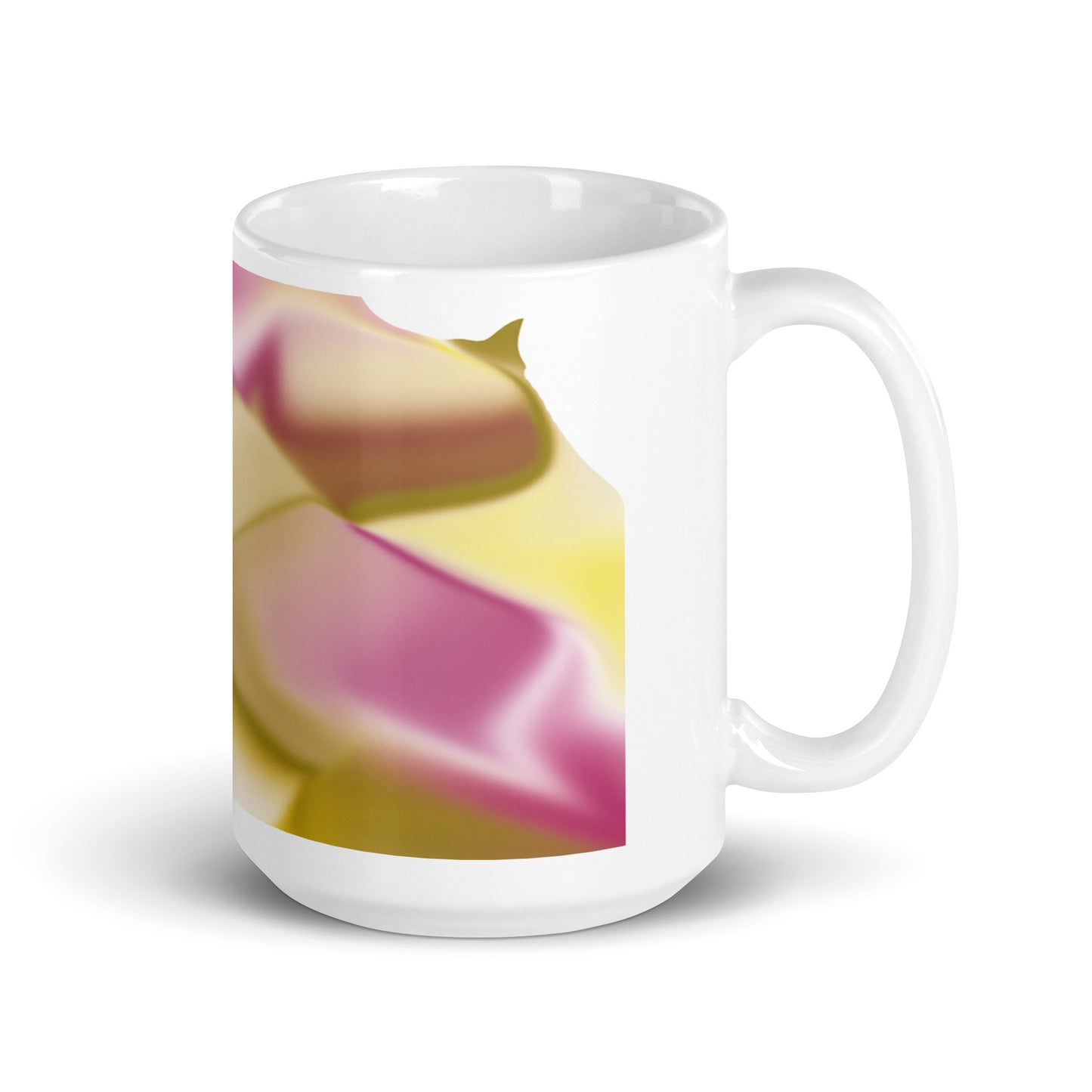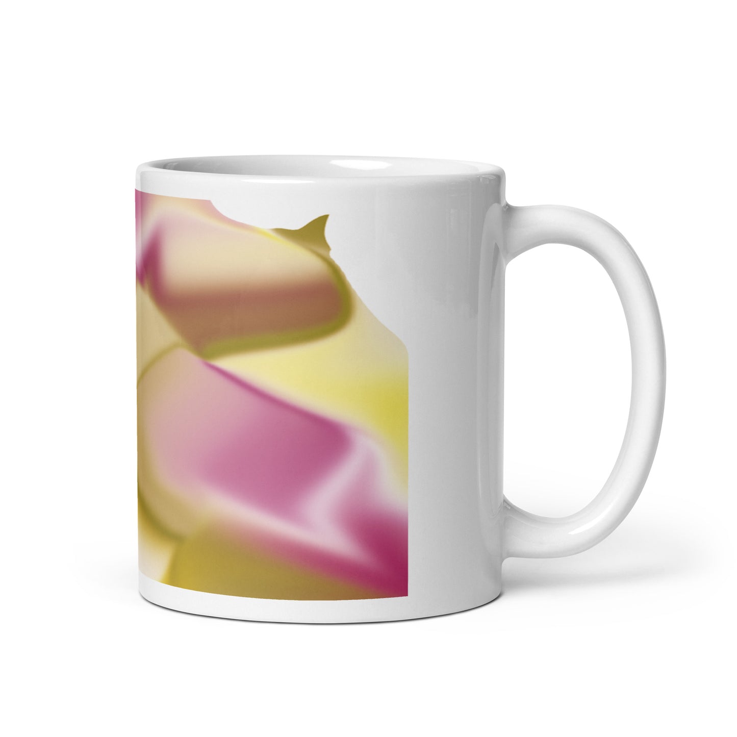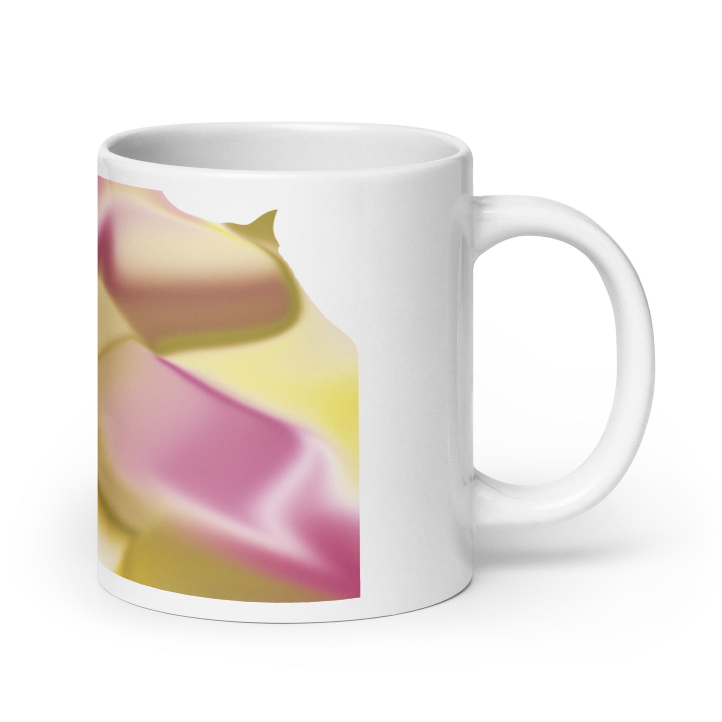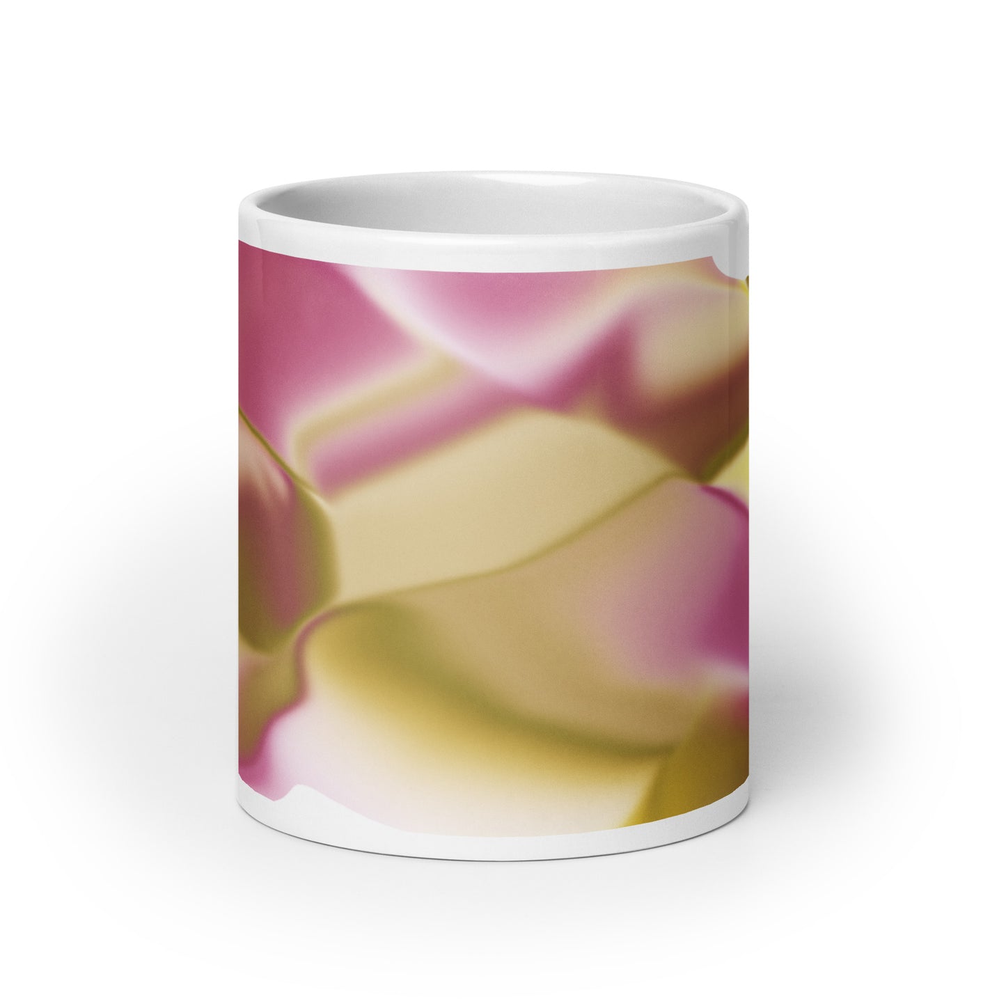 Introducing the Ribbons Rose BeSculpt Abstract Artwork Mug Reversed Image – a Special Edition (limited edition) crafted to add a touch of artistic sophistication to your daily sipping routine. Immerse yourself in the fluid and captivating colors of Ribbons Rose, featuring a delightful mix of Rose, Yellow, Beige, Soft Brown, and White in this reversed image from the original.