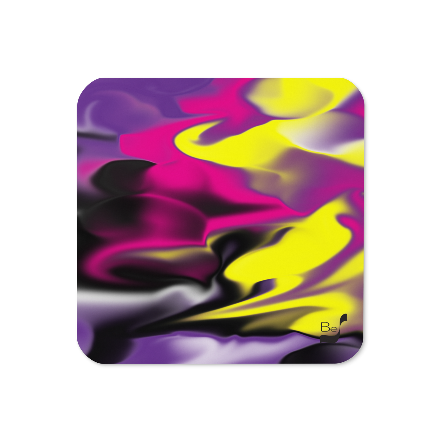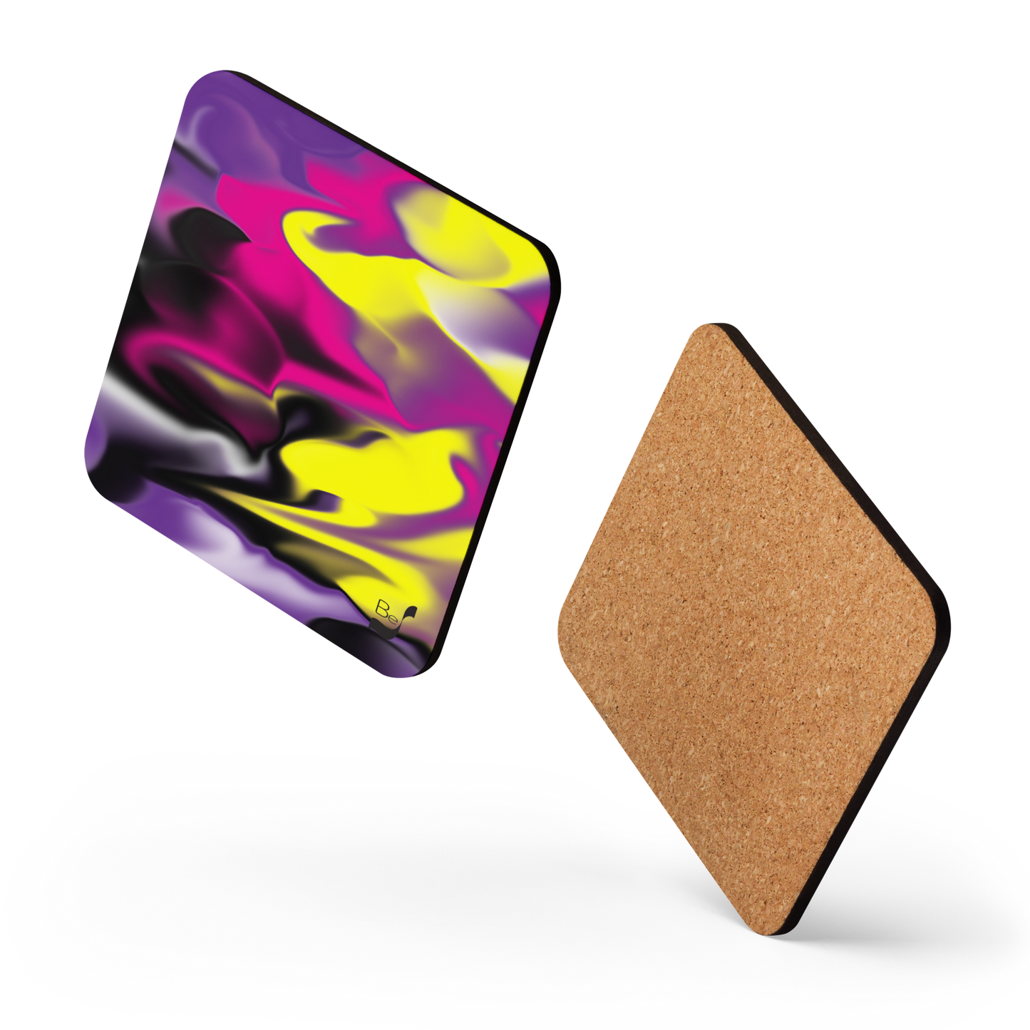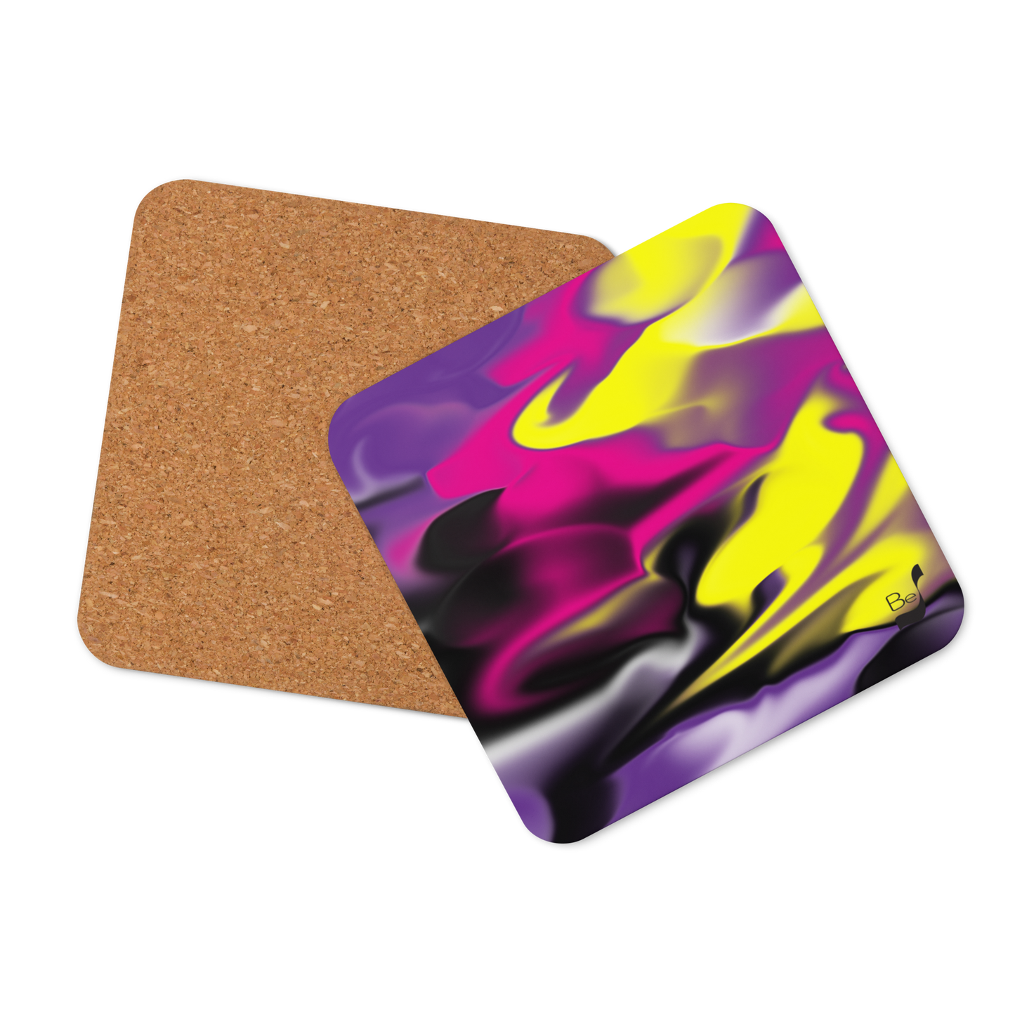Experience a unique blend of luxury and sophistication with the Rising Bud BeSculpt Cork-back Coaster. This stunning coaster showcases an abstract blend of vivid black, deep violet, lime yellow, and white colors, making your favorite mugs and tumblers fashionable showstoppers. With its cork-backing, add a touch of elegance to your home today.