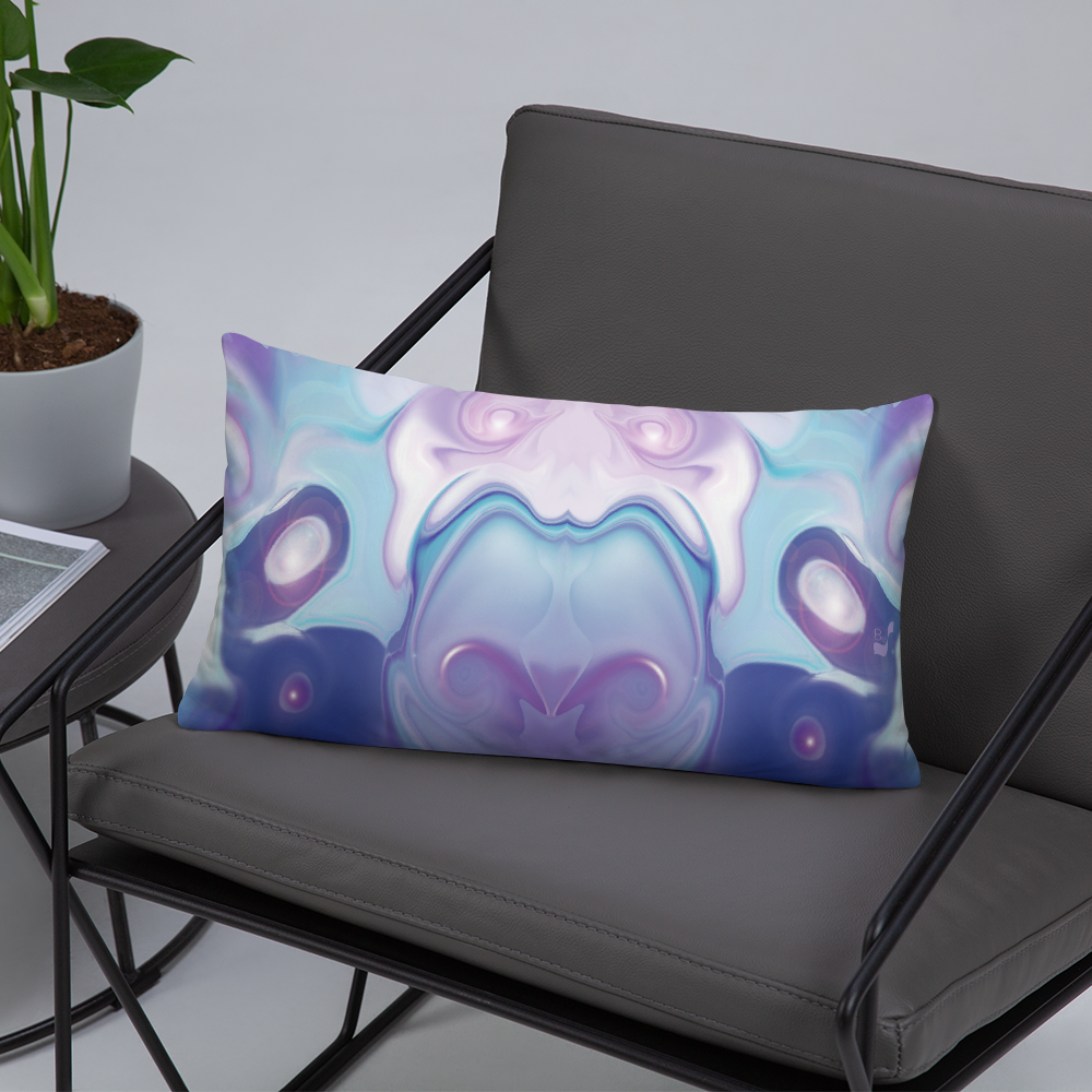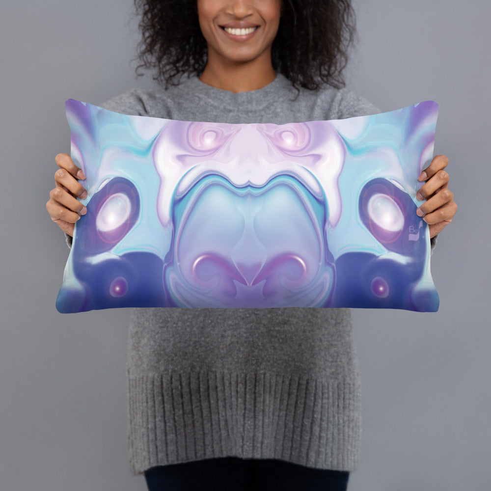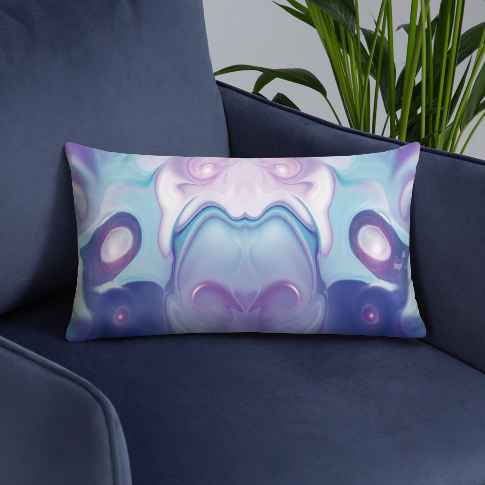 Introducing our exclusive "Space Elephant BeSculpt Abstract Art Lumbar Throw Pillow #2." This enchanting piece showcases an organic transformation into the endearing image of a hippopotamus, delicately merging with pastel soft pink accents. The seamless blend of serene blue, tranquil turquoise, soothing lavender, subtle soft pink, majestic purple, and pure white creates a mesmerizing visual experience that knows no bounds.