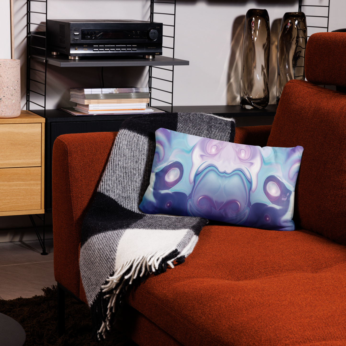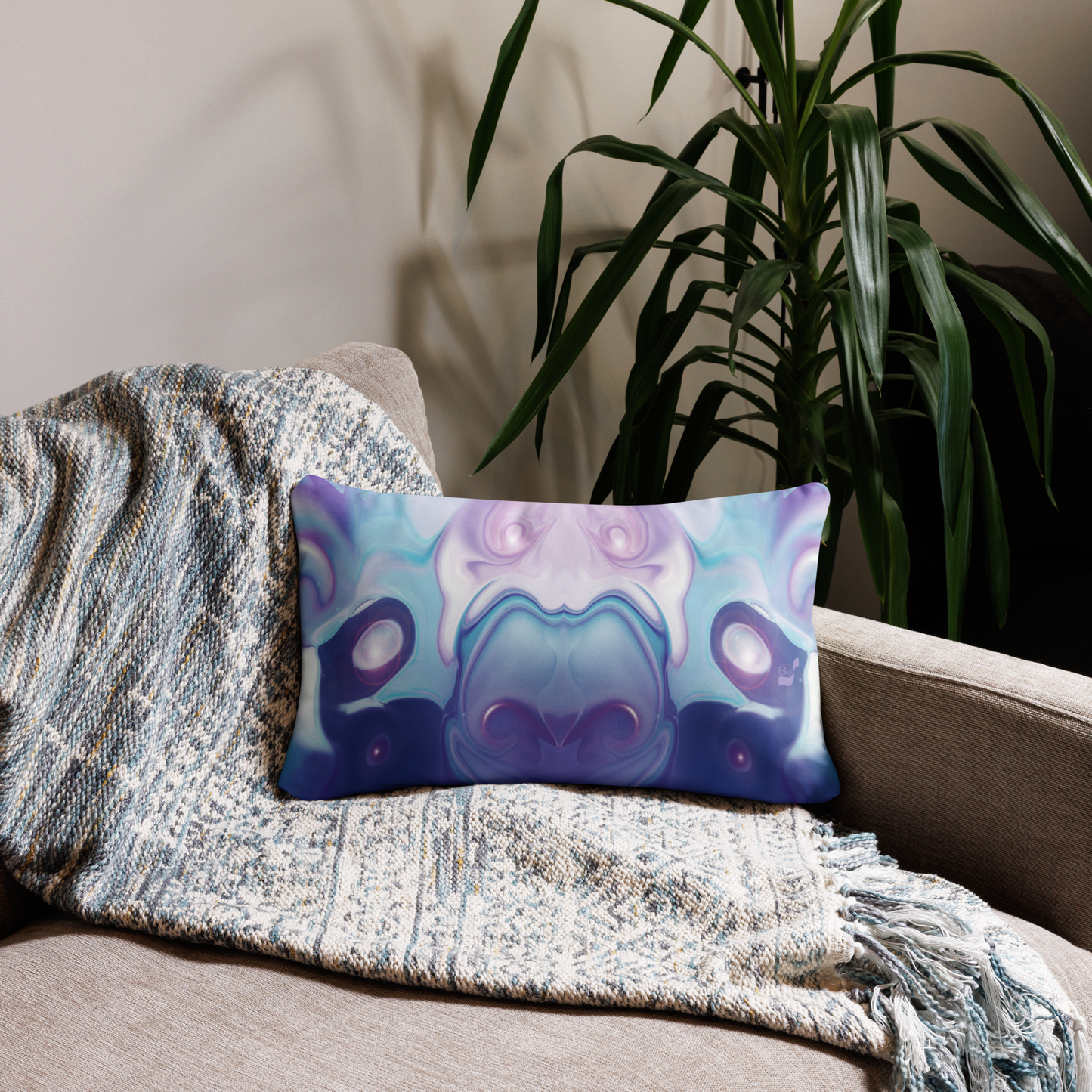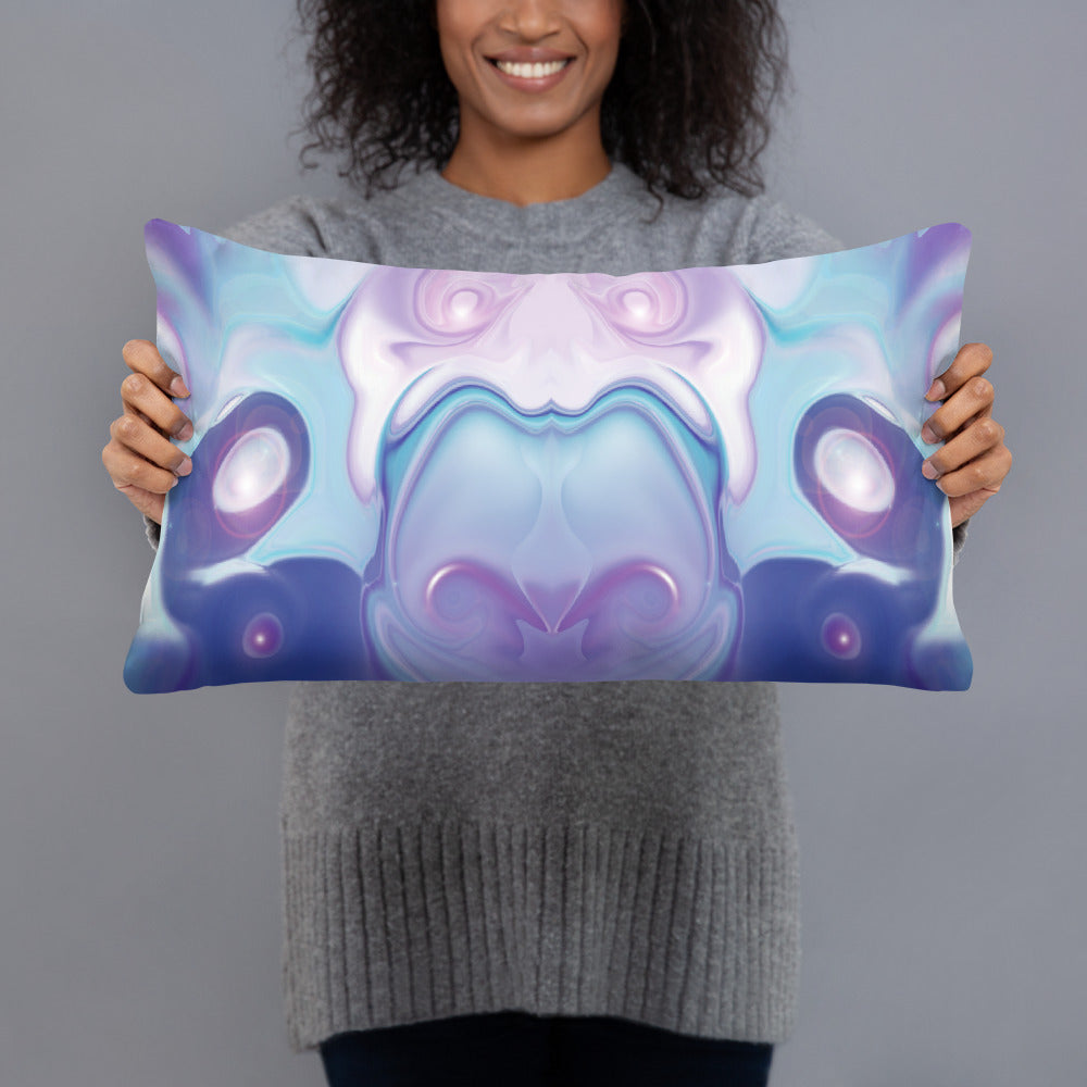 Introducing our exclusive "Space Elephant BeSculpt Abstract Art Lumbar Throw Pillow #2." This enchanting piece showcases an organic transformation into the endearing image of a hippopotamus, delicately merging with pastel soft pink accents. The seamless blend of serene blue, tranquil turquoise, soothing lavender, subtle soft pink, majestic purple, and pure white creates a mesmerizing visual experience that knows no bounds.
