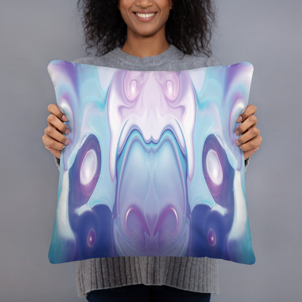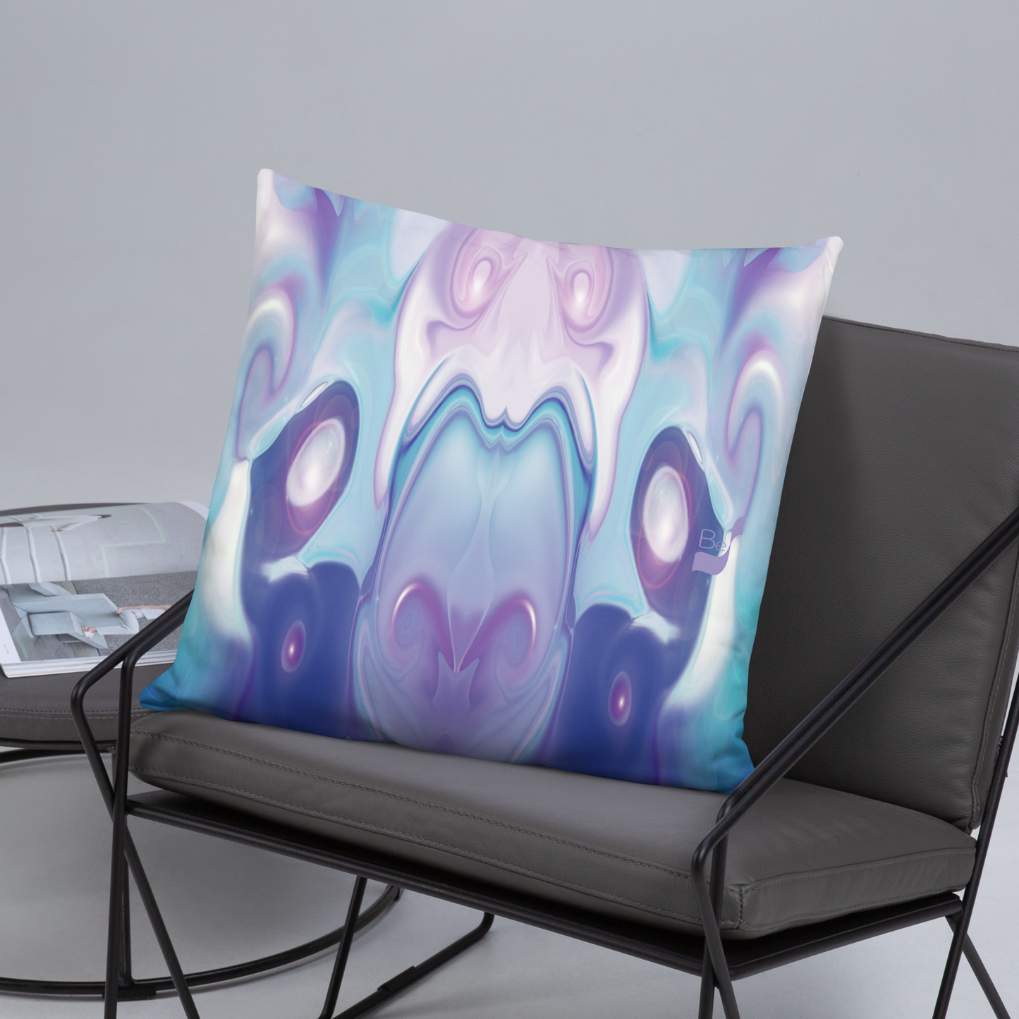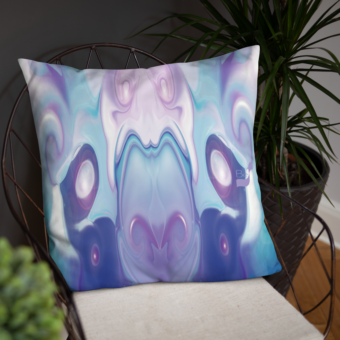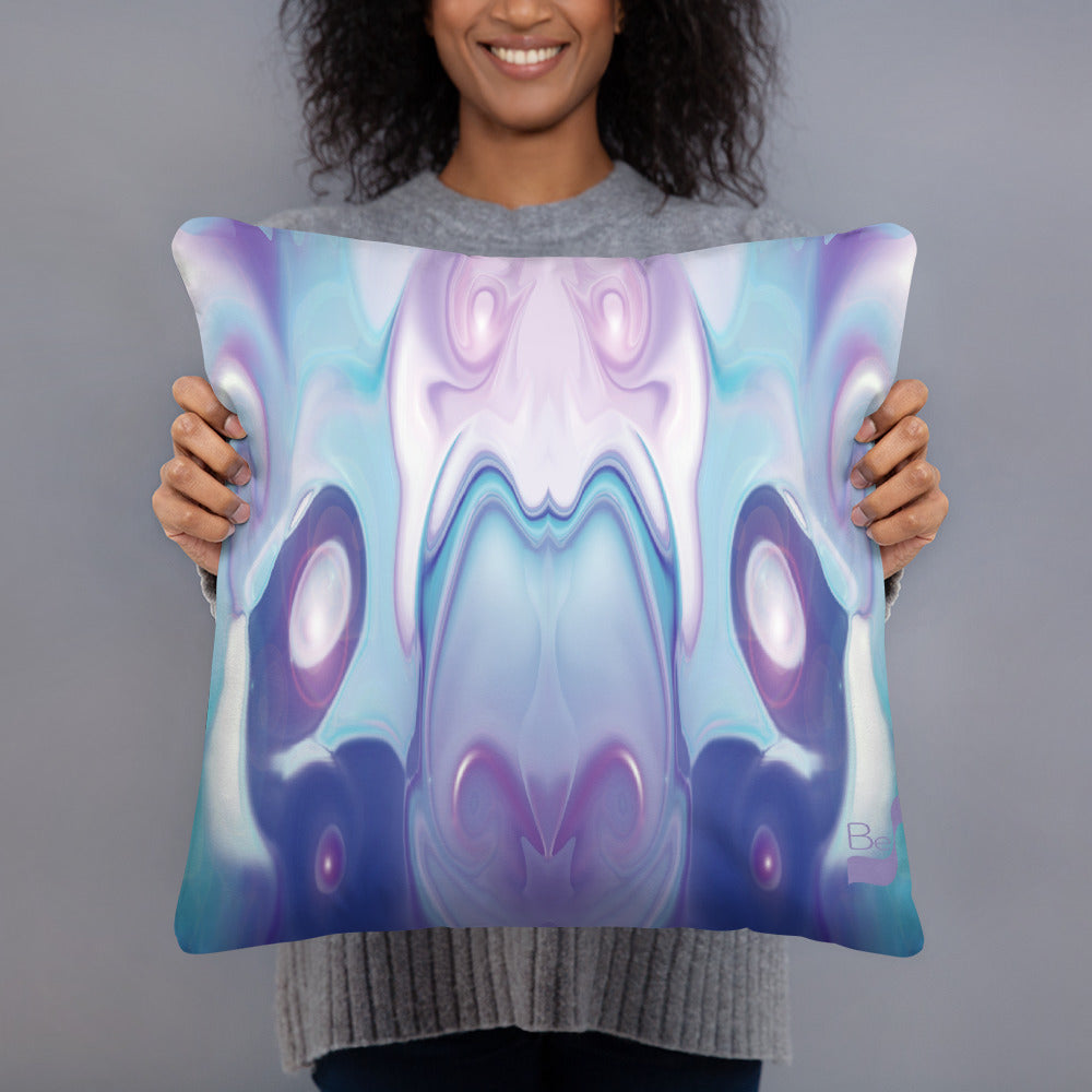 Introducing our enchanting "Space Elephant BeSculpt Abstract Art Throw Pillow 2." This mesmerizing piece features an organic transformation into the endearing image of a hippopotamus, delicately combined with pastel soft pink accents. The harmonious blend of serene blue, tranquil turquoise, soothing lavender, subtle soft pink, majestic purple, and pure white creates a visual experience that transcends boundaries.