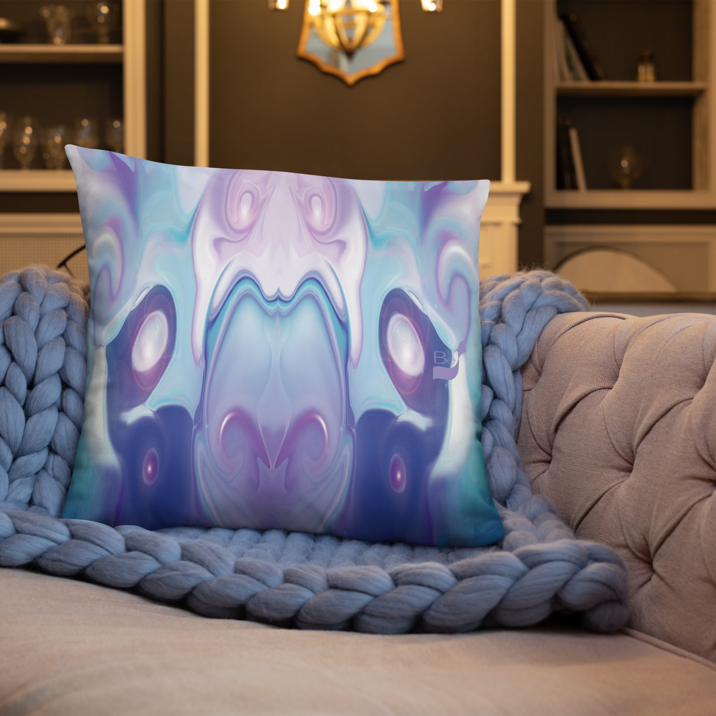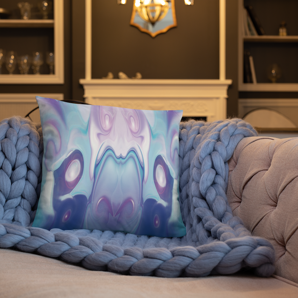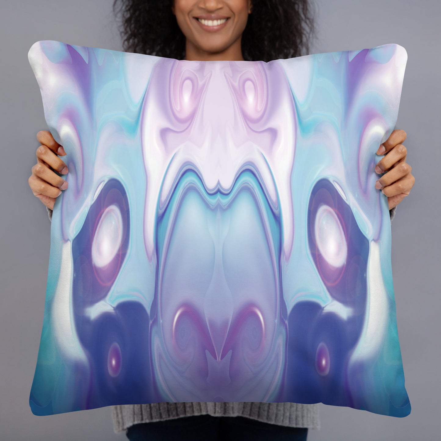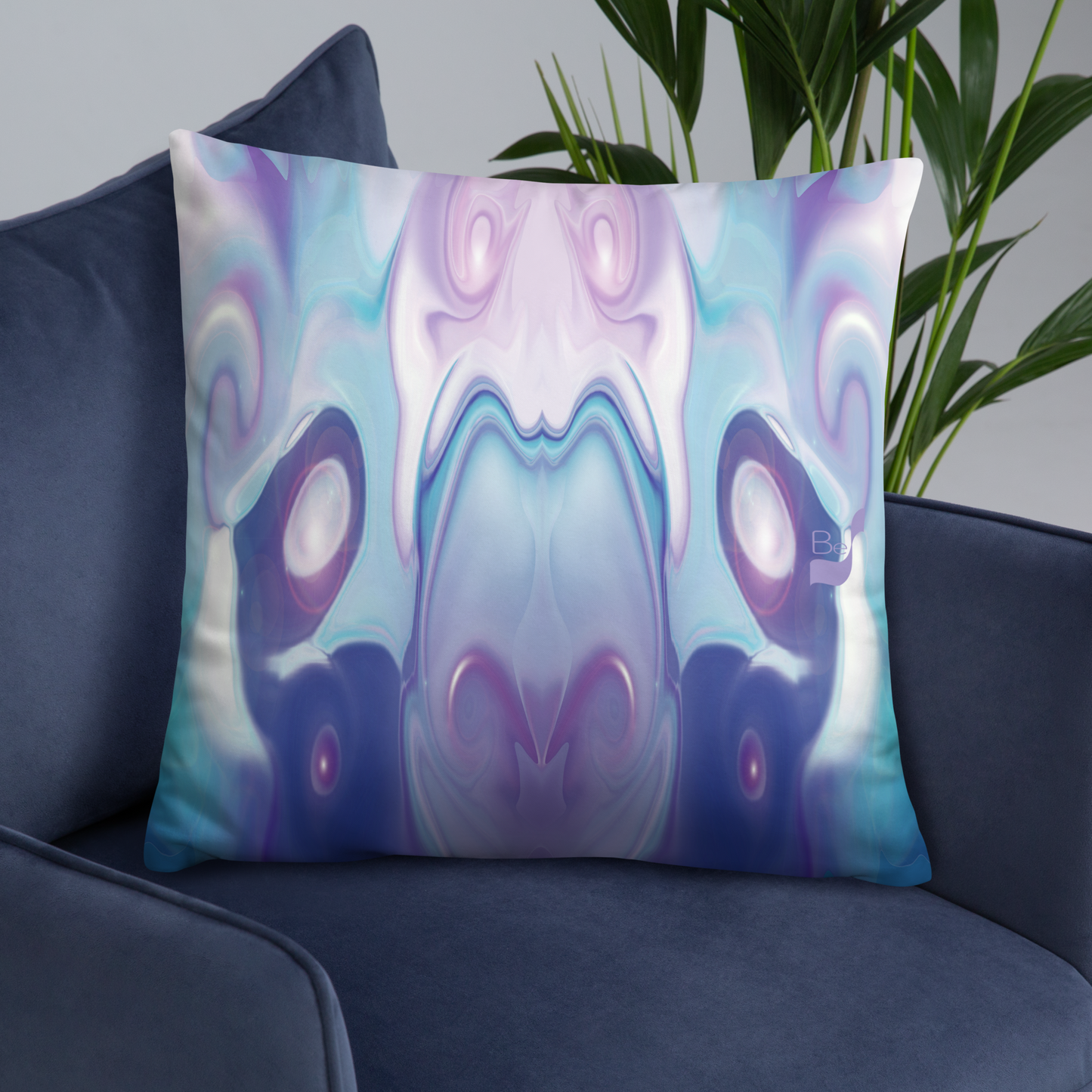 Introducing our enchanting "Space Elephant BeSculpt Abstract Art Throw Pillow 2." This mesmerizing piece features an organic transformation into the endearing image of a hippopotamus, delicately combined with pastel soft pink accents. The harmonious blend of serene blue, tranquil turquoise, soothing lavender, subtle soft pink, majestic purple, and pure white creates a visual experience that transcends boundaries.