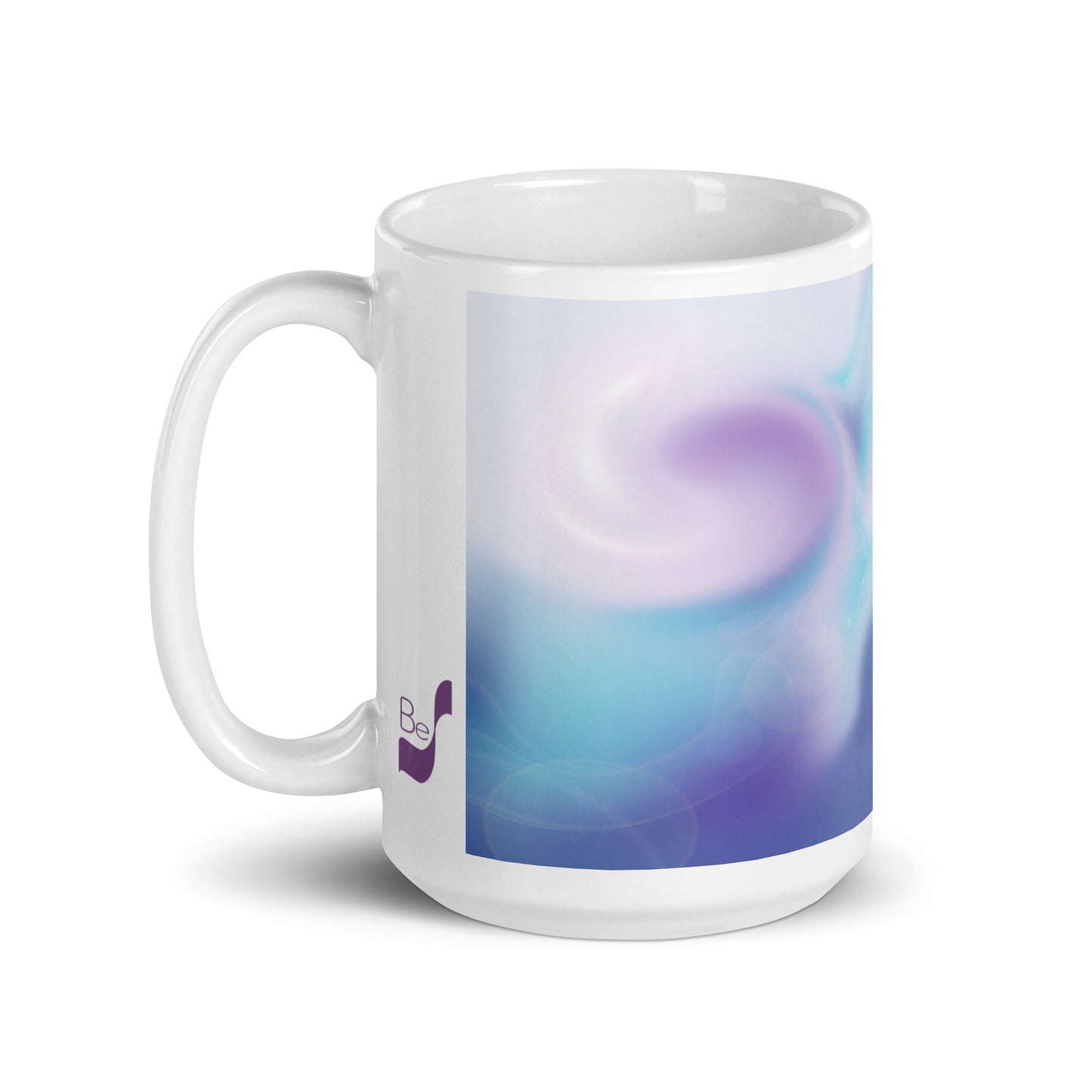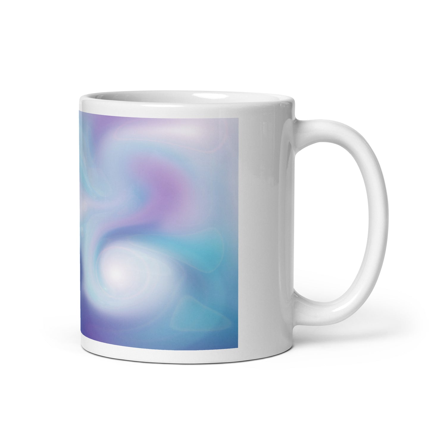Introducing the Swirling BeSculpt Abstract Artwork Mug Reversed Image – a Special Edition (limited edition) crafted to bring an artistic flourish to your daily sipping experience. Immerse yourself in the dynamic and captivating colors of Swirling, featuring soft pastel shades of Indigo, Lavender, Purple, Turquoise, and White in this reversed image from the original.