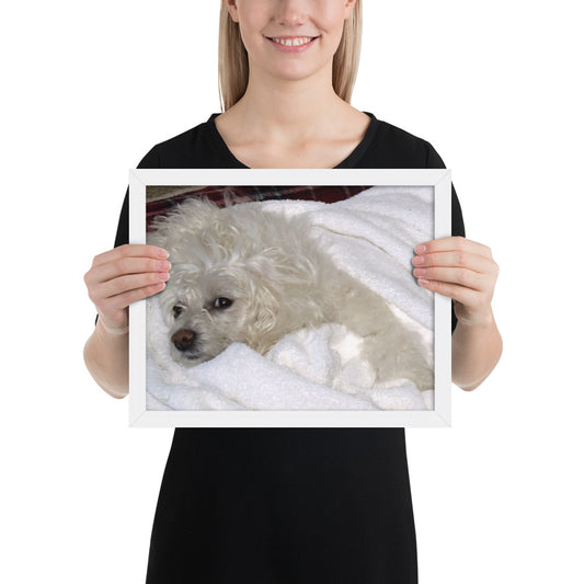 Thinking BeSculpt Photo-Art Framed is a photo of my beautiful Bolognese, Osita, when she was a puppy.